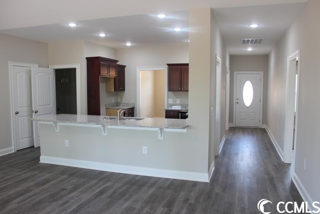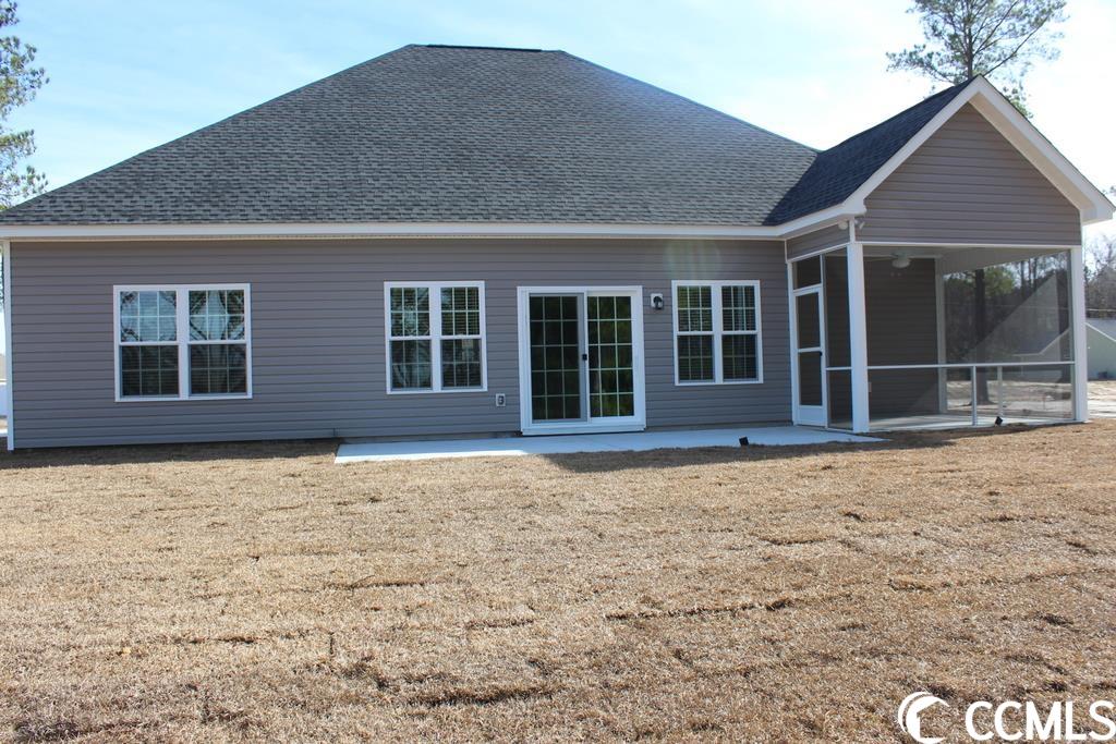 .99 acre oversized lot with trees and No HOA in Mt. Pillar Estates.The spacious Hemlock plan, entry foyer, relaxing front porch, rear screened porch, and a 22'x10' patio. Open floor plan, formal dining room with tray ceiling, the living room has a vaulted ceiling with a ceiling fan. Large open kitchen with abundant solid wood cabinets with crown molding and knobs. Granite countertops, breakfast bar, stainless steel appliances, microwave, smooth top range, dishwasher, and a walk-in pantry closet. Blinds thru-out the home. The primary suite has a tray ceiling with a ceiling fan and a large walk-in closet. The large bathroom has double bowl sinks in a raised height vanity, a walk-in marble shower with bench, raised toilet, linen closet, and a window to let light in. Wood-look waterproof luxury vinyl plank flooring throughout, carpet in the bedrooms. Spacious 2-car side entry garage with 2 additional windows, finished and painted garage with automatic door opener, pull down stairs to attic storage above. Upgraded interior trim includes 3 1/4"" casings and 5 1/4"" baseboards. Low E glass windows, energy efficient homes. Irrigation system, gutters, (front and back) sodded and landscaped yard. Choice of paint colors, white painted ceilings, recessed can lights in the kitchen, 2 coach lights at the garage, 2 flood lights, 30-year architectural shingles, window screens and shutters (per plan). Video is for illustrative purposes only and may be of a similar home built elsewhere. Enjoy the peace and quiet of small-town living, conveniently located and just minutes from downtown Loris, Nature Park, shopping, restaurants, and hospital. Desired Green Sea Floyds school district! Photos and video are for illustrative purposes only and may be of a similar home built elsewhere. Square footage is approximate and not guaranteed, buyer(s) are responsible for verification