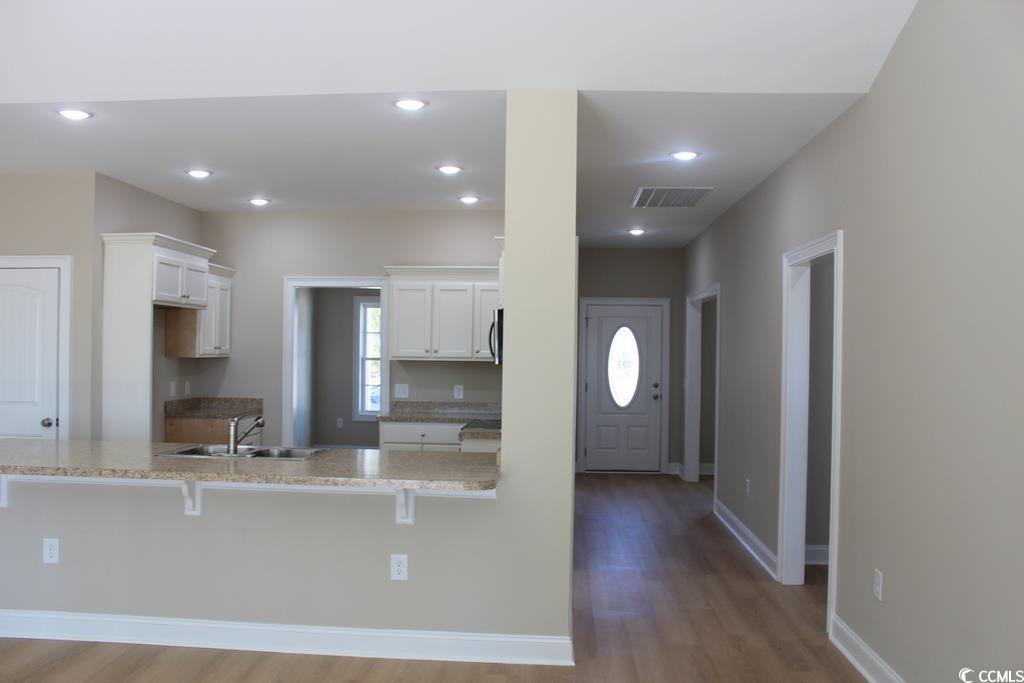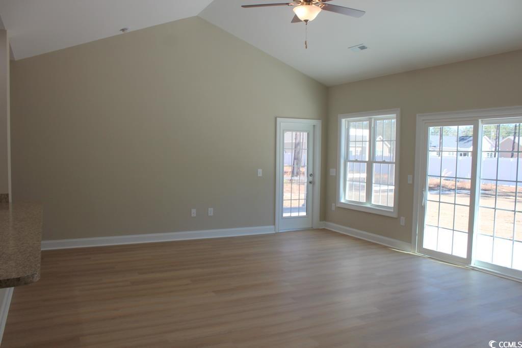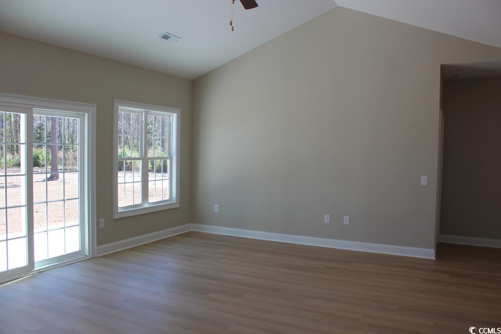 New Construction on .60 acres with trees. No HOA fees, basic deed restrictions. Can park your RV, Boat and have an outbuilding per deed restrictions. Open living areas, 3 bedrooms, and 2 baths split for privacy. Relaxing front porch, formal entry foyer, spacious living room with vaulted ceiling and ceiling fan offers a wall of windows looking out the 22x10 patio and rear yard with trees. Adjacent to the patio with entry to the living room is a large screened-in-porch. Luxury Vinyl Plank Flooring throughout the common area. Carpet in the bedrooms. The kitchen has custom solid wood staggered cabinets with custom paint color, crown molding, knobs, counter height breakfast bar, stainless steel appliances, and a custom walk-in pantry. The formal dining room has a tray ceiling. The private primary suite has a tray ceiling with a fan and light. Large walk-in closet off the spacious owner's bath with garden tub and separate walk-in shower, raised height vanity with double sinks, and large bath mirror. 2 spacious guest bedrooms and bath are located on the opposite side of the house. Cheyenne-style interior doors, RB3 windows, and door casings. 5 1/4"" baseboards, recessed light, smooth ceilings, landscaped yard with irrigation system and gutters. 30 years - architectural roof shingles. Additional 220 and 110 outlets added. The 2-car garage is completely finished and painted with trim, it includes an electric garage door opener, pull-down stairs to the attic floored storage with a light. Low maintenance energy efficient home. Close to downtown Loris and Conway, Less than 30 minutes to the Ocean, and 15 minutes to Hwy 22. Video is for illustrative purposes only and may be of a similar house built elsewhere. Square footage is approximate and not guaranteed. The buyer is responsible for verification.