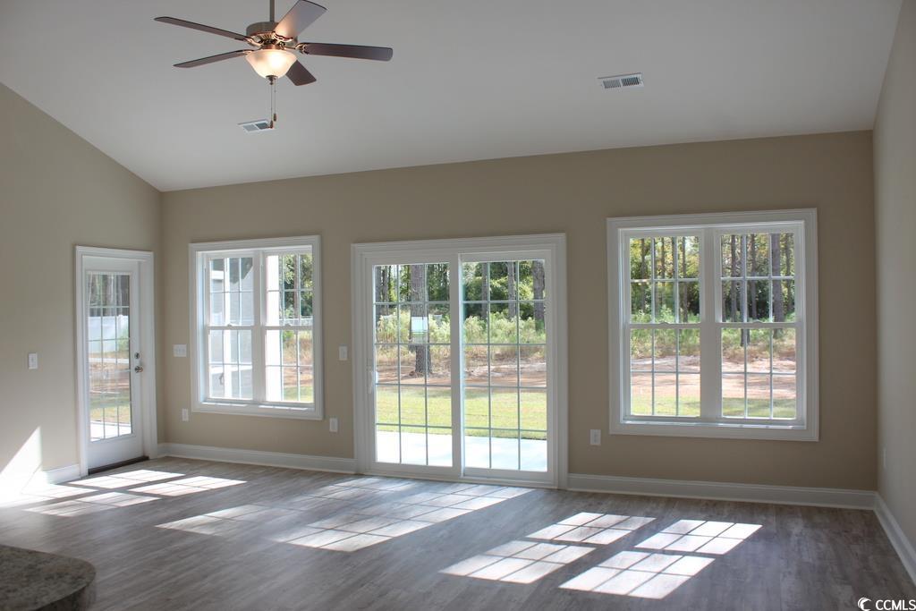New construction on .73 acres. You can park your RV or boat and have an outbuilding per the deed restrictions. Open living areas, 3 bedrooms and 2 baths split for privacy. Relaxing front porch, formal entry foyer, spacious living room with vaulted ceiling and ceiling fan offers a wall of windows looking out onto 22'x10' patio and rear yard with trees. Adjacent to the patio with entry to the living room is a large screen-in porch with a ceiling fan. Window blinds through-out the house. Luxury vinyl plank flooring throughout the entire home. The kitchen has custom made solid wood bead board style staggered cabinets, crown molding and knobs. Granite breakfast bar and kitchen countertops, stainless steel appliances. The dining area has a beautiful tray ceiling. The primary suite has a tray ceiling with a fan and light. Large walk-in closet off the spacious owner's bath with garden tub and separate walk-in shower, raised height vanity with double sinks, and a large bath mirror. 2 spacious guest bedrooms and bath are located on the opposite side of the house. Cheyenne style interior doors , RB3 windows, and door casings. 5 1/4"" baseboards, recessed lights, smooth ceilings, landscaped yard with an irrigation system and gutters. 30 year architectural roof shingles. The 2-car garage is completely finished, painted, and finished with trim, it includes electric door openers, pull down stairs to the attic floored storage with a light. Low maintenance energy efficient home. Close to downtown Loris and Conway. Less than 30 minutes to the Atlantic Ocean and 15 minutes to Hwy 22. Photos and video are for illustrative purposes only and may be of a similar house built elsewhere. Square footage is approximate and not guaranteed. The buyer is responsible for verification.
