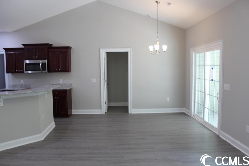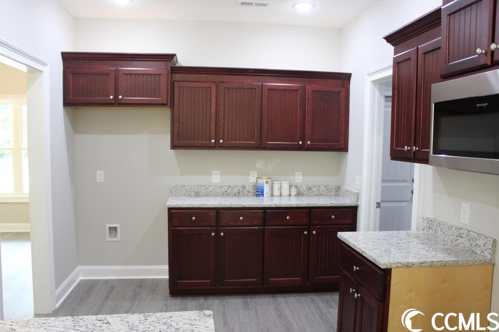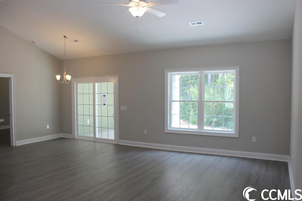 Situated on a private homesite consisting of 3.14 acres the Elm floorplan is 3 bedrooms, 2 full baths in a single level. The floor plan has an open living area and split bedrooms with a front porch with a rear screened porch, and patio. The living room has a vaulted ceiling and a ceiling fan with lights. Upgraded waterproof luxury vinyl plank flooring throughout the home including the bedrooms. Formal dining room and breakfast nook lead to the spacious, open kitchen with a breakfast bar featuring solid wood cabinets, granite countertops, single bowl sink, and a pantry closet. Enjoy the private view from your Master suite with a bay window, double tray ceiling with ceiling fan, and light. 5 ft walk-in shower in the master bath with raised vanity and linen closet. Blinds package included. Impressive interior trim includes 3 1/4"" casings and 5 1/4"" baseboards. Low E glass windows, energy-efficient homes. Spacious finished and painted 2-car garage with automatic door opener and pull-down stairs to attic storage above. Irrigation system, gutters, sodded and landscaped yard. Close access to Hwy 22, quick and easy access to Loris and Conway. Video is for illustrative purposes only and may be of a similar home built elsewhere. Square footage is approximate and not guaranteed. Buyers are responsible for verification.