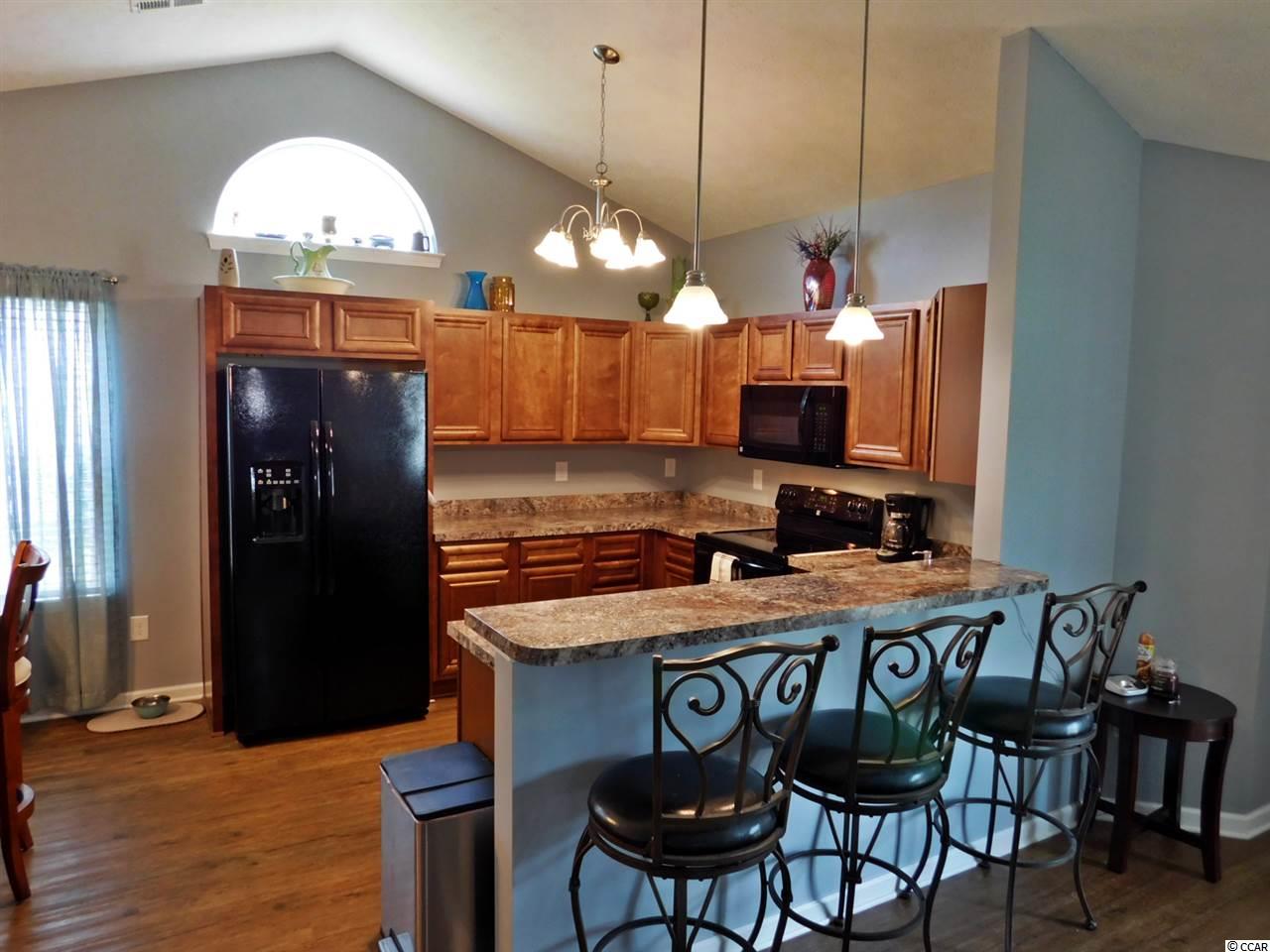 This 3 bedroom 2 bathroom home boasts a spacious split floor plan and vaulted ceilings in the living room, 2nd bedroom and kitchen. Your kitchen also has wood cabinetry, ample counter top space, a breakfast bar, and a sunny breakfast nook. The master bedroom boasts a trey ceiling and walk-in closet, and master bathroom with shower. The detached storage unit in the back yard along with built in cabinets in the garage are perfect for added work space or storage. Enjoy family gatherings and outside entertaining in the large fenced in yard. Located in the much desired Highland Park neighborhood, your new home is close to shopping and all the Myrtle Beach area has to offer.