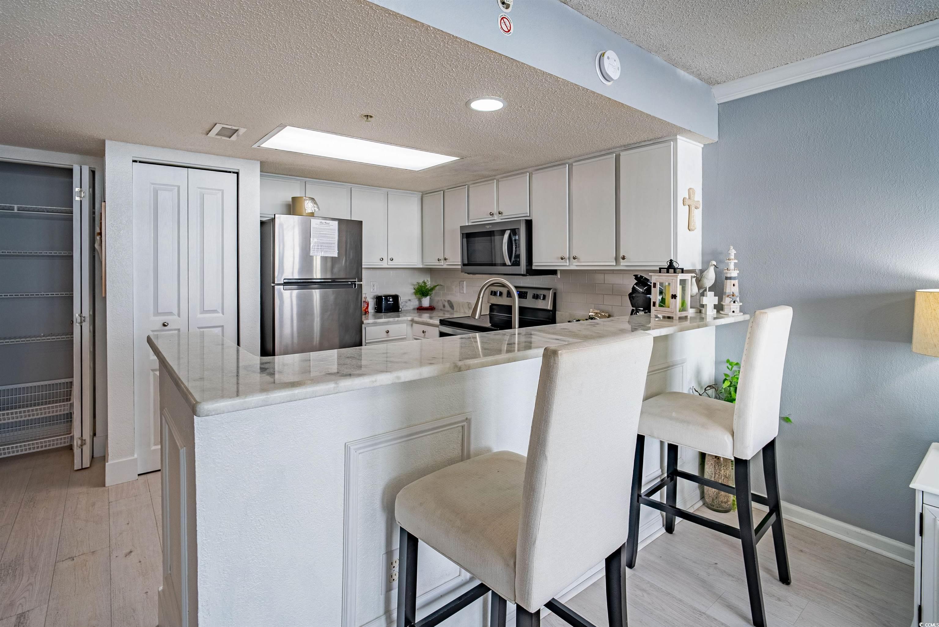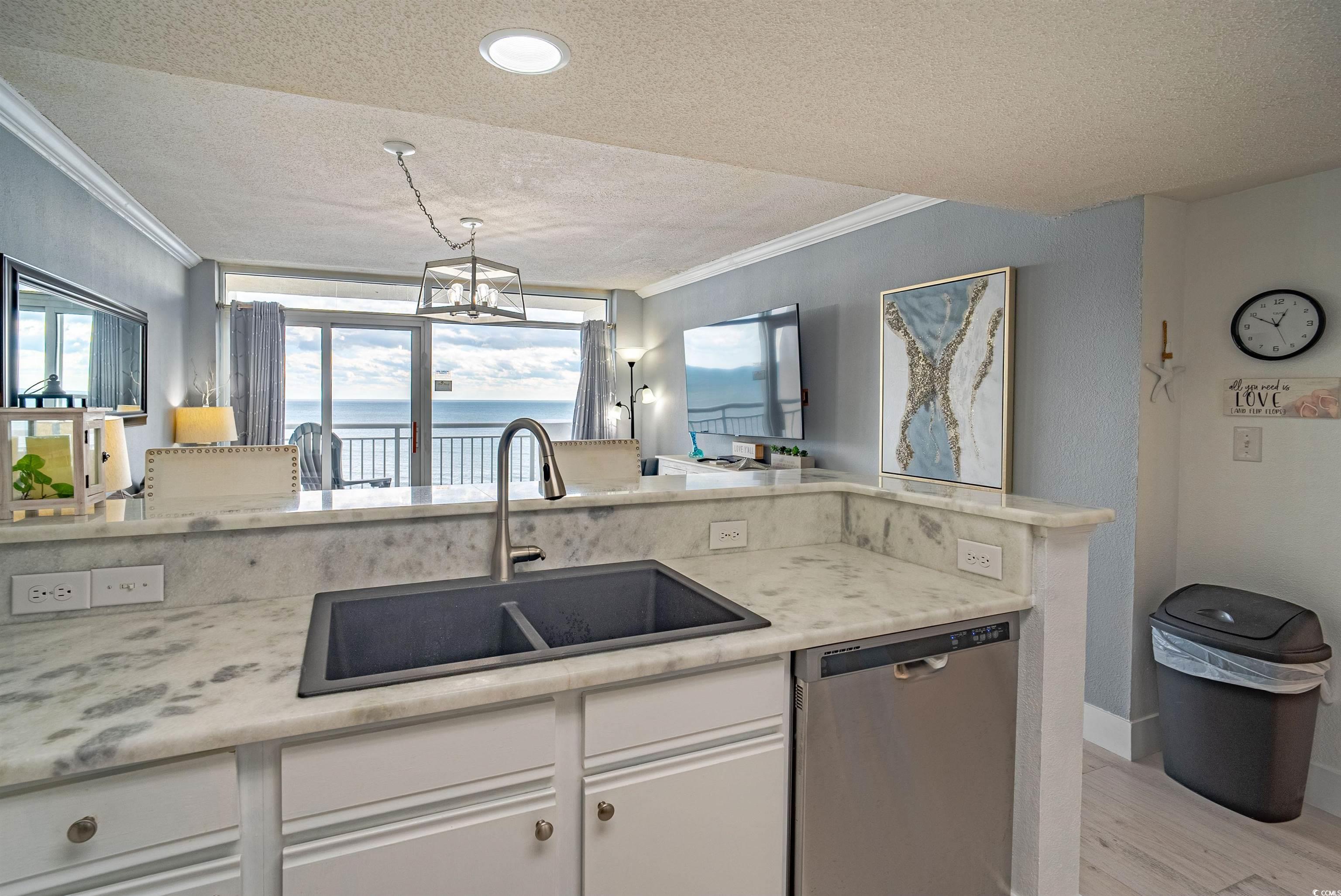 Welcome to your dream oceanfront condo, located in a quiet and highly desirable part of North Myrtle Beach, at the Baywatch Resort in beautiful North Myrtle Beach! This condo provides the perfect balance between tranquility and convenience. You're just steps away from the pristine sandy beaches, ensuring that you can enjoy a leisurely stroll or a day of beachcombing whenever you please. The 2-bedroom, 2-bathroom gem is more than just a home; it's a luxurious coastal oasis that promises a lifestyle of relaxation, entertainment, and endless seaside charm. Boasting stainless steel appliances and stunning quartz countertops in the kitchen, it adds a touch of elegance to your daily routine. When you're ready to explore the vibrant side of the area, you'll find yourself conveniently close to the best shopping, dining, and entertainment North Myrtle Beach has to offer. Everything is within easy reach, whether you're in the mood for a romantic dinner, a shopping spree, or a fun night out. The Baywatch Resort is not just a place to live; it's a world-class vacation destination right at your doorstep. You'll be spoiled with amenities, including onsite dining, indoor and outdoor pools, and a lazy river where you can lounge on a float and soak up the sun. Stay active at the fitness center, unwind in the hot tubs, or simply relax by the poolside with a tropical drink in hand. Hurry & schedule your showing today!