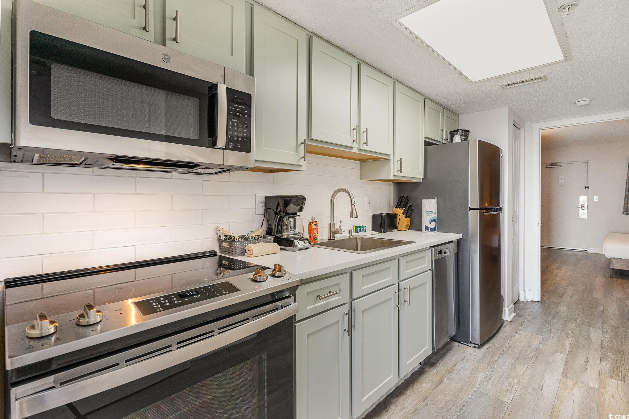 This is a direct oceanfront 1-bedroom/1-bathroom turnkey condo at the elite Bay Watch Resort. The unit has a private balcony that offers a spell-binding view of the sunrise. The completely upgraded kitchen has new appliances, resurfaced cabinet doors, new quartz countertops, and a new backsplash. The entire unit has also been re-painted and the bathroom vanity has been newly installed. This gorgeous condo would make a great investment opportunity, vacation spot, or even residence. Bay Watch Resort has many on-site amenities with beautiful views of North Myrtle Beach's expansive oceanfront. It features indoor and outdoor pools and hot tubs, three on-site restaurants, an ice cream shop, a fitness center, a parking garage, and much more!