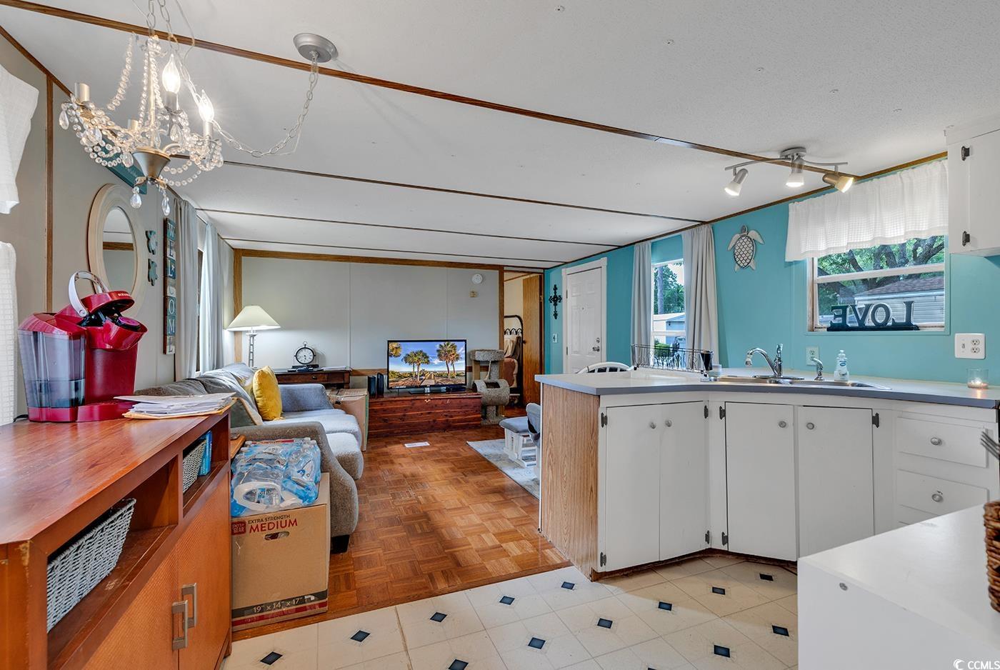 Location, location, location, your bungalow awaits! Owners are allowed to have golf carts and legally may drive their golf cart to the beach. Crystal Lake is a tranquil community where owners may enjoy an array of non-motorized lake activities such as paddle boating, kayaking, and fishing, as well as, enjoy the conveniences of a close proximity to the airport, dining, shopping and the ever fun Market Common. Your fun in the sun is closer than you think. The lot fees include common maintenance, basic cable, trash and yard debris pick up. This home features a brand new HVAC (just installed). a new roof in 2021 Roof, and a new bathroom 2023.Buyers must be approved through the Crystal Lake Office prior to signing a lot lease.