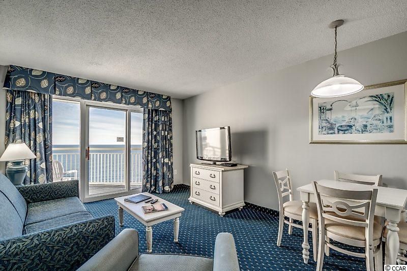Direct oceanfront one-bedroom condo at Bay Watch Resort. This unit juts out from the rest of the building, making for great oceanfront and south-facing coastline views from the angled balcony (See pictures). The spacious floor plan includes a Murphy bed for extra sleeping capacity and a full kitchen. Washer/dryer in condo. Nicely furnished and accessorized. Great vacation home or vacation rental property. Low HOA fees for a property of this type. Located in the center building (Phase III), which contains an impressive contemporary registration lobby. Bay Watch Resort features include an expansive oceanfront pool deck with 18 unique features including outdoor pools, hot tubs, and a lazy river. Also - indoor lazy river, 2 indoor pools, game room, exercise room, convenience/souvenir store, restaurants and lounges, and conference facilities. Bay Watch is close to Barefoot Landing, Ocean Drives Main Street, The Tanger Outlet and the many shops, restaurants and attractions of North Myrtle Beach.The HOA fee includes water/sewer, unit electric, cable and internet. All information is deemed correct, but it is the responsibility of the buyers and theiragent to verify all information.