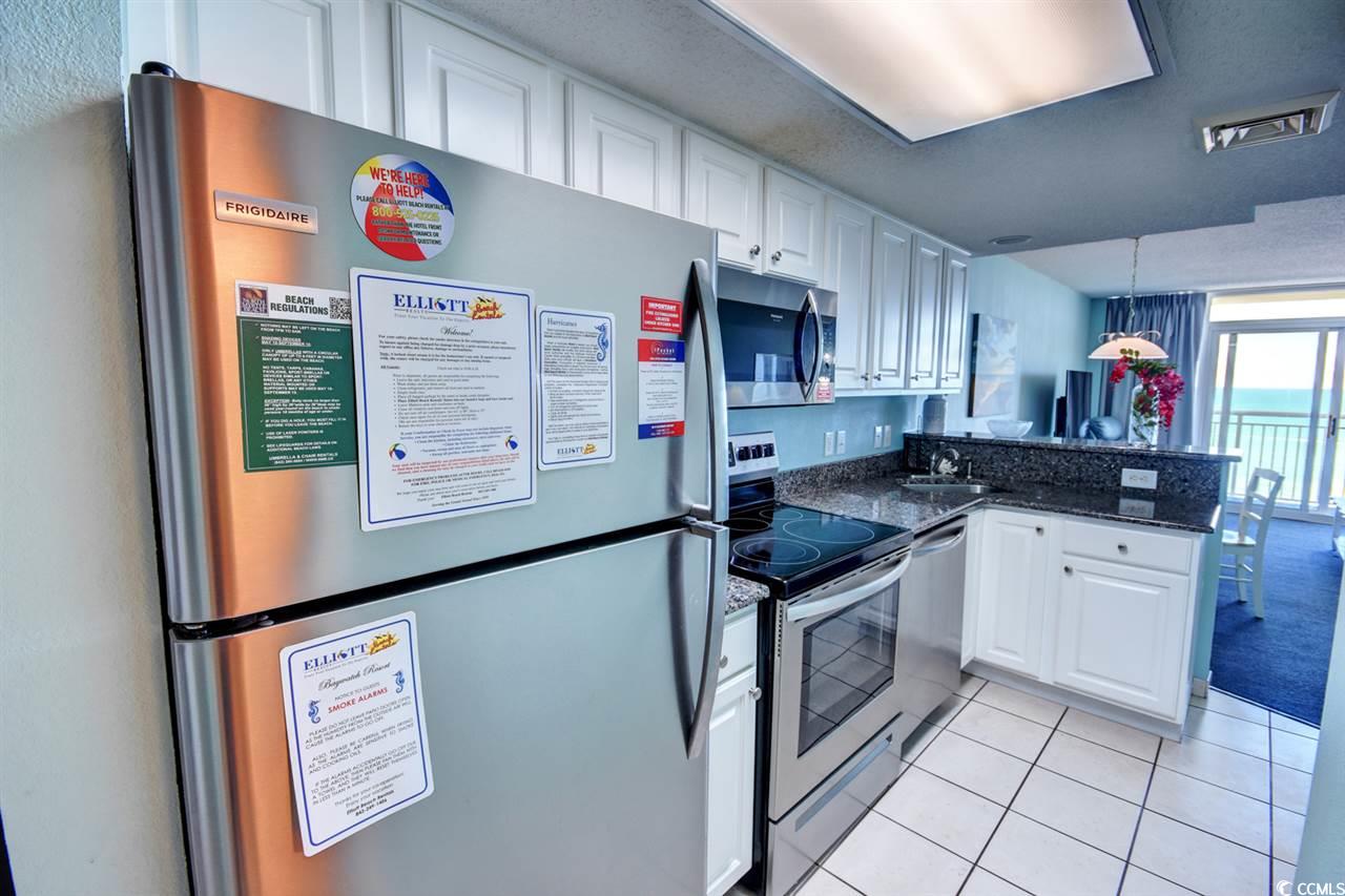 Incredible OCEANFRONT condo with unbeatable views in the desirable Bay Watch Resort! This very well-maintained one bedroom condo has EXCELLENT rental history! The unit is turn-key, completely furnished, has a full kitchen, includes a washer/dryer conveniently in the unit, and is one of the largest one bedroom units in the resort. There are beautiful upgrades throughout the condo including gorgeous granite countertops and stainless steel appliances in the kitchen, new blackout curtains, and new Samsung TV. All kitchen appliances, HVAC, and furnishings are less than 2 years old!! The condo features a spacious living room with murphy bed and dining area with a breakfast bar for additional guests. Bay Watch is known for their incredibly low HOA fees that cover ALL of your utilities including electric and internet PLUS tons of amenities! If you're looking for a wise investment -- look no further. Since this condo is the largest in the center tower and includes a washer/dryer in the unit, it stays rented YEAR-ROUND! The whole family will never run out of things to do since there's an indoor pool, an outdoor pool, lazy river, a fitness center, an onsite restaurant, an outdoor bar, and so much more onsite at the resort! Bay Watch is on the ocean and located close to Barefoot Landing, tons of restaurants, Tanger Outlets, golf courses, The Alabama Theater, Duplin Winery, Alligator Adventure, and the list goes on. Put this one on your must-see list!