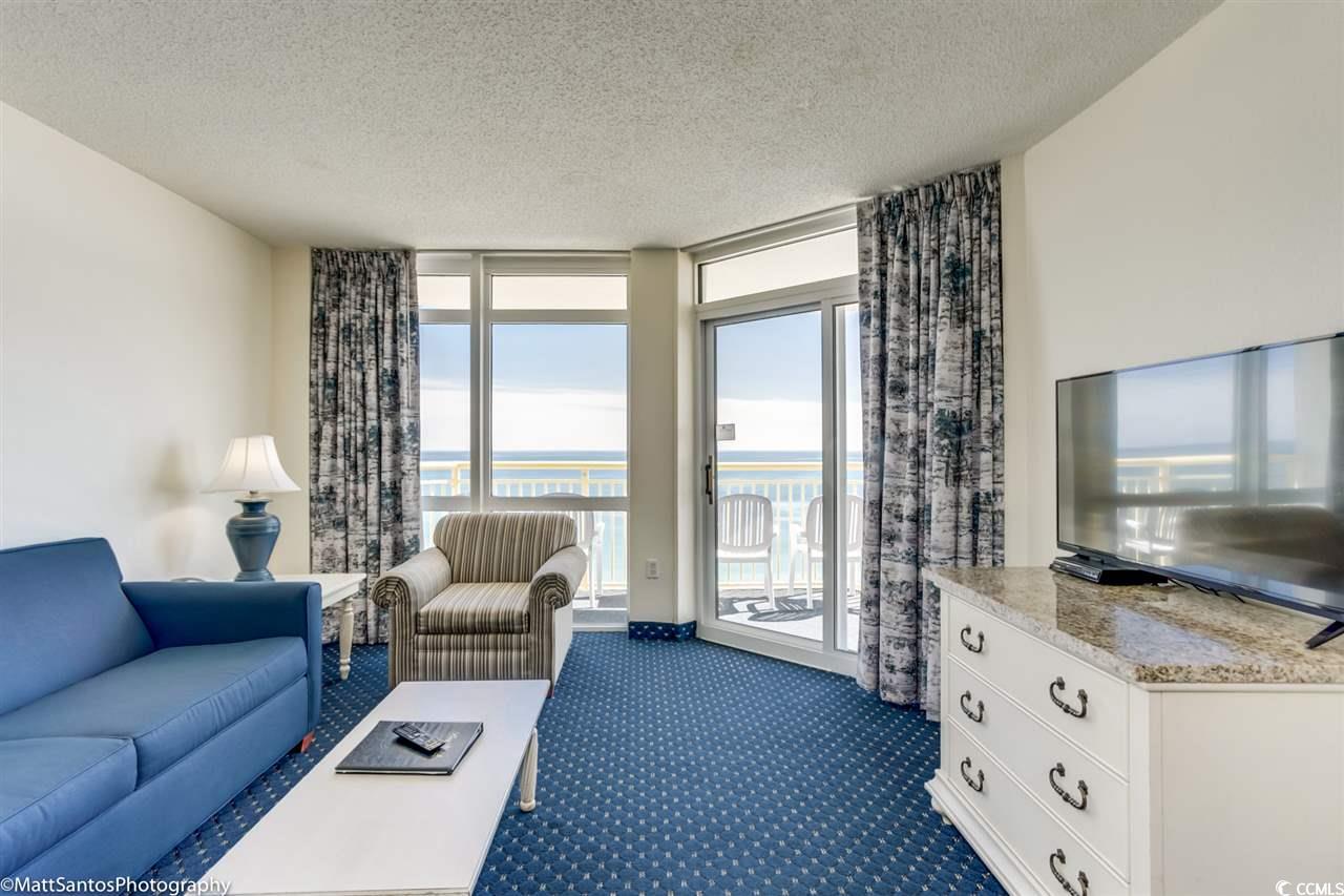 Price Reduced! Peak Rental Season is Upon Us! Best Priced 2 BR with true Oceanfront Master and full size 2nd bedroom! Absolutely Stunning and Extra Spacious Direct Oceanfront 2 BR/2 BA 14th Floor Oceanfront Condo with Tons of Updates PLUS a New HVAC; Top Tier Rated with the Onsite Program! Look at the Views from the Balcony this Unit type has! The Balcony extends the length of the living area AND the Master Bedroom! This is one of very few floorplans like this in the resort with HOA dues that are the lowest of any 2 bedroom in the Baywatch Resort! Whether you want to Rent it out or keep it for yourself, Don't Miss your Chance to Lock in this Great Value. Drive right up to the front steps, be greeted by a bell captain to assist with luggage and valet parking! The front desk, concierge, and full service restaurant, as well as the convention facilities, are all located in the Central Tower! It's the BEST!!! Baywatch has indoor/outdoor pools, lazy river, Jacuzzis, fitness, convention space, restaurant and sports bar, and a tiki bar - everything needed for a great vacation! HOA fees are very affordable and include utilities and cable/ internet.