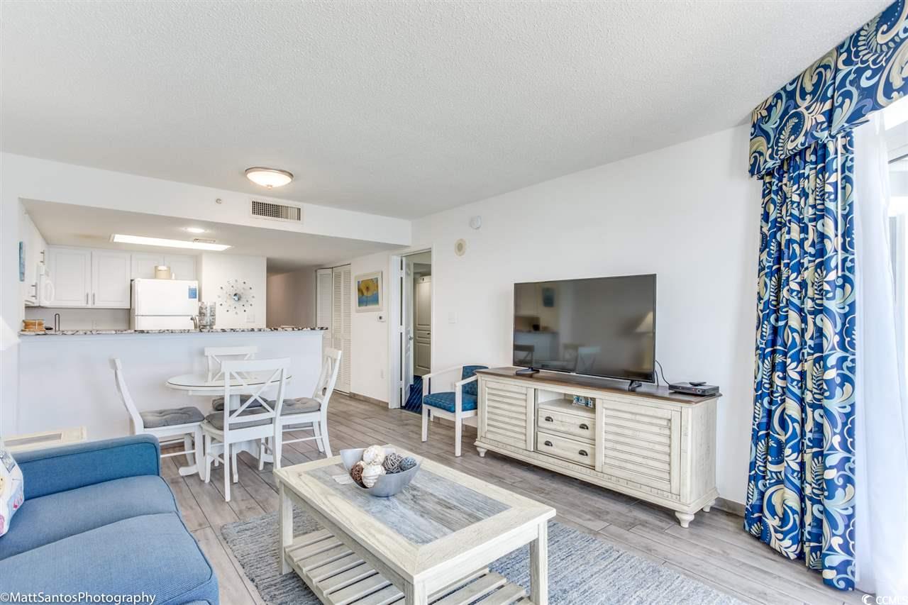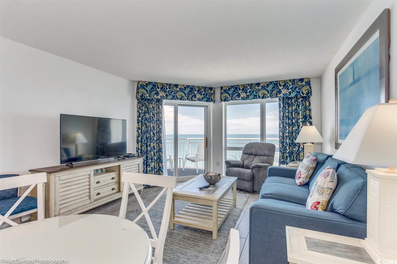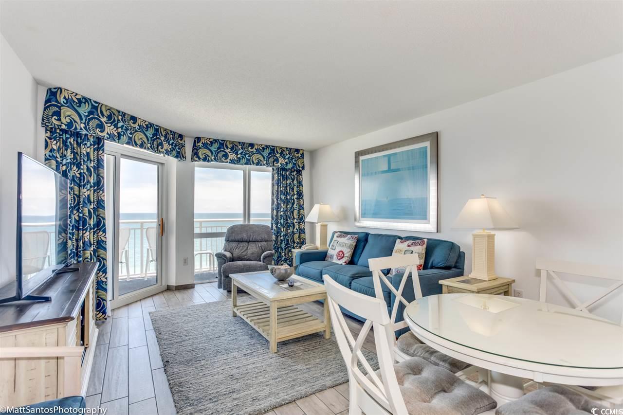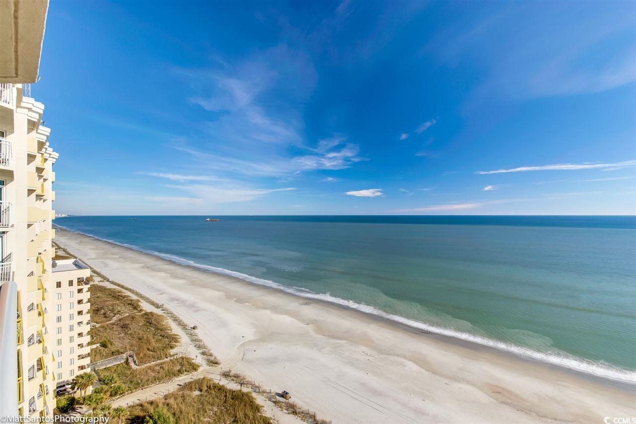 Spacious and Spectacular! Floor to Ceiling Glass in Living Area and Master offer Balcony Access and Direct Oceanfront Views like no other! This is THE Top Rated 2 Bedroom Unit at Baywatch Resort!!! Upscale Design Like a Picture from a Coastal Style Magazine! Absolutely Stunning Weathered Woodgrain Tile and Gorgeous Custom Granite Counters, Updated Kitchen and Bath Cabinetry, All New Furnishings and Bedding, New Drapery, Lamps/Lighting, and Decor! HVAC and Washer/Dryer Just Replaced! Literally Breathtaking Ocean Panorama - Just Look at the Views from the Balcony this Unit type has! The Balcony extends the length of the living area AND the Master Bedroom! This is one of very few floorplans like this in the resort with HOA dues that are the lowest of any 2 bedroom at Baywatch!! Baywatch has indoor/outdoor pools, lazy river, Jacuzzis, fitness, convention space, restaurant and sports bar, and a tiki bar - everything needed for a great vacation! HOA fees are very affordable and include utilities and cable/ internet.