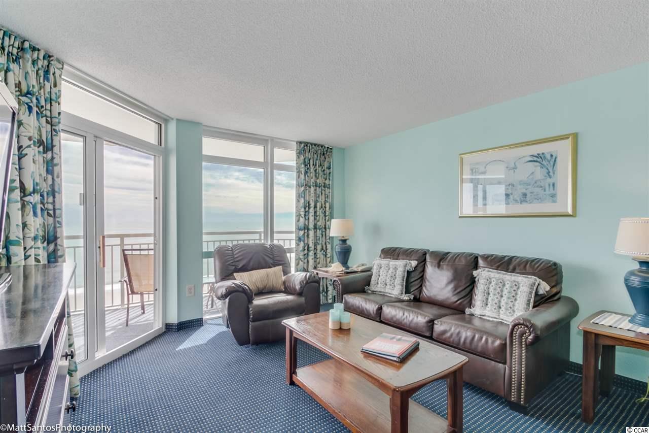 The Wait is Over! Here it Is! A 7th Floor Scrumptious Oceanfront Fully Updated 2 BR/2 BA Condo with an Expansive Balcony extending the length of the living area and Master Bedroom; and it could be Yours before the Year is Out! Floor to Ceiling Glass offers Breathtaking Views and Abundant Natural Light! Rated in the Top 3 of all 2 BR Rentals at Baywatch Resort!! Feel the Coastal Vibe from the minute you walk in the front door! Freshly Painted and Beautifully Decorated! Gorgeous Granite! Custom Cabinetry! Modern Bath Vanities and Fixtures! HVAC Recently Replaced! This is a Very Rare Floorplan with a very Spacious Layout and HOA dues that are the lowest of any 2 bedroom in the Baywatch Resort! Whether you want to Rent it out or keep it for yourself, Don't Miss your Chance to Lock in this Beautifully Remodeled Luxury Resort Condo! Drive right up to the front steps, be greeted by a bell captain to assist with luggage and let the relaxation begin! The front desk, concierge, and full service restaurant, as well as the convention facilities, are all located in the Central Tower! It's the BEST!!! Baywatch has indoor/outdoor pools, lazy river, Jacuzzis, fitness, convention space, restaurant and sports bar, and a tiki bar - everything needed for a great vacation! HOA fees are very affordable and include utilities and cable/ internet.