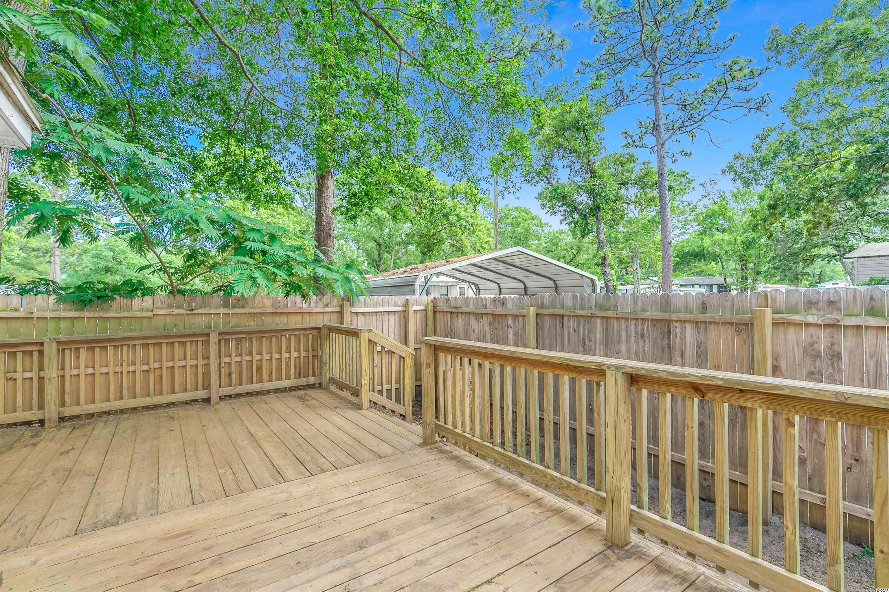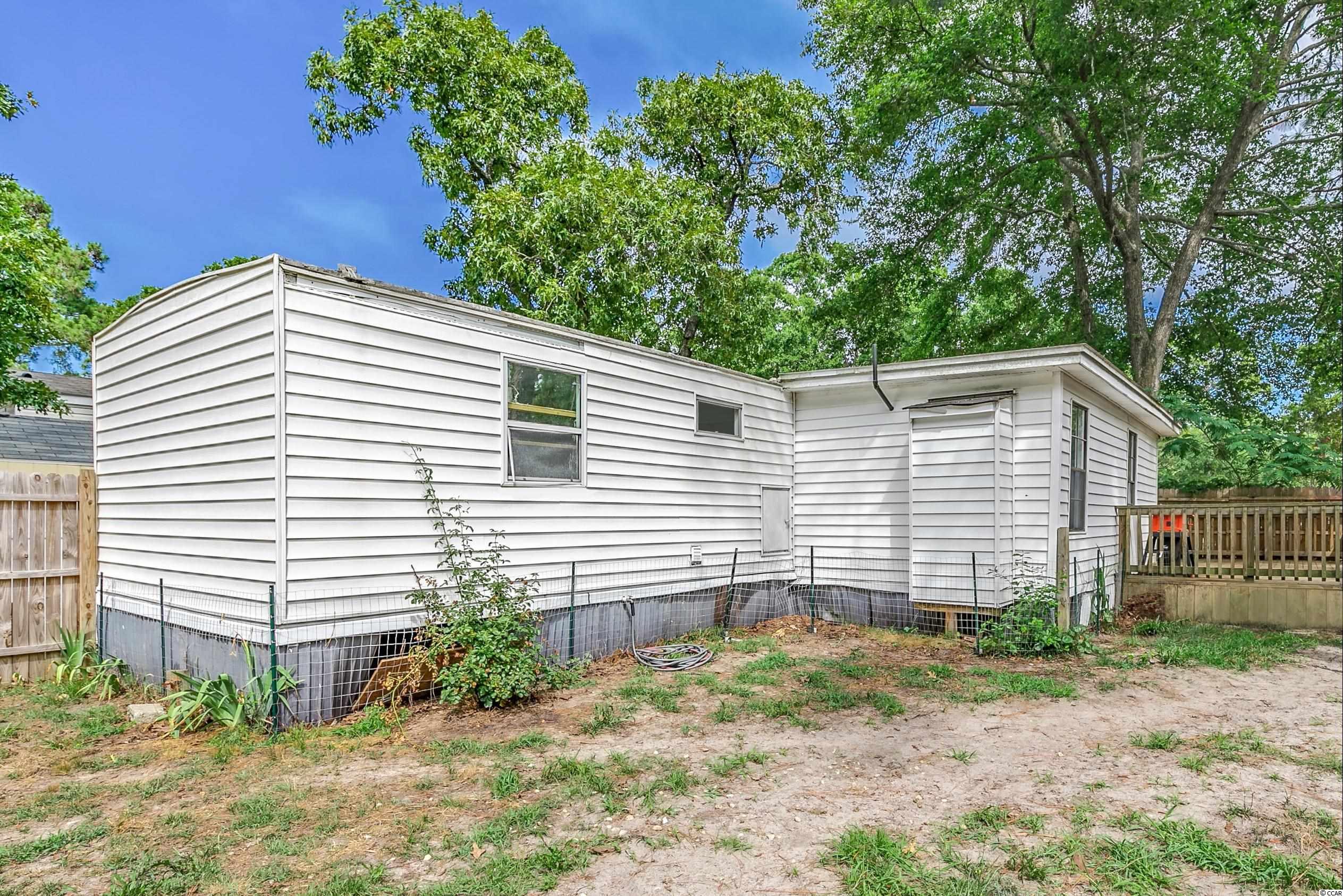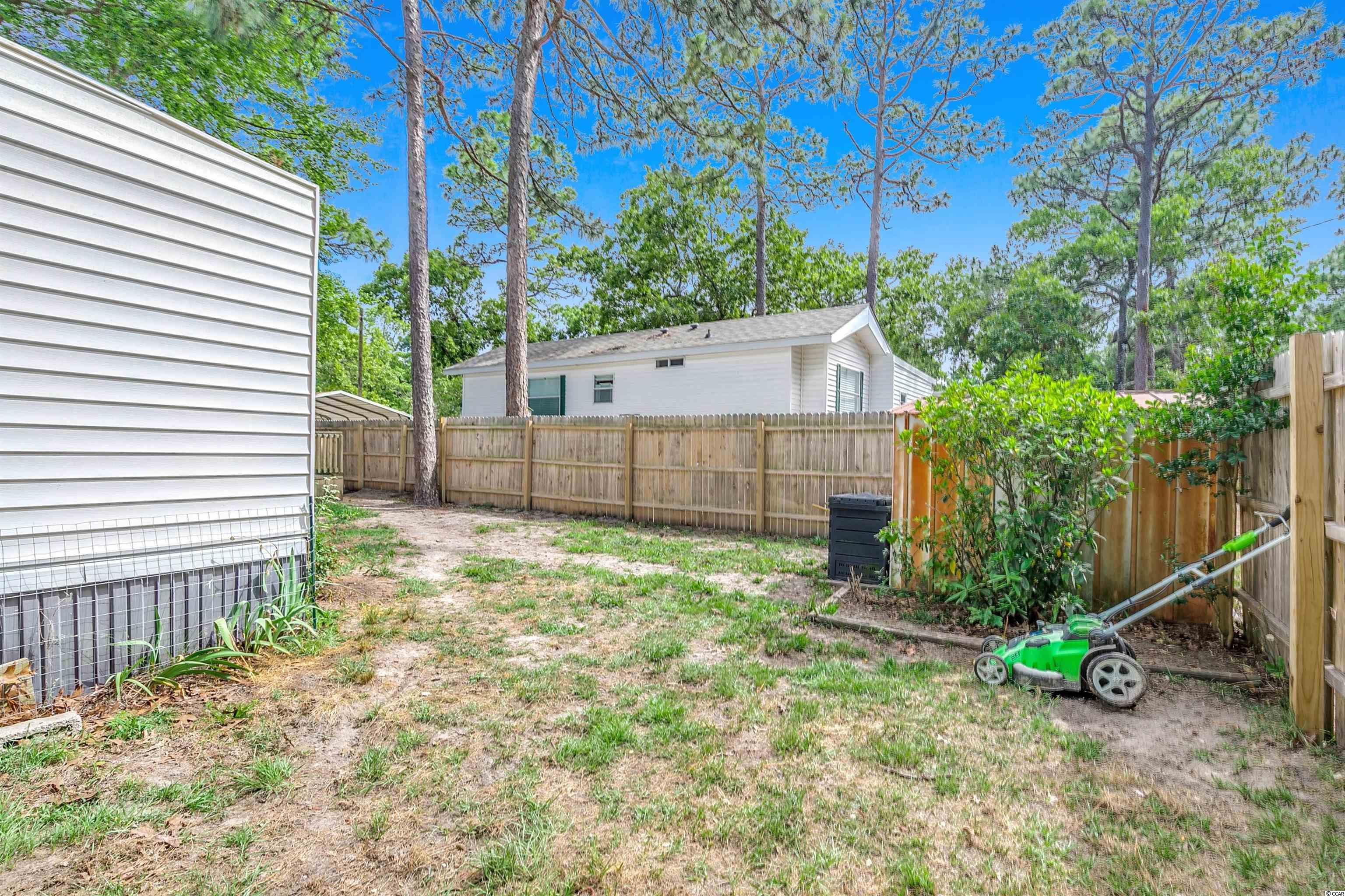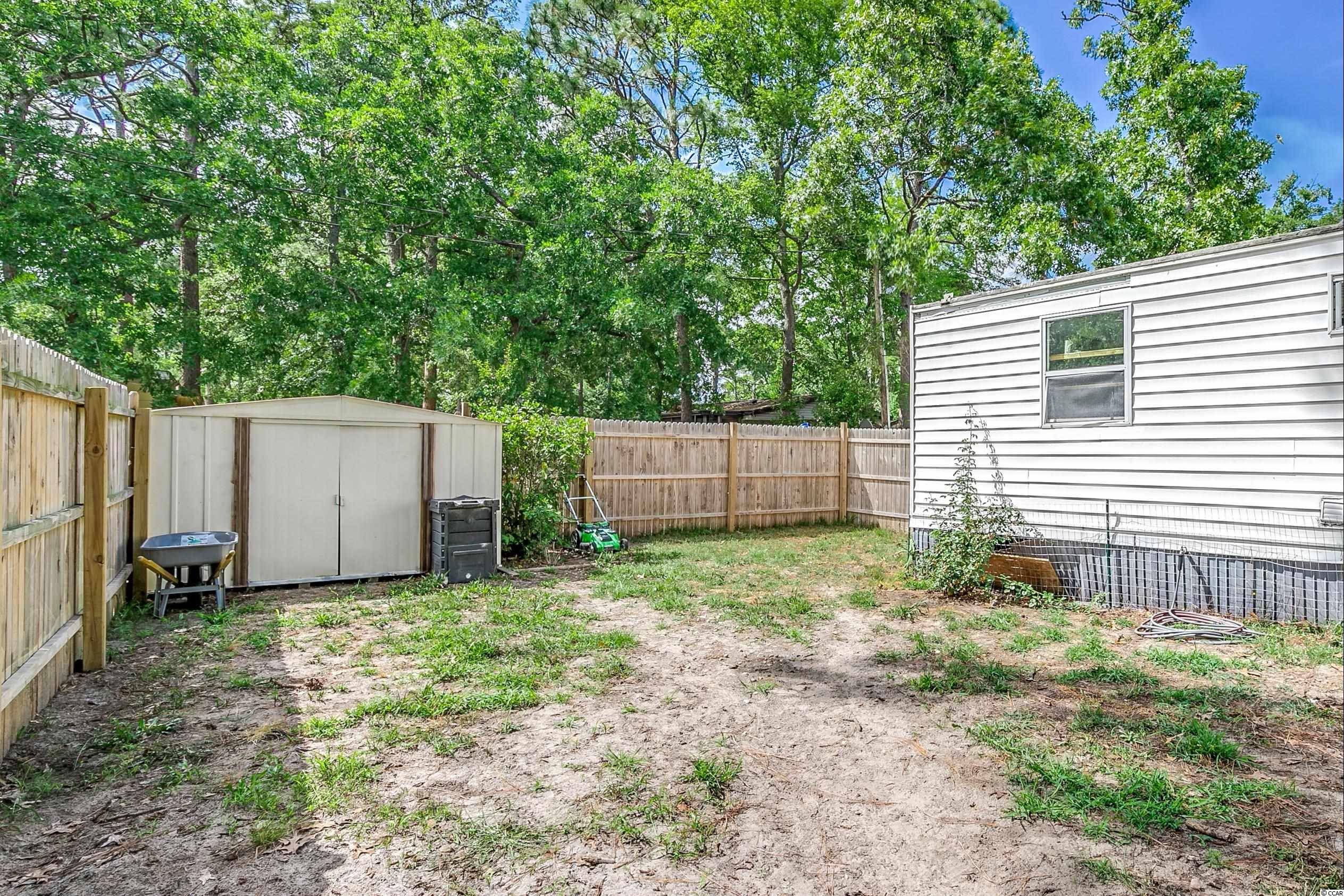 Come ride your golf cart to the beach and Market Common from this lovely home located in Crystal Lake! This spacious open concept provides plenty of room for entertaining, and the kitchen features a movable island along with a pantry! The primary bedroom is quite large with an en-suite bathroom, which has a huge custom tile shower! This beautiful home has a split floor plan with an oversized stainless steel ceiling fan in the living room. The entire home has been freshly painted and a dishwasher was added. This Southern-style kitchen features a farmhouse sink and rustic shelving along with modern countertops. A barn door was recently installed as well. The owners are even offering a home warranty for extra peace of mind. The washer and dryer will convey. The big yard is fenced-in, so it's the perfect place for your furry friends to play. There's also an outdoor storage building where you can store all of your beach necessities. The large front porch is a great place to grill out with your friends. You can even fish, kayak, and paddleboard on the lake! There's a lot of space for you to enjoy your freedom, unlike most condos that are stacked on top of each other. Owners are allowed to have motorcycles, golf carts, and pets! You can also store a boat or an RV in your driveway if it will fit. This neighborhood is conveniently located close to Myrtle Beach State Park, Prestwick Country Club, and Lakewood Elementary. There's even a dog park right down the street! Lot rent includes cable TV with over 100 channels and trash pickup along with recycling. This is a very desirable location, and you don't want to miss out on this one! Schedule your showing today! Square footage is approximate and not guaranteed. Buyer is responsible for verification.