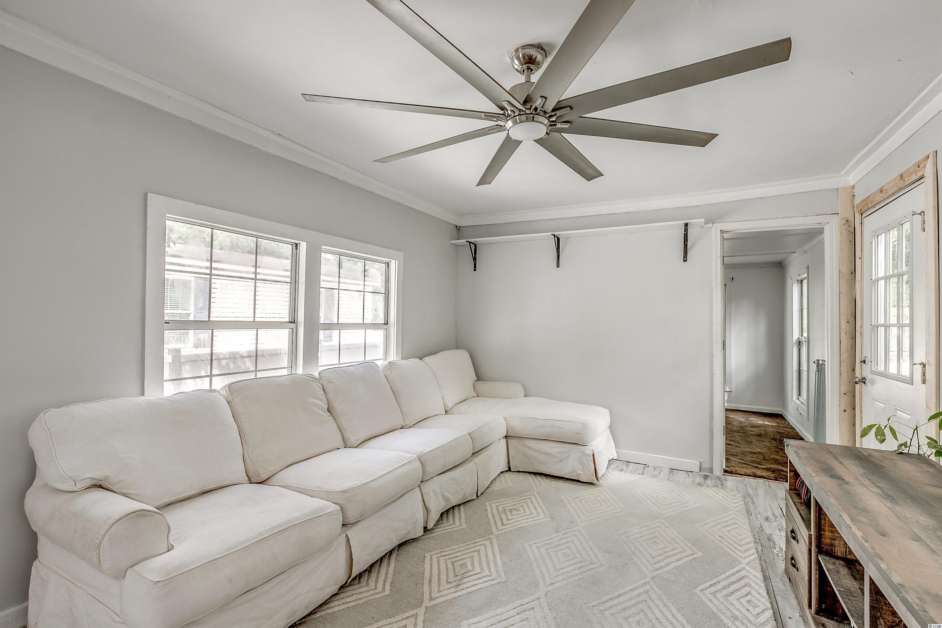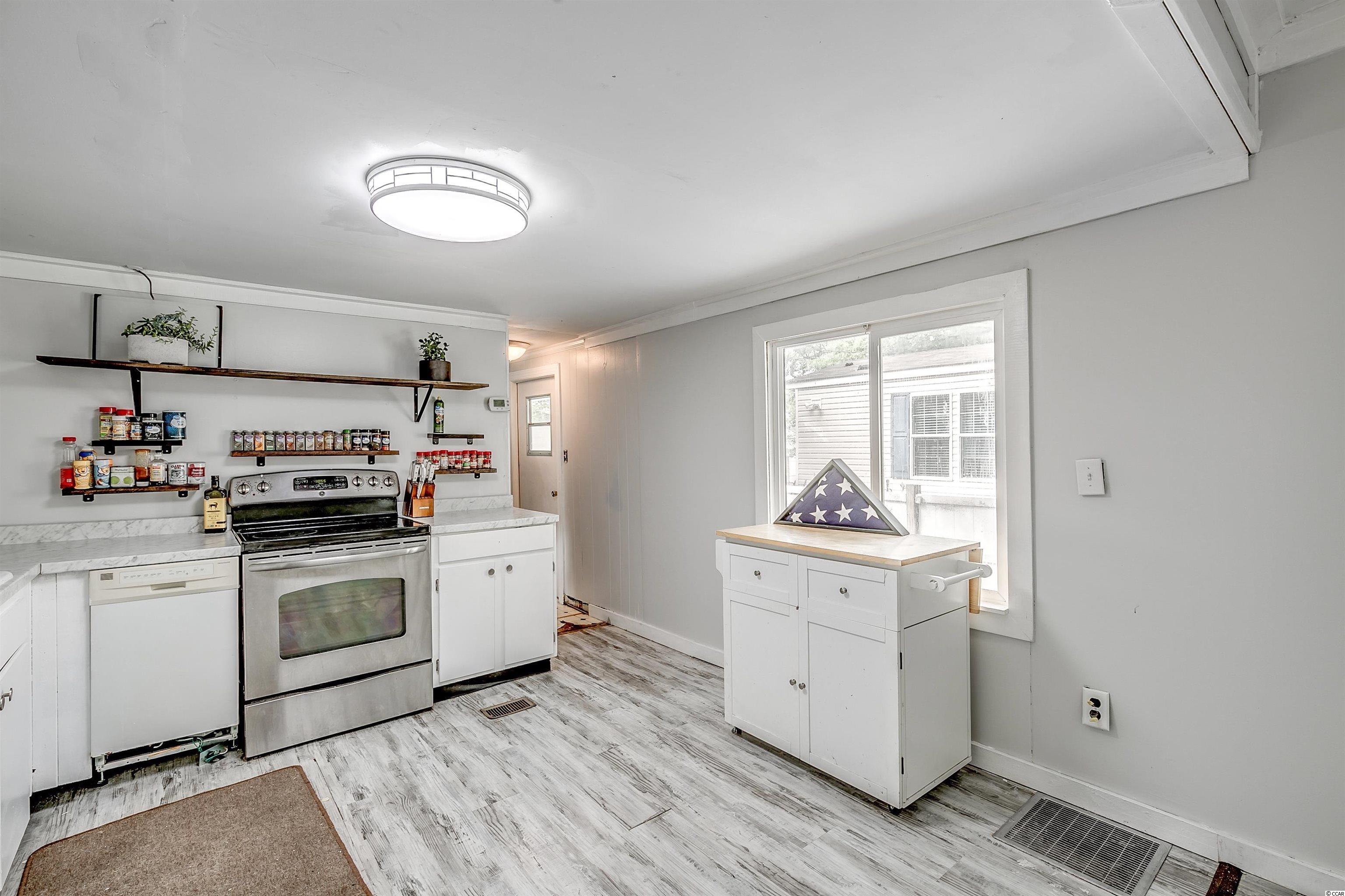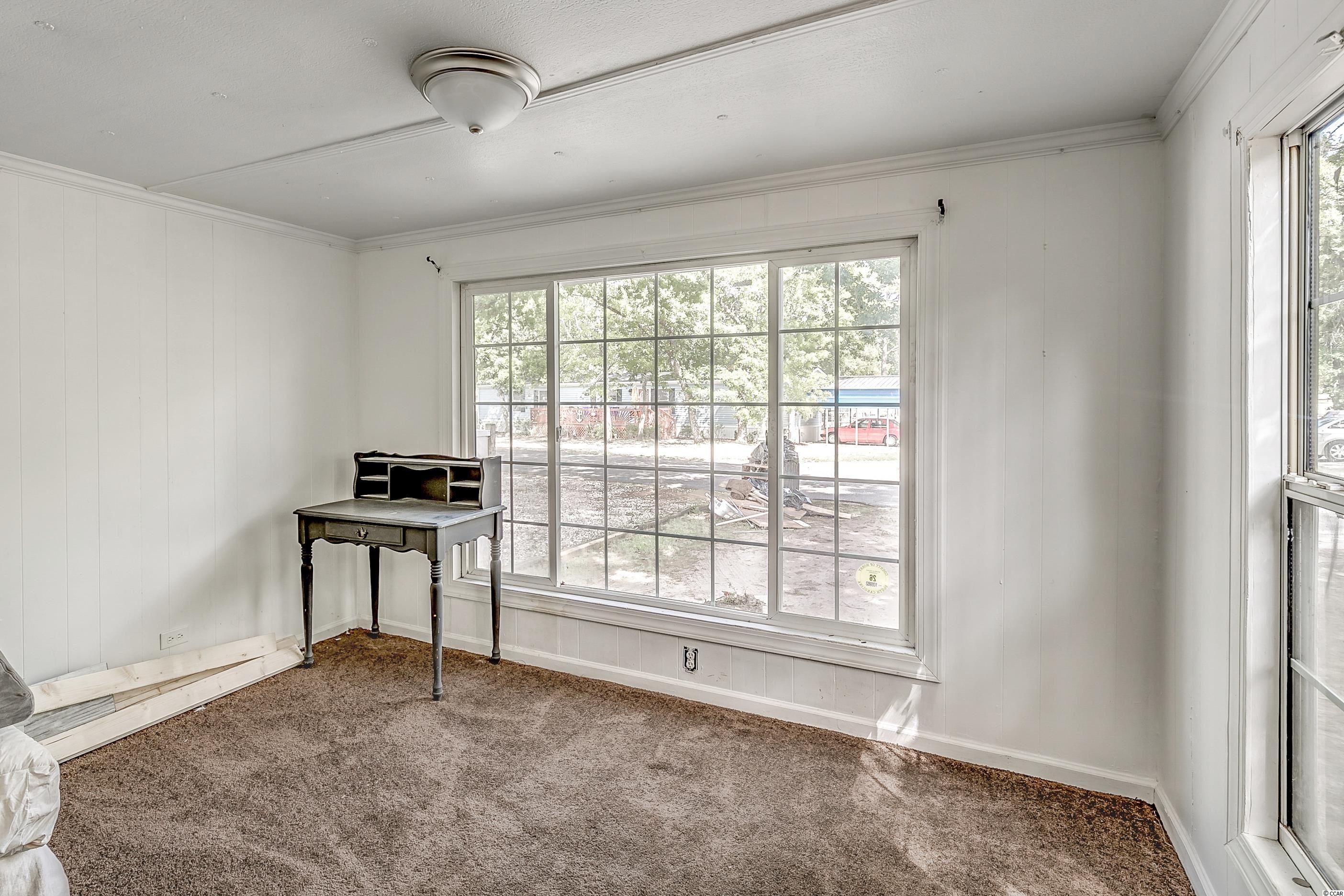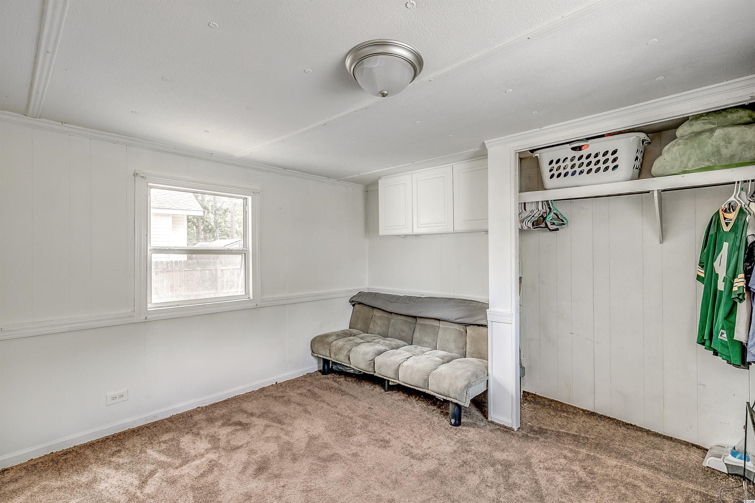 Come ride your golf cart to the beach and Market Common from this lovely home located in Crystal Lake! This spacious open concept provides plenty of room for entertaining, and the kitchen features a movable island along with a pantry! The primary bedroom is quite large with an en-suite bathroom, which has a huge custom tile shower! This beautiful home has a split floor plan with an oversized stainless steel ceiling fan in the living room. The entire home has been freshly painted and a dishwasher was added. This Southern-style kitchen features a farmhouse sink and rustic shelving along with modern countertops. A barn door was recently installed as well. The owners are even offering a home warranty for extra peace of mind. The washer and dryer will convey. The big yard is fenced-in, so it's the perfect place for your furry friends to play. There's also an outdoor storage building where you can store all of your beach necessities. The large front porch is a great place to grill out with your friends. You can even fish, kayak, and paddleboard on the lake! There's a lot of space for you to enjoy your freedom, unlike most condos that are stacked on top of each other. Owners are allowed to have motorcycles, golf carts, and pets! You can also store a boat or an RV in your driveway if it will fit. This neighborhood is conveniently located close to Myrtle Beach State Park, Prestwick Country Club, and Lakewood Elementary. There's even a dog park right down the street! Lot rent includes cable TV with over 100 channels and trash pickup along with recycling. This is a very desirable location, and you don't want to miss out on this one! Schedule your showing today! Square footage is approximate and not guaranteed. Buyer is responsible for verification.