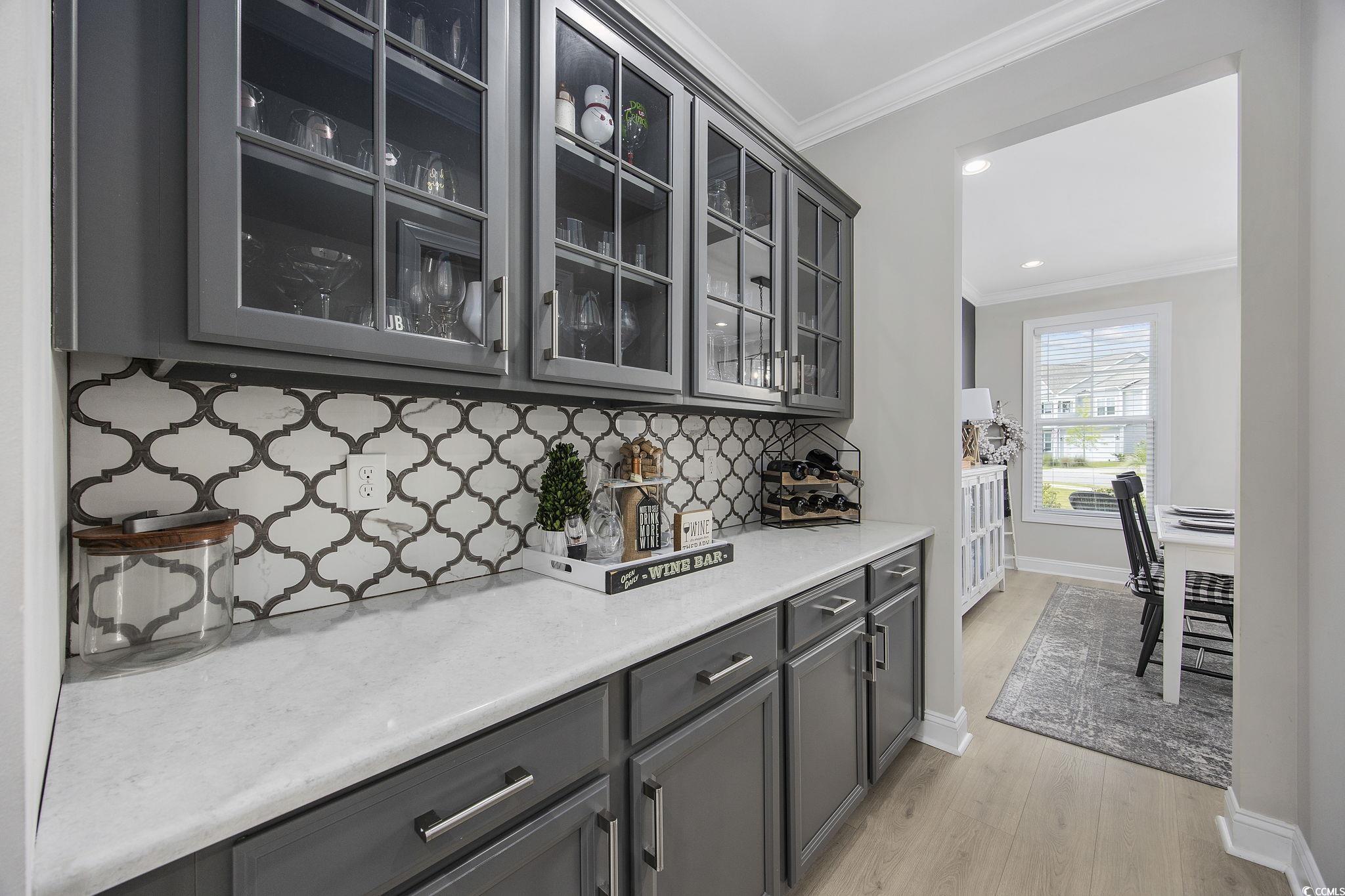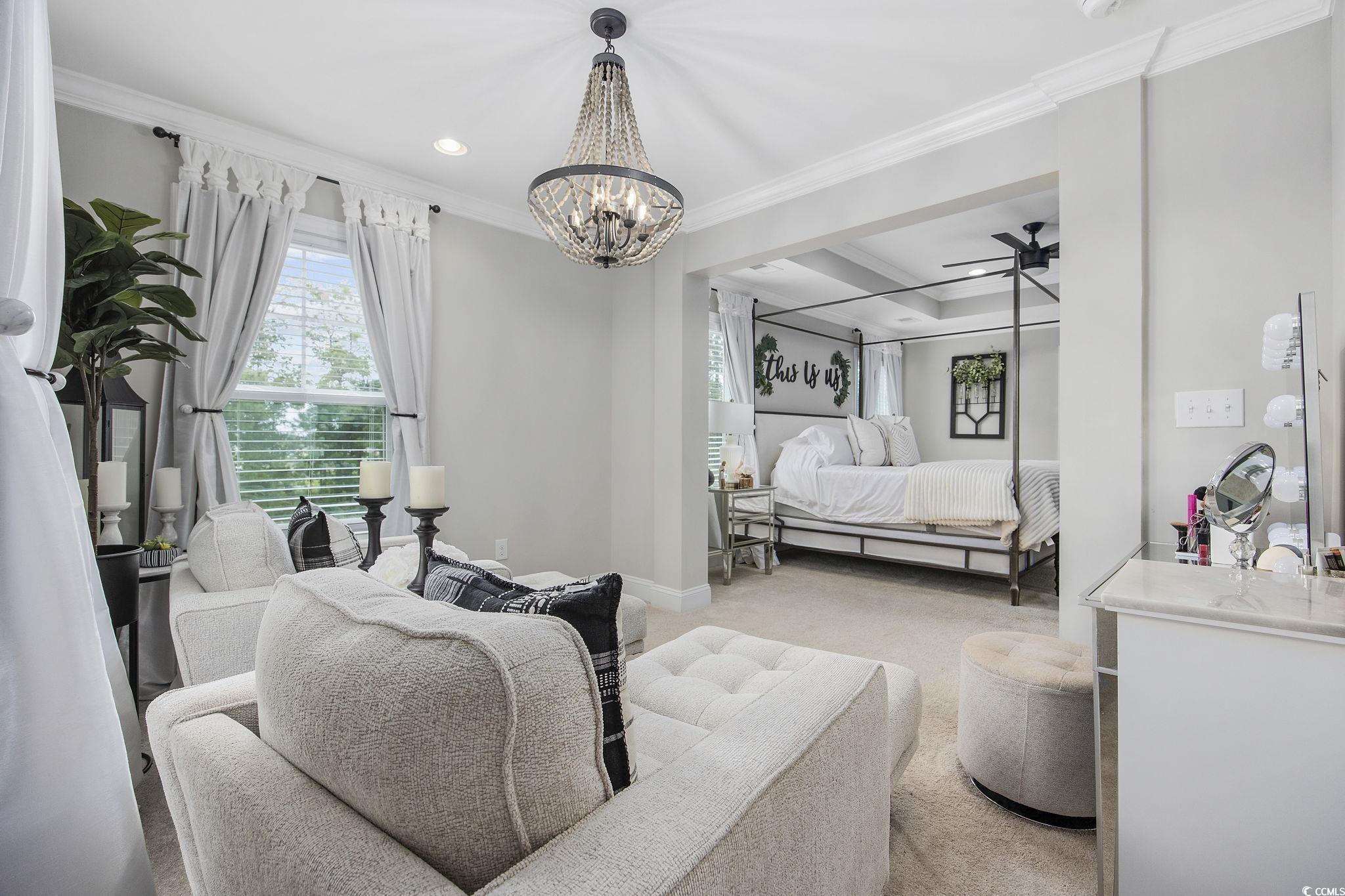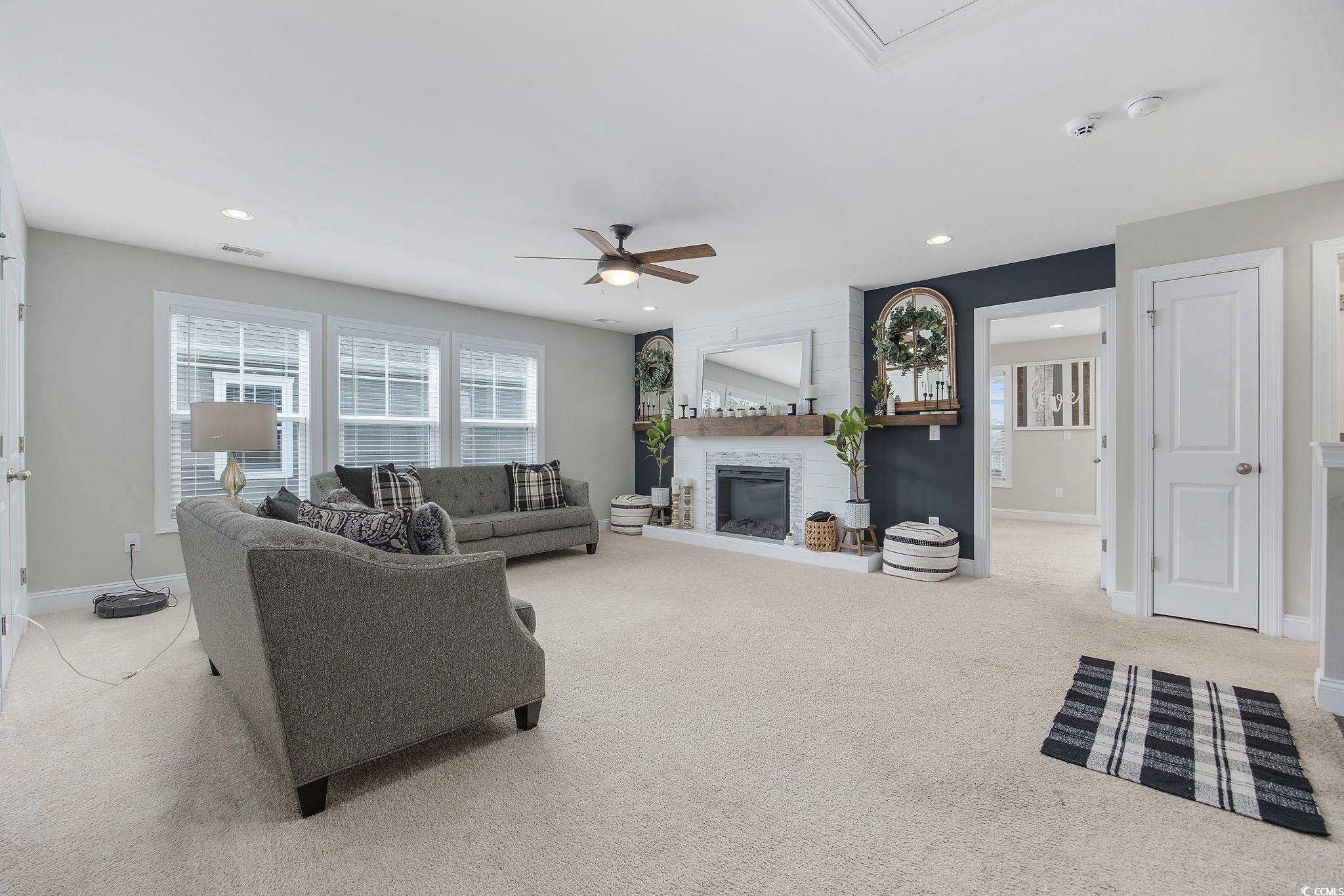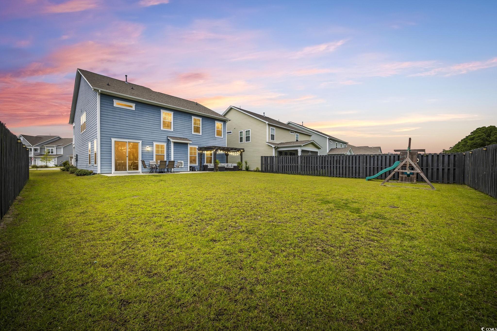 This stunning Charleston-style partially-furnished home with two southern porches is located in The Summit- Meridian near Market Common (Myrtle Beach's Uptown Downtown) and boasts four spacious bedrooms and three full baths. The first-floor main living area features tile-like flooring throughout, custom upgraded lighting, energy efficient tankless hot water heater, security system, Ring doorbell, and living room features a natural gas fireplace.There is also a dining room with French doors (flex room/den/office), butler's panty, huge walk-in pantry, mud room, a private bedroom and full bathroom on the main level. The gourmet kitchen is a chefs delight and the heart of the home overlooking the living and breakfast areas. It features sleek quartz countertops, kitchen island, elegant gray painted cabinets, a stylish backsplash, gas range, double ovens and top-of-the-line Kitchen Aid stainless steel KitchenAid appliances. Upstairs, youll discover a huge loft with a custom electric fireplace the homeowner added. This versatile area is great for movies and play and also features two closets along with a pull-down attic for storage. Two additional bedrooms, a laundry room, and the luxurious primary suite complete the upper level. The primary suite is a true sanctuary with a separate sitting area, a one-of-a-kind closet, and an en suite featuring dual vanities, a tiled spa shower, and a linen closet. Spacious outdoor patio and fenced yard is great for play and more than enough room for a private pool. This home is a perfect blend of style, comfort, and convenience, offering everything you need for modern living. Home is sold partially furnished and furnishings that convey include living room, breakfast area, dining room, and front bedroom upstairs (near the balcony.) You will always have entertainment nearby. Meridian features a large pool, indoor pickleball court, hot tub, fire pit, walking/bike trails, and just a couple of miles to the Atlantic ocean. Market Common features an active lifestyle, endless restaurants with daily specials, Farmer's Market, Culinary Institute, dog park, yoga and dance classes, Billiards and Bowling, Movie Theatre, Wine Tastings, Escape Vault, and Movies under the Stars. Holiday events include fall and spring Taste of Market Common, Holiday Carriage rides, Hometown Halloween, Annual Tree Lighting, and New Year's Eve Ball Drop. There is something for everyone on your list in this fabulous community - Dont miss the opportunity to make this exceptional property yours!