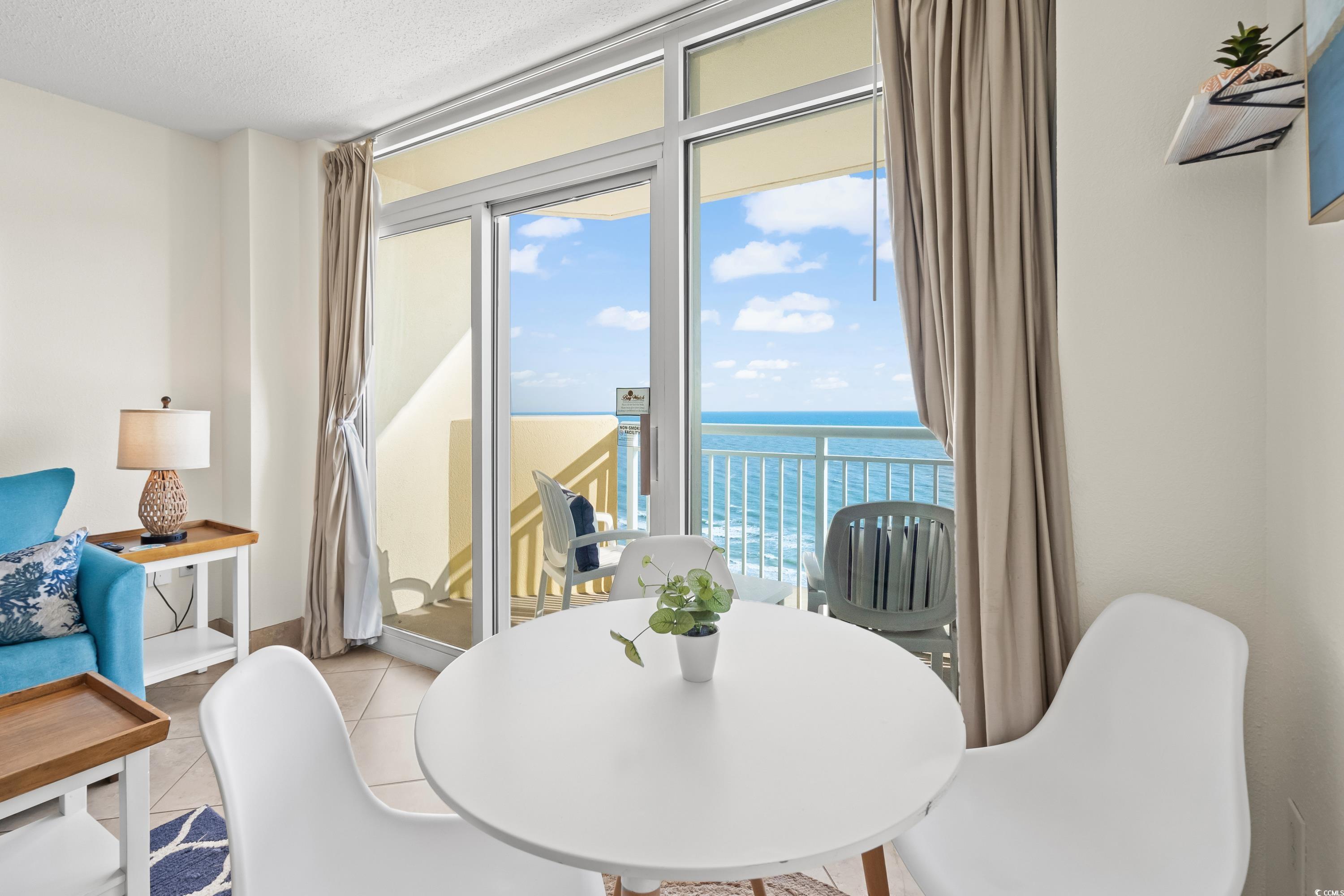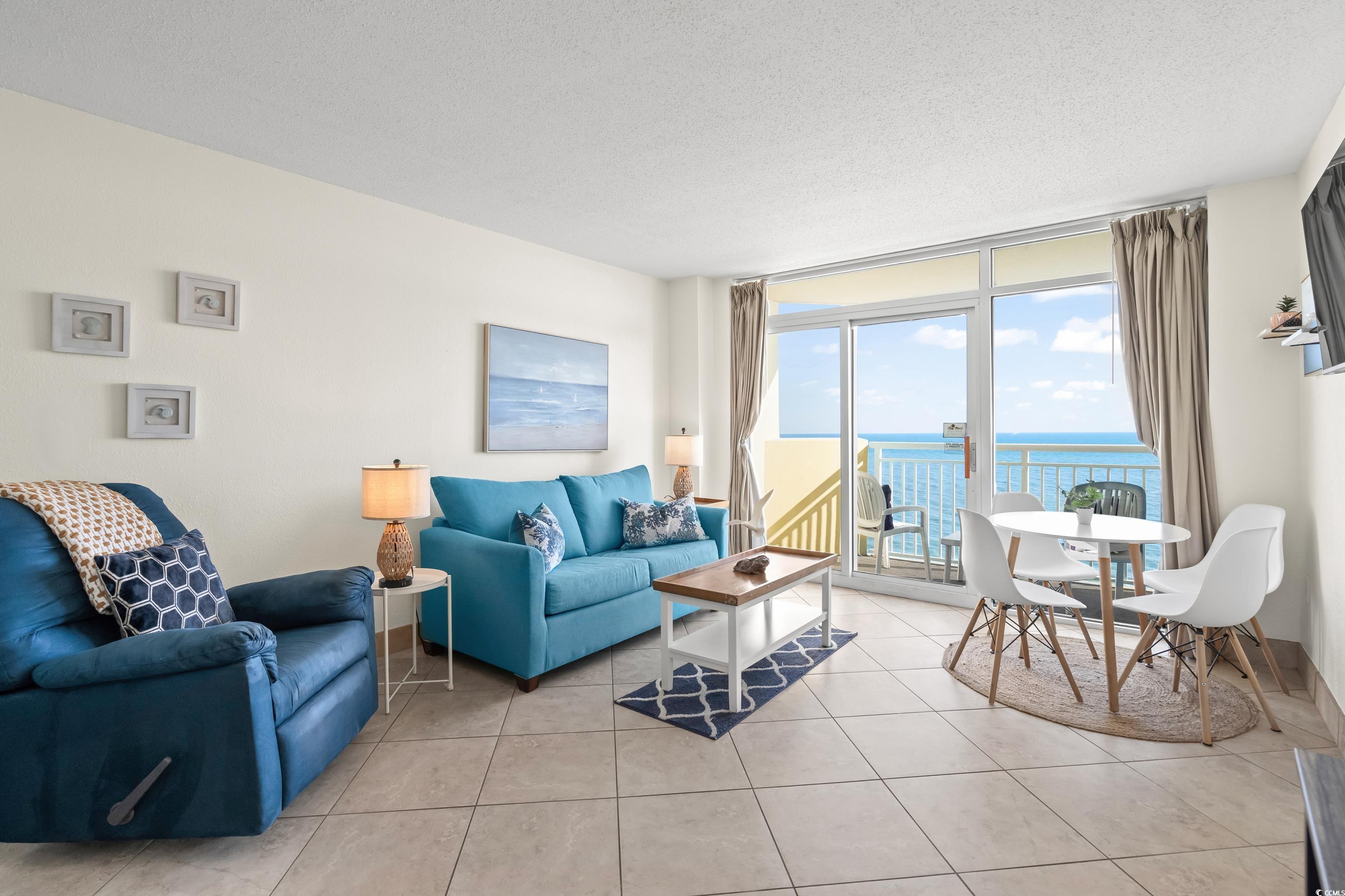 Come and see this beautiful OCEANFRONT, TRUE 1-bedroom, 1-bath condo on the 15th floor of Bay Watch resort. Offering a unique layout - you enter into the foyer leading to the galley kitchen and separate bedroom and living/dining area. Step out the sliding door onto your oceanfront balcony to enjoy the amazing views of the beach and ocean. Recent updates include new flooring in bedroom, new paint throughout, new TV's, all new bedroom furniture and bedding, new bathroom vanity, light, mirror and faucet, new living room furniture including sleeper sofa, removed Murphy bed and added bar and chairs, new lamps and decor throughout making this the perfect home away from home or an investor's dream! But wait, there's more! Bay Watch isn't just about the condoit's a full-on vacation experience. Enjoy access to over 18 water amenities including indoor and outdoor pools, lazy rivers, hot tubs, a kiddie pool, fitness center, 3 on-site dining options, ice cream shop and gift/souvenir shop. Pack your bags and get ready for oceanfront bliss!