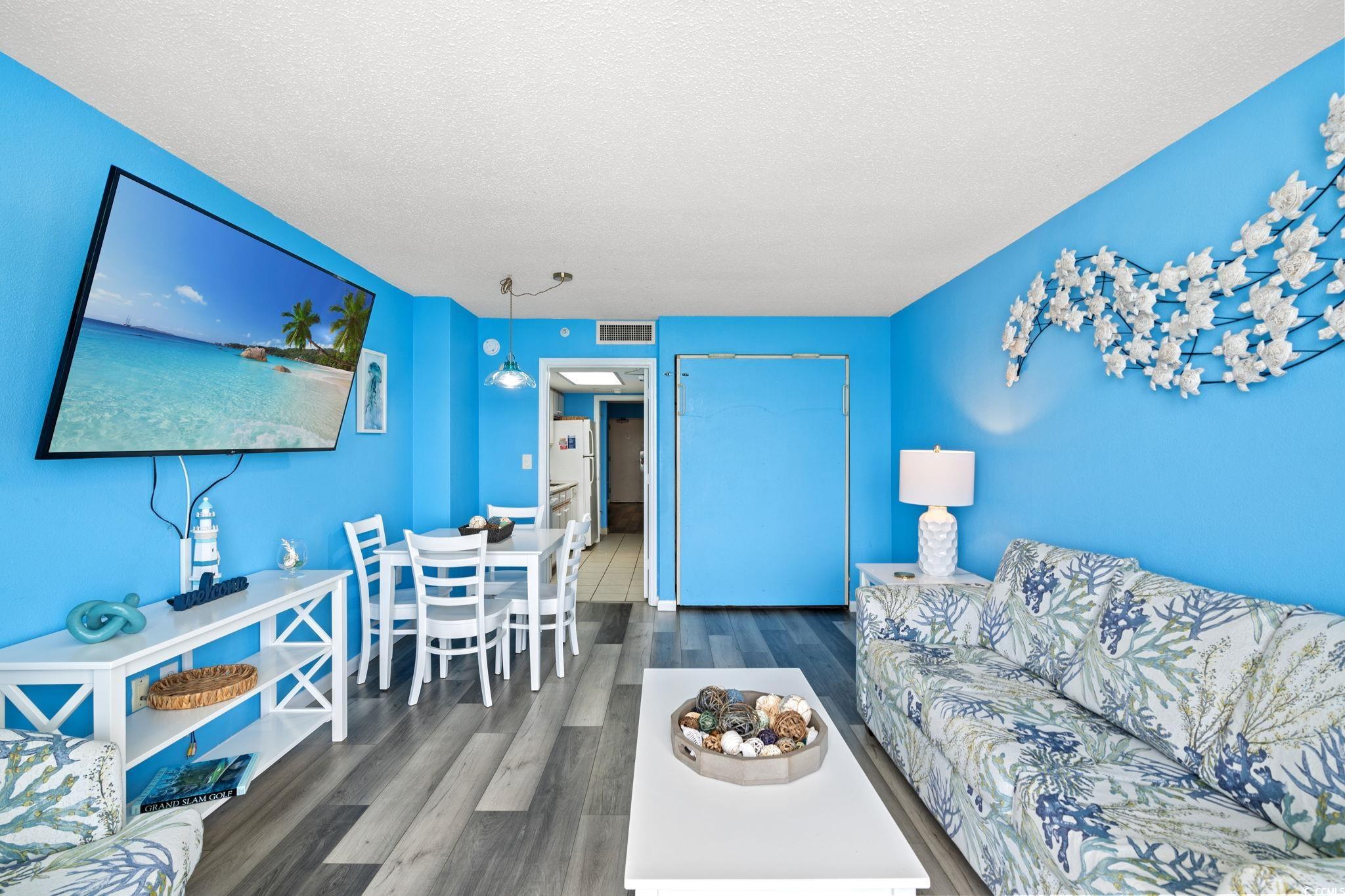Superb Rental Investment Potential! Motivated Seller has Two Units for Sale - Let's Make a Deal!!! Hot off the Press! Much Sought after Location in North Myrtle Beach! Come and check out this Oceanfront 1 BR Condo in Baywatch Resort South Tower! Convenient to Parking Deck and Sandtrap Restaurant and Bar! Fun beachy decor updated in 2024 with new Living and Dining Room furnishings, window treatments and dinette lighting! Stunning LVP flooring added in 2024 also! Come and Enjoy sitting on your balcony for the morning coffee and/or the evening cocktail! Relax and spend your time sunbathing or swimming in one of the many Baywatch oceanfront pools! Take a stroll on the beach and enjoy the fresh air and balmy breezes! This spacious condo has a Sleeper sofa and a Murphy Bed in the Oceanfront Living Room - it's truly like having a 2-bedroom unit because the doors separate the living area from the kitchen/bath! Baywatch is a much sought after high rise resort with indoor and outdoor pools, exercise room, lazy rivers, hot tubs, tiki bar, sports bar, and full service restaurant! Stay and Play! Perfect for families, friends, golf groups! Oceanfront Luxury, Utilities Included, and Incredible Amenities!