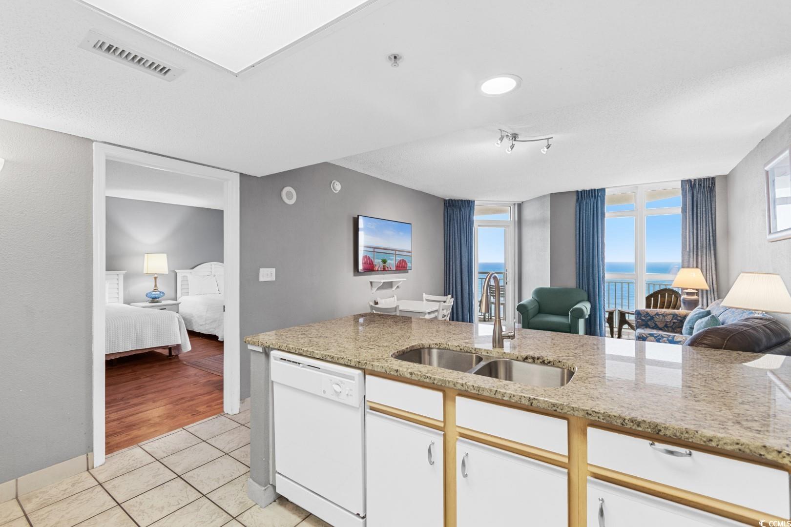 Don't miss your opportunity to own this fully furnished, oceanfront 2 bedroom, 2 bathroom condo in the highly sought-after, Baywatch Resort! This unit features a new HVAC, updated flooring in every room with well coordinated furnishings and upgraded TV's (new in 2023) in every room. The full size kitchen is equipped with all appliances, upgraded granite countertops, a breakfast bar, and a dining area that seats 4. The living room also features a pull out sofa for an added sleeping space, in addition to the two queen beds in each of the bedrooms. A brand new washer dryer is in the unit for added convenience. With a direct view of the ocean from your 18th-floor balcony & new patio furniture, this unit will make the perfect vacation getaway or investment opportunity! Baywatch offers the best amenities including indoor and outdoor pools, indoor and outdoor lazy rivers, hot tubs, an onsite convenience store, dining, and more. Perfectly situated in the heart of North Myrtle Beach and near all of the Grand Strand's finest dining, shopping, golf, and entertainment attractions. You won't want to miss this. Schedule your showing today!