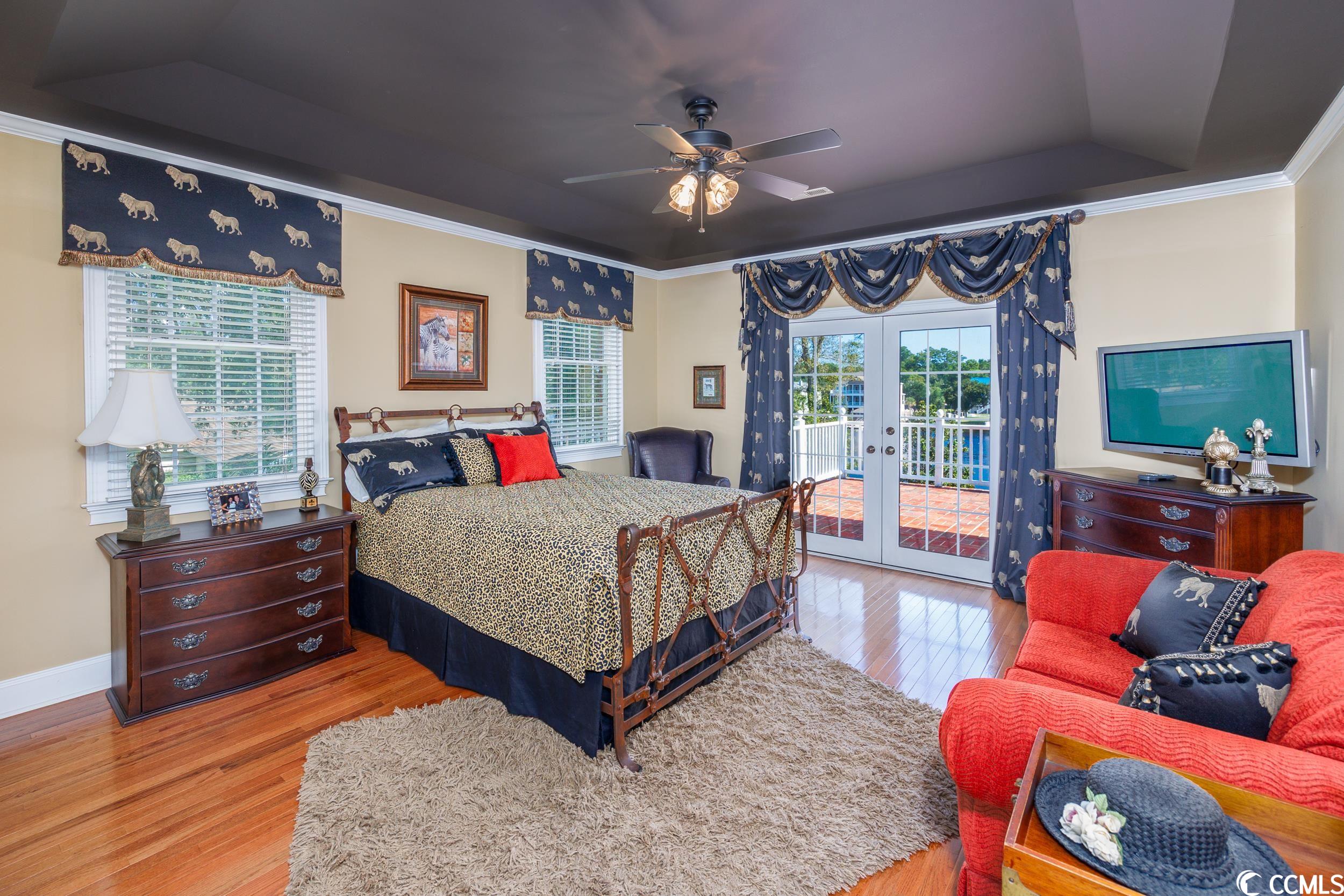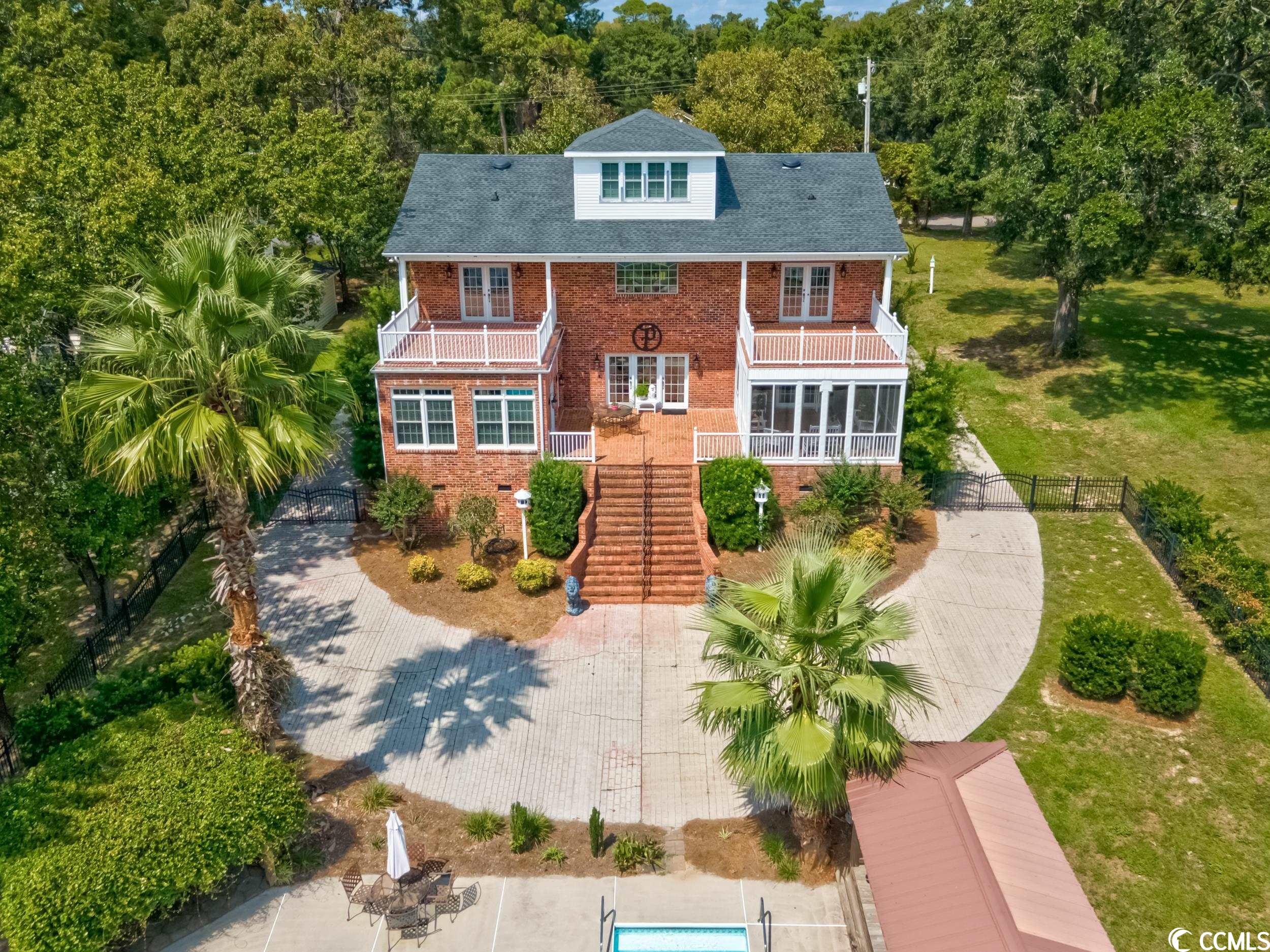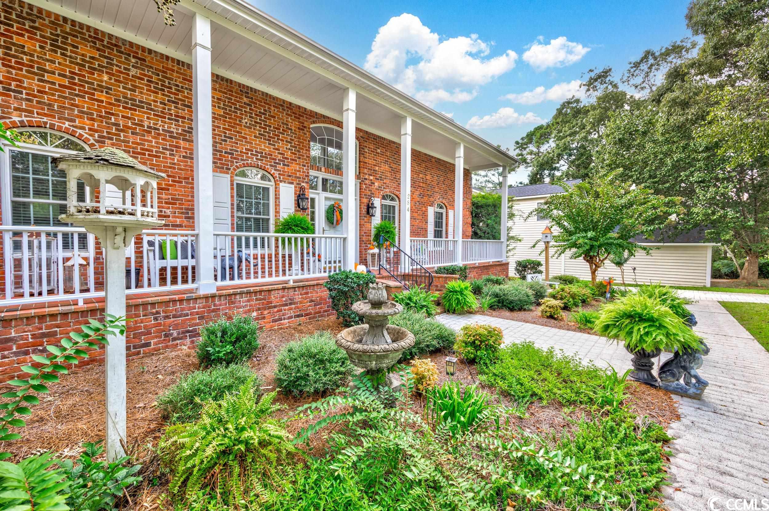 Gorgeous 4 BEDROOM/ 4 BATH All brick 3 story home nestled on over a half-acre (.56 acre) manicured lot directly on the Intracoastal Waterway. Walk up to this 3-story brick beauty and be greeted by a large covered front porch featuring beautiful brick flooring and 6 tasteful columns to accent the home and its southern charm. Enter an expansive tiled foyer and den area which opens directly into a lovely family room boasting two decorative columns, exquisite oak hardwood floors and awesome waterway views. When you enter immediately feel the wow of the light, bright, openness with soaring ceilings and wainscot. Attention to detail is throughout this estate type coastal home. Family room has French doors leading to huge brick deck overlooking the intracoastal, large saltwater pool, covered outdoor kitchen, pier leading to a covered gazebo directly over the waterway, and a large spacious back yard. On one side of brick deck is a large brick floored screen porch and on the other side are French doors leading to a phenomenal brick floored Carolina Room. So many wonderful gathering places for your family and friends and this home is an entertainers dream. The kitchen and dining area are open to the family room. Kitchen is complete with solid surface counter tops, stainless-steel appliances including a French door refrigerator/freezer, range, dishwasher, microwave, trash compactor and breakfast bar. The kitchen offers tons of counter space, cabinets, and custom wine rack.. Right off the kitchen find a large utility room complete with front load washer and dryer, large sink, and cabinets for storage. Master bedroom is on main level and boast hardwood floors, tray ceiling, tremendously large walk-in closet, French doors leading to an awesome brick floored screened porch with spectacular views. Master bath is huge and features tiled floors, 2 separate sink areas with plenty of storage, large jacuzzi tub and walk-in shower. A second bedroom is located on main level with hardwood floors, tray ceiling, walk-in closet and full tiled bath with tub/shower and linen closet. Venture up the beautiful stairwell, accented by hardwood steps and wainscot. Detail in this home is superb. Upstairs youll find 2 additional huge master suites, each complete with hardwood floors, tray ceilings, large closets, full tiled baths, tub/showers, linen closets, and each has another large, lovely room with hardwood floors perfect for a den, office, study, or an additional sleeping area. Did I mention BOTH bedrooms also have French doors leading to huge brick floored decks providing owners with intracoastal views to be envied by all. This home is currently being marketed as a 4-bedroom home, but with the flex room off each upstairs bedroom these rooms could easily be adapted as 2 additional bedrooms. If thats not enough, venture to the third level on the lovely spiral stairs and find a huge bonus area, perfect for a bonus/recreational room, or guest area. This home, amenities, and views are phenomenal and will please even the most discerning buyer. The home also offers two separate driveways to welcome all your guests, family, friends.. plenty of parking for all. See it youll want to call this Southern Coastal beauty yours.