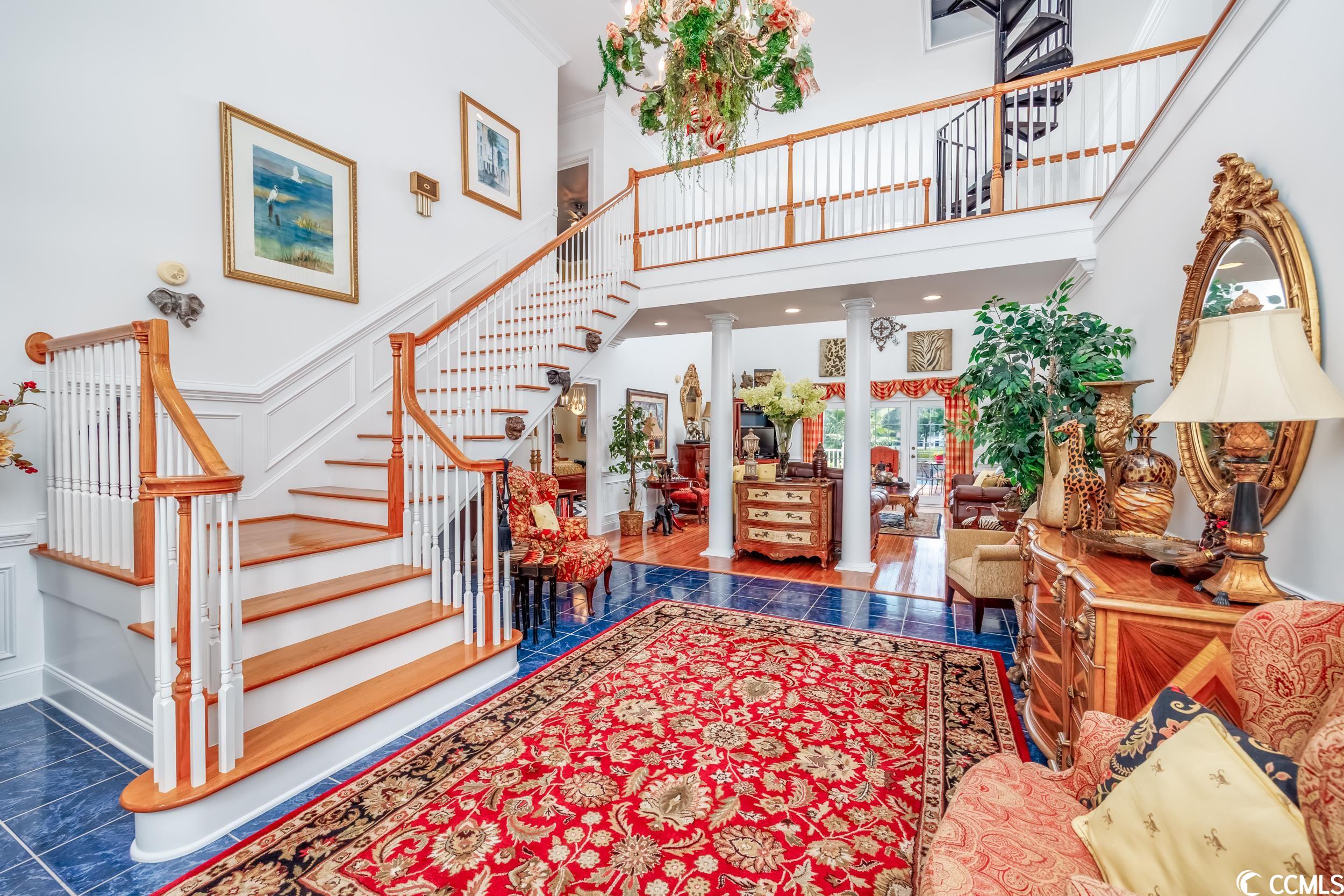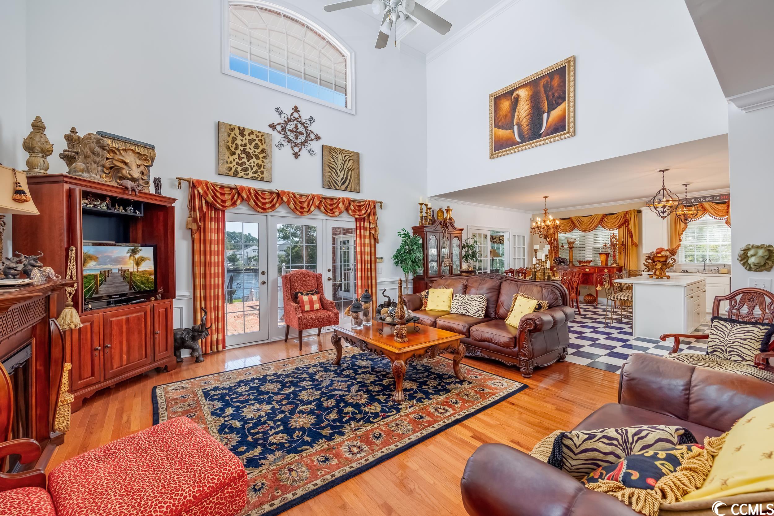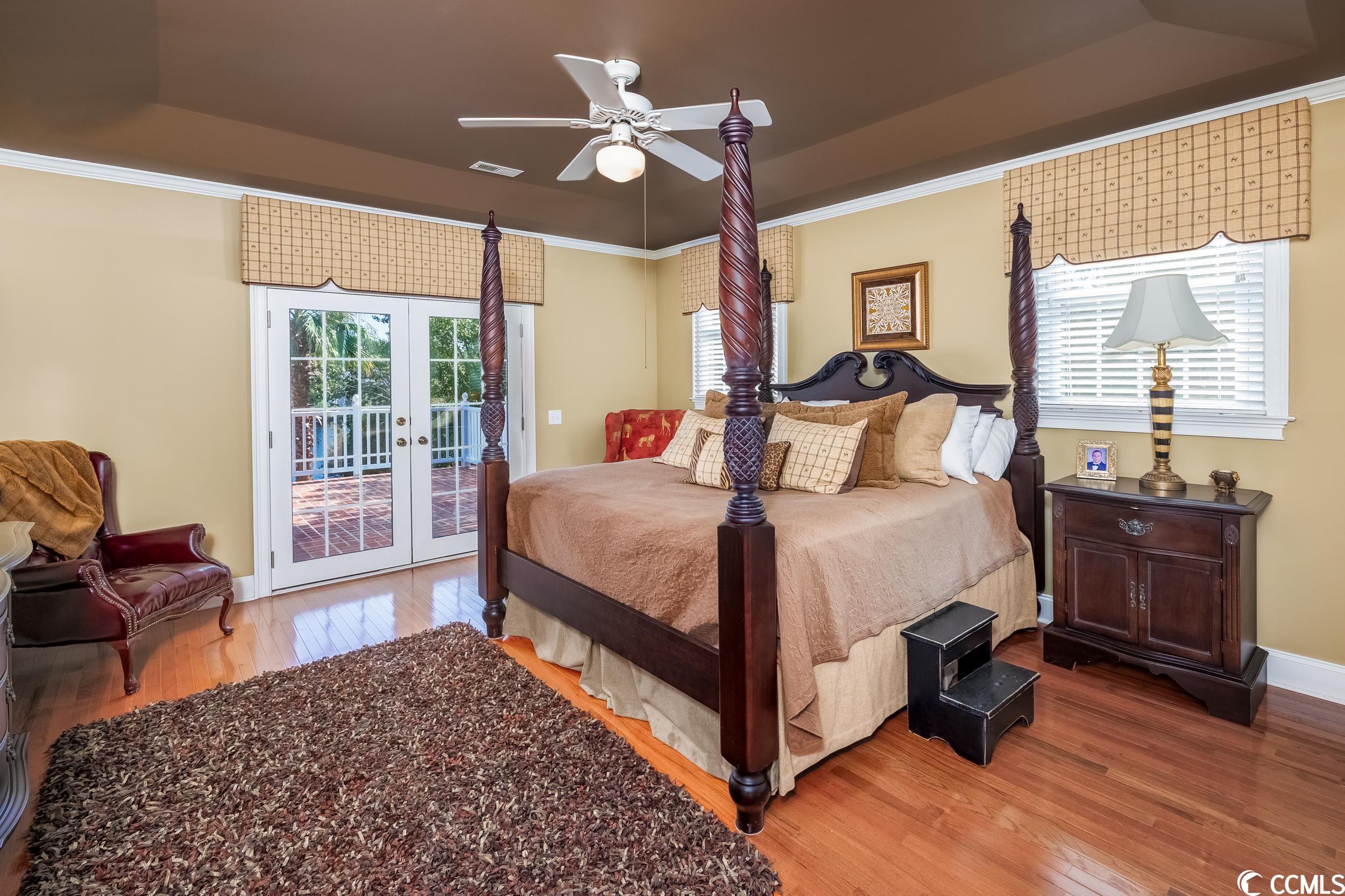 Gorgeous 4 BEDROOM/ 4 BATH All brick 3 story home nestled on over a half-acre (.56 acre) manicured lot directly on the Intracoastal Waterway. Walk up to this 3-story brick beauty and be greeted by a large covered front porch featuring beautiful brick flooring and 6 tasteful columns to accent the home and its southern charm. Enter an expansive tiled foyer and den area which opens directly into a lovely family room boasting two decorative columns, exquisite oak hardwood floors and awesome waterway views. When you enter immediately feel the wow of the light, bright, openness with soaring ceilings and wainscot. Attention to detail is throughout this estate type coastal home. Family room has French doors leading to huge brick deck overlooking the intracoastal, large saltwater pool, covered outdoor kitchen, pier leading to a covered gazebo directly over the waterway, and a large spacious back yard. On one side of brick deck is a large brick floored screen porch and on the other side are French doors leading to a phenomenal brick floored Carolina Room. So many wonderful gathering places for your family and friends and this home is an entertainers dream. The kitchen and dining area are open to the family room. Kitchen is complete with solid surface counter tops, stainless-steel appliances including a French door refrigerator/freezer, range, dishwasher, microwave, trash compactor and breakfast bar. The kitchen offers tons of counter space, cabinets, and custom wine rack.. Right off the kitchen find a large utility room complete with front load washer and dryer, large sink, and cabinets for storage. Master bedroom is on main level and boast hardwood floors, tray ceiling, tremendously large walk-in closet, French doors leading to an awesome brick floored screened porch with spectacular views. Master bath is huge and features tiled floors, 2 separate sink areas with plenty of storage, large jacuzzi tub and walk-in shower. A second bedroom is located on main level with hardwood floors, tray ceiling, walk-in closet and full tiled bath with tub/shower and linen closet. Venture up the beautiful stairwell, accented by hardwood steps and wainscot. Detail in this home is superb. Upstairs youll find 2 additional huge master suites, each complete with hardwood floors, tray ceilings, large closets, full tiled baths, tub/showers, linen closets, and each has another large, lovely room with hardwood floors perfect for a den, office, study, or an additional sleeping area. Did I mention BOTH bedrooms also have French doors leading to huge brick floored decks providing owners with intracoastal views to be envied by all. This home is currently being marketed as a 4-bedroom home, but with the flex room off each upstairs bedroom these rooms could easily be adapted as 2 additional bedrooms. If thats not enough, venture to the third level on the lovely spiral stairs and find a huge bonus area, perfect for a bonus/recreational room, or guest area. This home, amenities, and views are phenomenal and will please even the most discerning buyer. The home also offers two separate driveways to welcome all your guests, family, friends.. plenty of parking for all. See it youll want to call this Southern Coastal beauty yours.