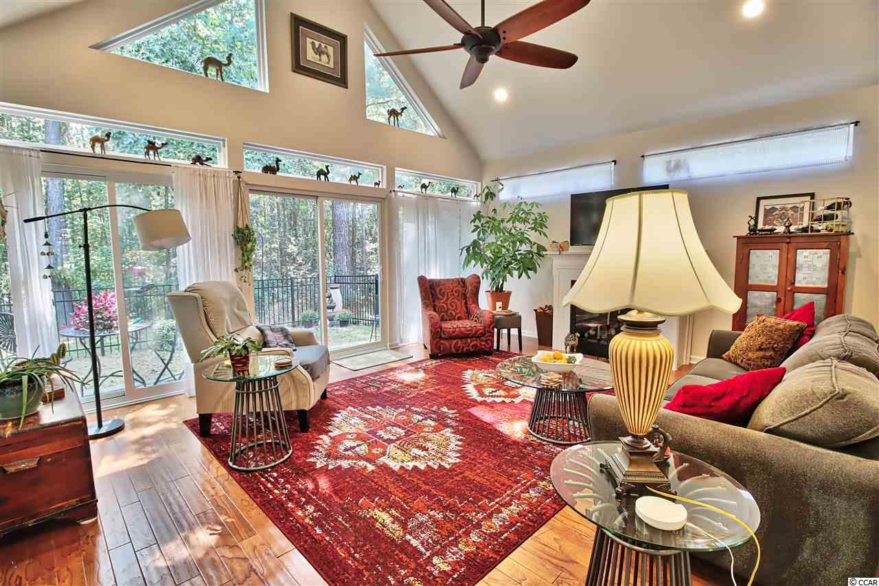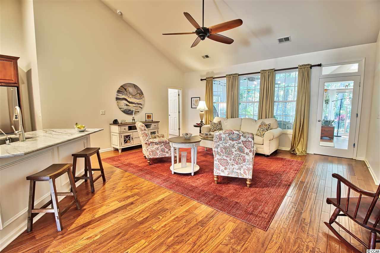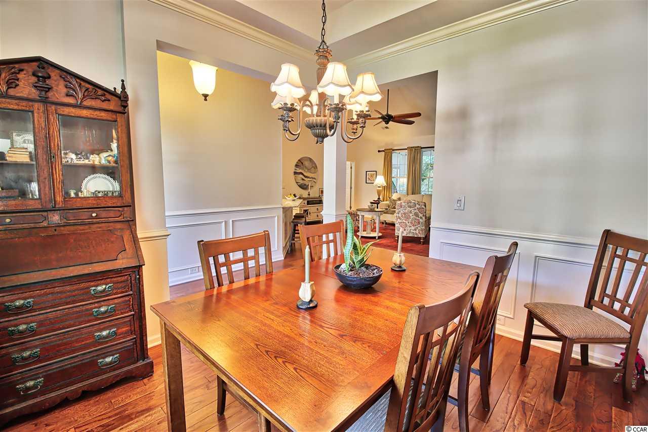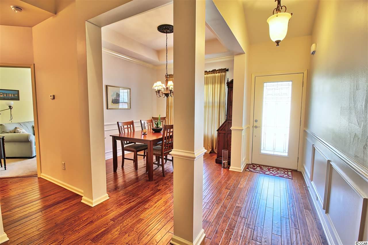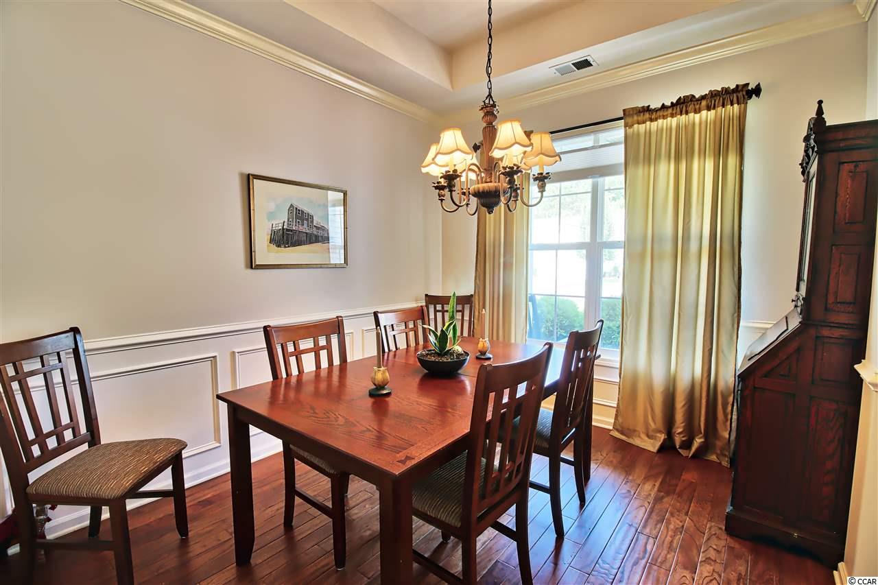 Absolutely gorgeous home in Myrtle Trace Grande, a 55+ community. This is the Sullivan floor plan; home has been meticulously cared for & includes many upgrades. Beautiful hard wood flooring extends throughout the living areas. The formal dining room greets you as you enter and features a trey ceiling, crown, picture frame and chair rail molding as well as an elegant chandelier. The kitchen is tucked around the corner, yet open to the living area with breakfast bar under a soaring vaulted ceiling and centered by three large windows which flood the space with light. The kitchen features an abundance of cabinetry with pull outs in base cabinets, granite counters, traditional pantry & convenient butler's pantry. The huge Carolina room is has a vaulted ceiling, floor-to-ceiling windows plus transoms and a cozy fireplace. There's also a large screened porch and a paver patio to enjoy your private wooded backyard view in every season! The master bedroom is opposite the guest rooms, for privacy, and features another vaulted ceiling, and a large master bath with an oversized walk-in shower, double sinks and a huge walk-in closet. Irrigation system front and back yards. Conveniently located just a short drive to the beach, airport, shopping, restaurants and attractions. Close to Conway Medical Center, historic downtown Conway & so much more!