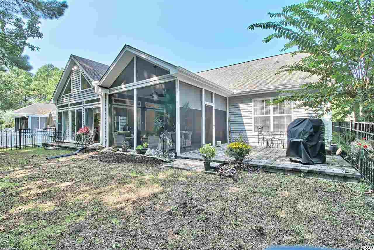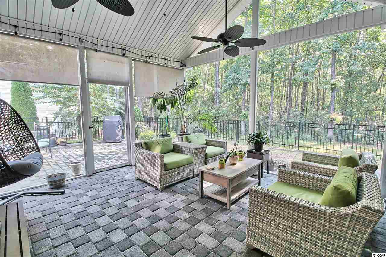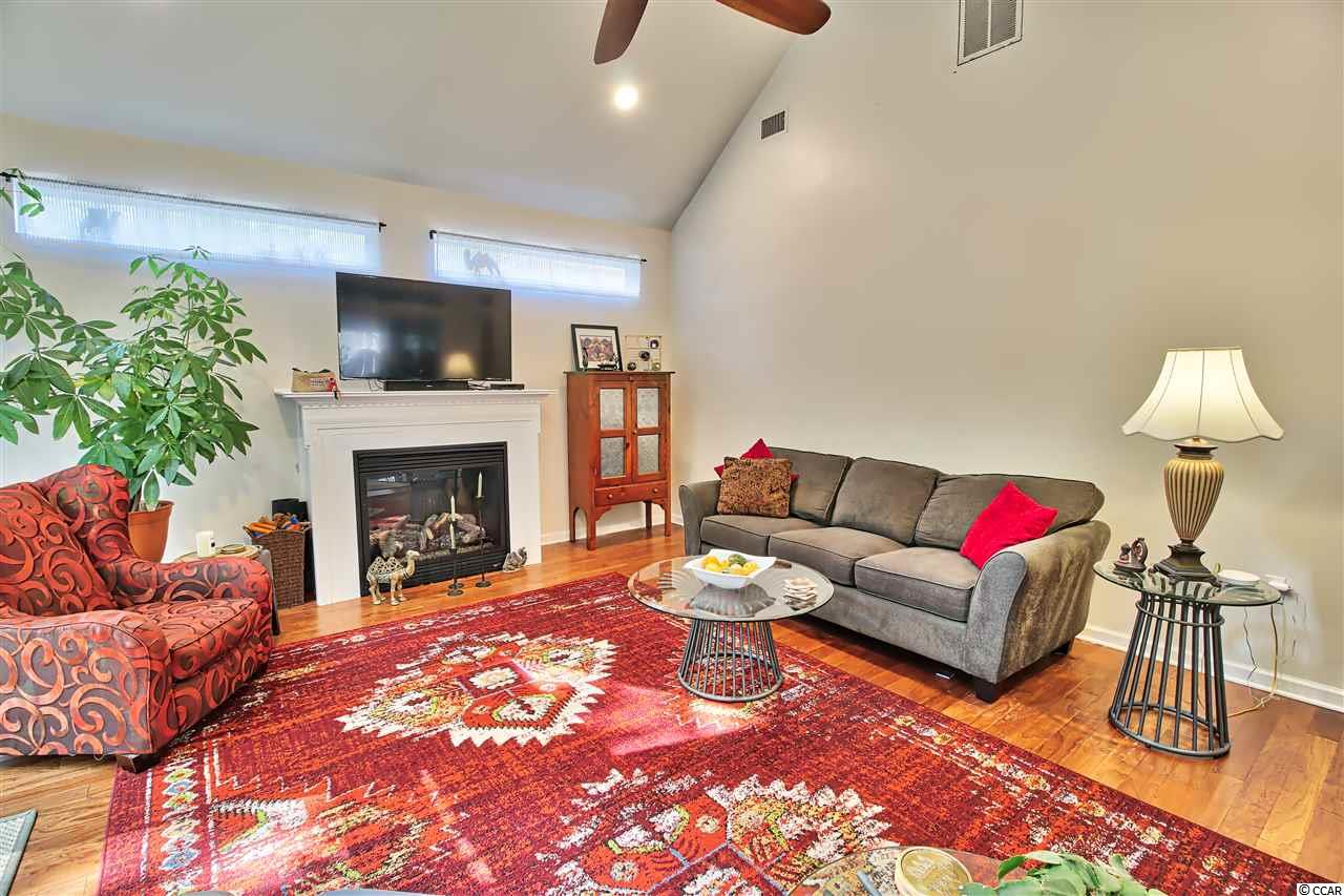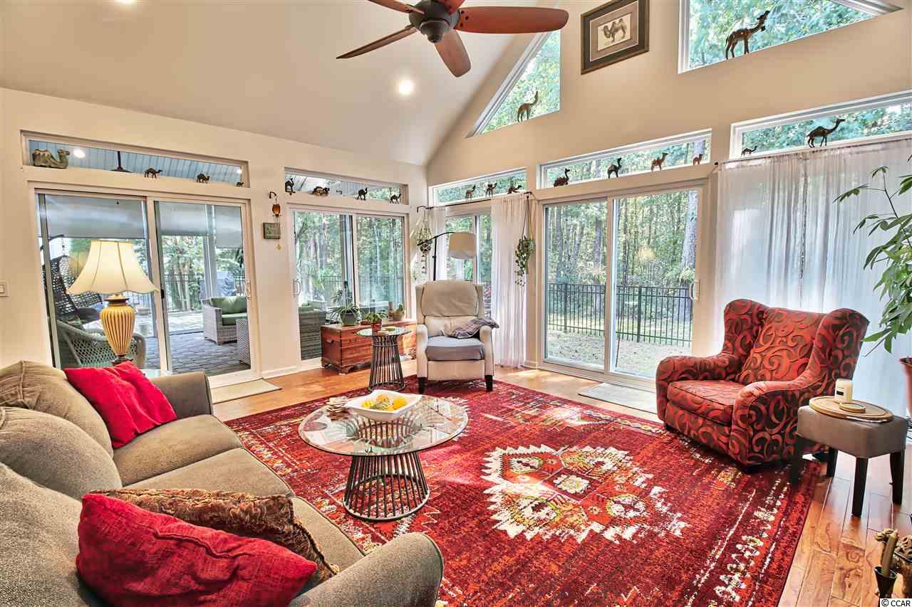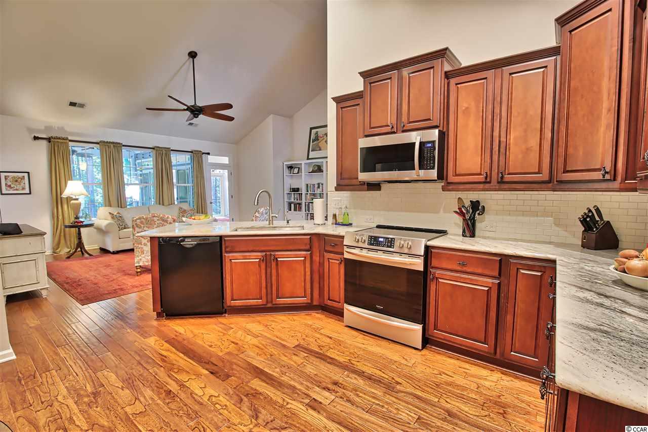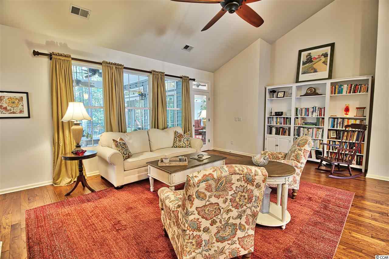 Absolutely gorgeous home in Myrtle Trace Grande, a 55+ community. This is the Sullivan floor plan; home has been meticulously cared for & includes many upgrades. Beautiful hard wood flooring extends throughout the living areas. The formal dining room greets you as you enter and features a trey ceiling, crown, picture frame and chair rail molding as well as an elegant chandelier. The kitchen is tucked around the corner, yet open to the living area with breakfast bar under a soaring vaulted ceiling and centered by three large windows which flood the space with light. The kitchen features an abundance of cabinetry with pull outs in base cabinets, granite counters, traditional pantry & convenient butler's pantry. The huge Carolina room is has a vaulted ceiling, floor-to-ceiling windows plus transoms and a cozy fireplace. There's also a large screened porch and a paver patio to enjoy your private wooded backyard view in every season! The master bedroom is opposite the guest rooms, for privacy, and features another vaulted ceiling, and a large master bath with an oversized walk-in shower, double sinks and a huge walk-in closet. Irrigation system front and back yards. Conveniently located just a short drive to the beach, airport, shopping, restaurants and attractions. Close to Conway Medical Center, historic downtown Conway & so much more!