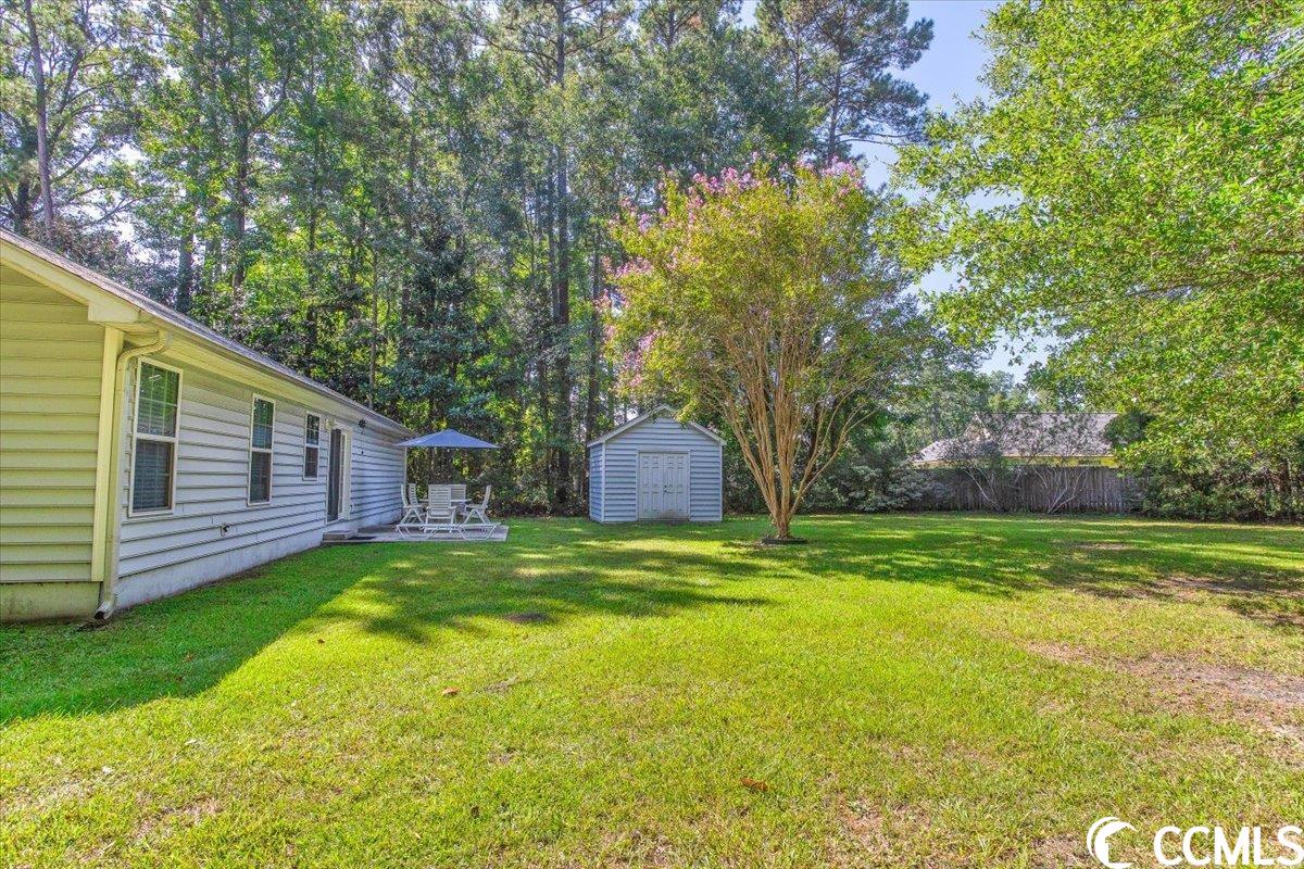 This home is a MUST SEE!! This 4 bedroom 2.5 bathroom home situated on .38 acres is a custom built home. As you walk into this home it welcomes you with a spacious foyer. Experience spacious living as this home features a split floor plan, while experiencing an open kitchen, dining room, living room, and breakfast bar. Beautiful kitchen with island in the middle, granite countertops, white cabinets, tile floors, and recessed lighting above. Breakfast nook off the side of the kitchen. In the living room is a beautiful gas fireplace with tile surrounding that brings so much coziness as you sit and relax. There are custom shelves on each side of the fireplace that are built in. Nice size master bedroom and bathroom. Master bathroom has double vanity sinks, a vanity area to sit while you are getting ready, a jetted tub, a walk-in shower, and a large walk-in closet. Tile floors in foyer, kitchen, bathroom and laundry room. Large laundry room with generous cabinet space and countertops, with attached half bath. This home is nestled on a generous lot, offering space perfect for pool, play area, gardening and relaxation. Backyard offers many possibilities. In the backyard is a detached shed for storage. Enjoy the best of Coastal Living, close to restaurants, shopping, Market Commons, and beautiful beaches. Your New Home Sweet Home Awaits!!