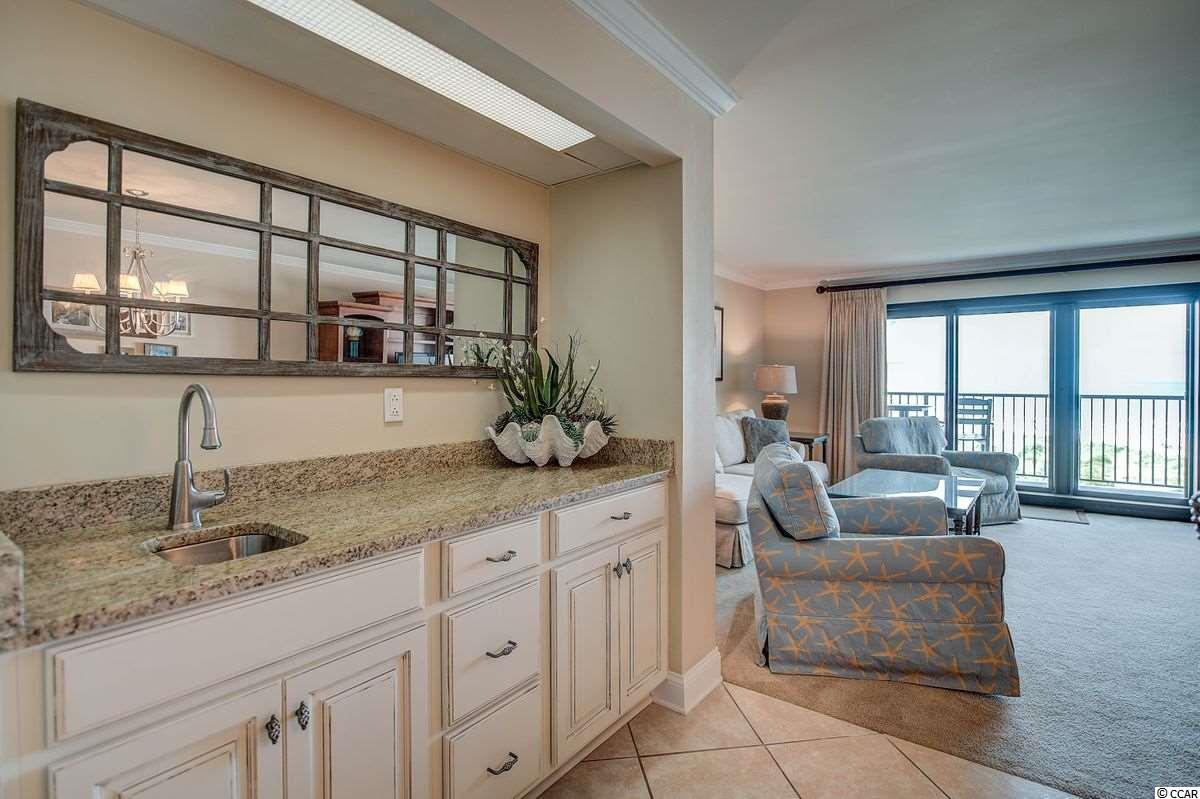 Remodeled and redecorated .... upgraded and up to the minute! Isn't that what you've been looking for? This 3 BR, 2 BA oceanfront, 4th floor, end unit fits the bill. The interior was completely modernized with smooth ceilings, crown molding and an open kitchen with custom cabinetry, a large entertaining height breakfast bar and stainless steel appliance package. Great attention to detail in the baths with tiled showers in both and a garden tub in the upscale master bath. In addition to a spa-like bath, the owners suite is complemented by natural light and a gorgeous view! The furnishings throughout feature on-trend natural woven pieces and make for an inviting, relaxed coastal feel. Shipyard Village at Litchfield by the Sea is a sought-after and superbly maintained property. With it's own pool and wide uncrowded beaches, it's sure to be your family's favorite forever vacation spot. Litchfield by The Sea is a private, gated oceanfront community nicely nestled on Litchfield Beach that is just a short distance from Myrtle Beach to the north and Charleston to the south. It's an amenity-rich resort with walking paths, tennis courts,stocked ponds throughout and an oceanfront clubhouse for owners' use that is perfect for a second home or year round living. Let's see if it's right for you!