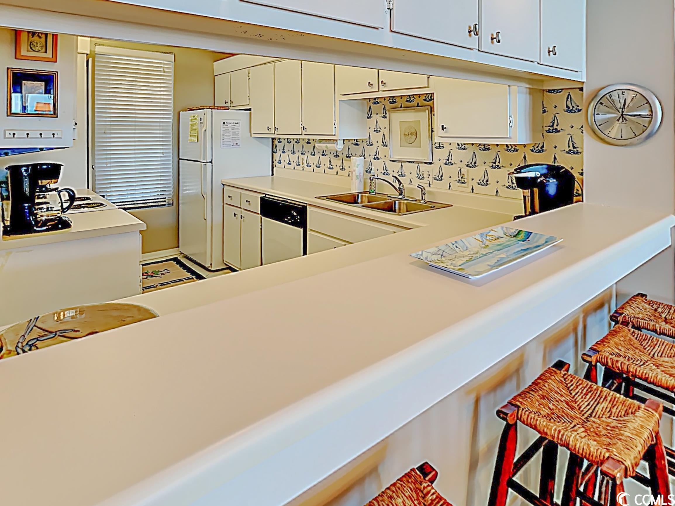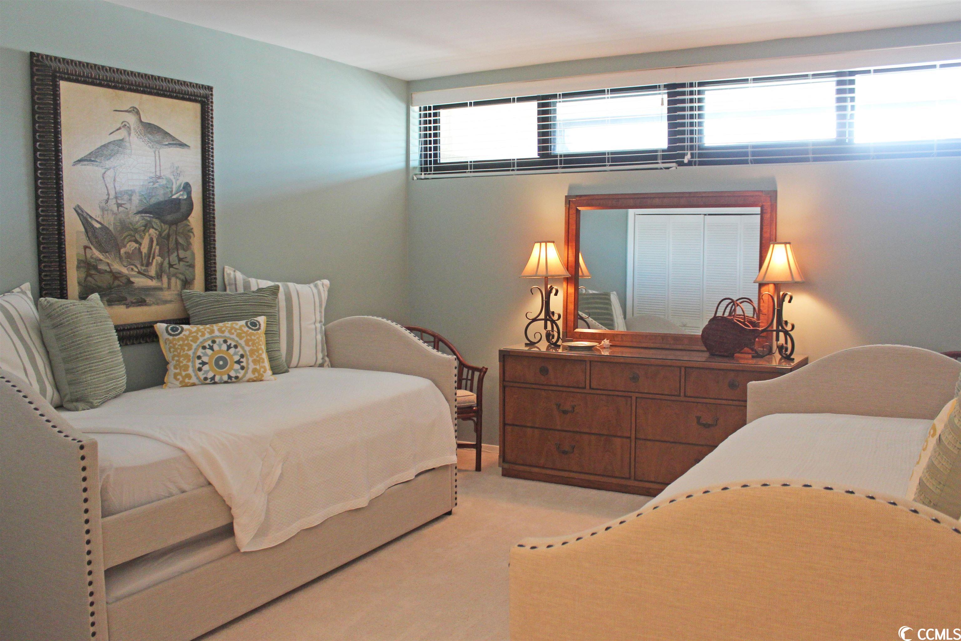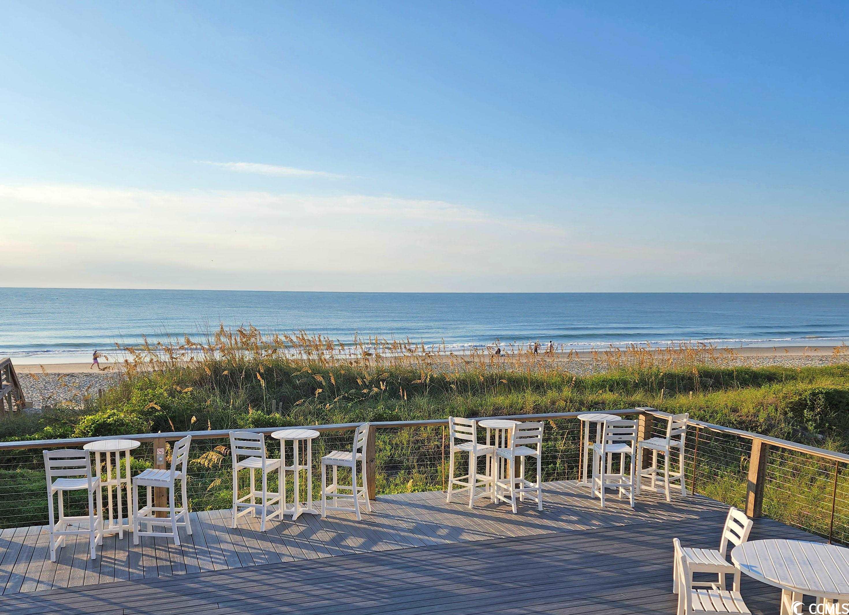 Shipyard Village A56 has spectacular views of the beach and ocean. This top floor, corner unit, in Litchfield by the Sea features 3 bedrooms, 2 bathrooms, with private vanities in each guest room. The living room features a vaulted ceiling and a wall of windows, sliding door and transom windows above. The sliding door opens to a covered balcony overlooking the beach and view of the pool. The kitchen has a breakfast bar and the dining area has a wet bar. The primary bedroom features floor to ceiling windows with spectacular ocean view. The primary bath has a garden tub and a separate walk-in shower. Two guest bedrooms have private vanities with a sink and share a hall bathroom. There is a washer/dryer in the hallway. Special features: Reserved, covered parking space (not all Shipyard condos include a covered space under the building) and a storage closet downstairs. There are two elevators in the building, open stairs at the end of the breezeways, and convenient trash chutes on every floor. Shipyard Village is an oceanfront community located south of all other condos in Litchfield by the Sea. There is a large pool complex with pool, kiddie pool, spa, and cabana with bathrooms. This beautifully landscaped community offers multiple elevators in each building, luggage carts, reserved parking, boardwalk access to the beach, and grill and picnic areas. Building B has a ramped boardwalk to the beach for easy access. Litchfield by the Sea is the premier resort in Pawleys Island, with over 4,000 acres of private oceanside property. The gated community offers a mix of vacation homes, condominiums, and villas spread amongst saltwater lakes, tidal creeks, marsh, and the pristine beach between Litchfield and North Litchfield. All communities have access to unsurpassed resort amenities, including private boardwalk access to the beach, tennis and pickleball courts, oceanfront clubhouse with sundeck, cabanas and wheelchair ramp, fishing lake with pierhead, a marsh overlook with floating dock, miles of walking/jogging/bike paths, and 24 hour gated entrance. This resort is convenient to shopping, restaurants, golf courses and grocery stores.