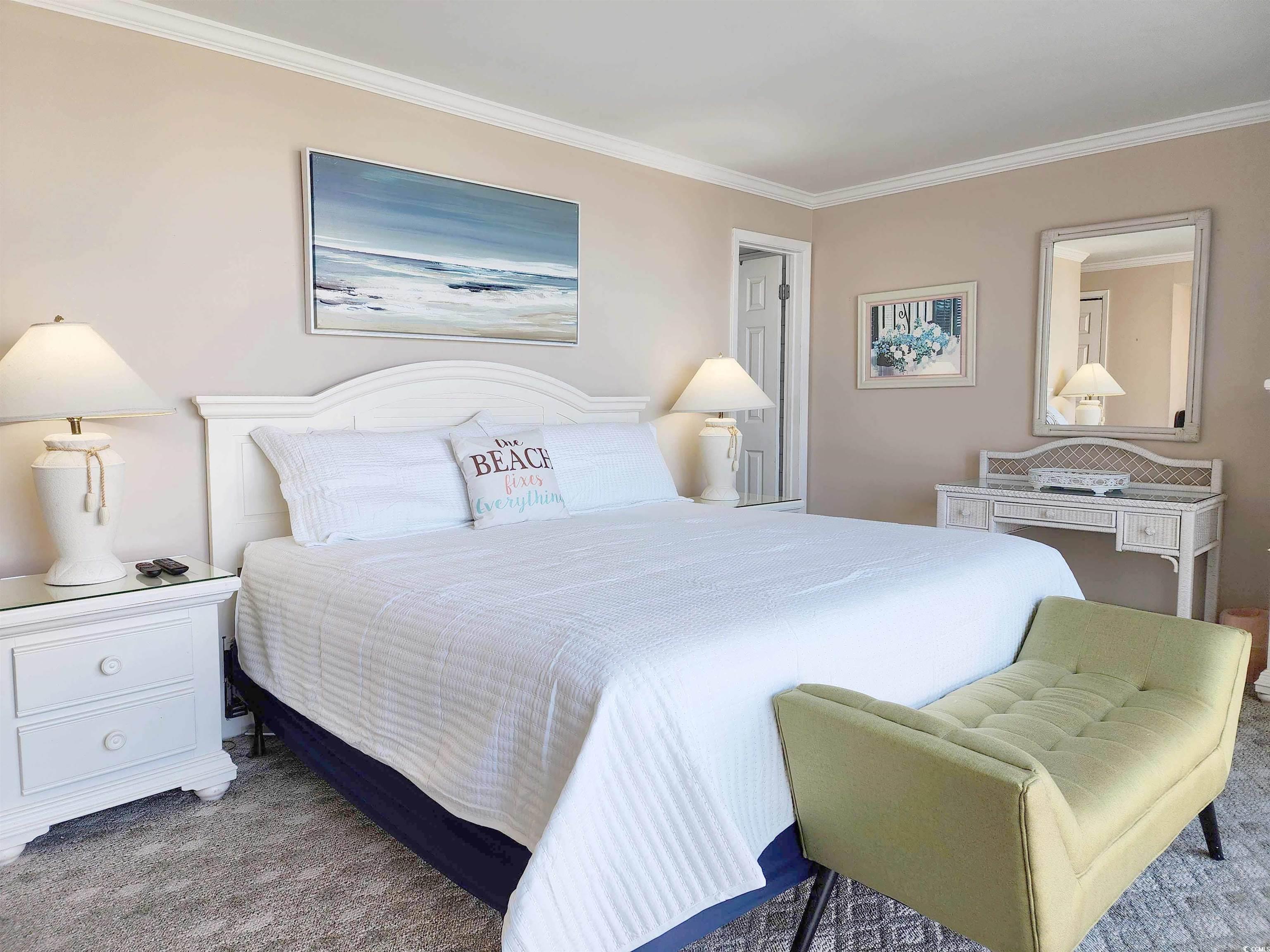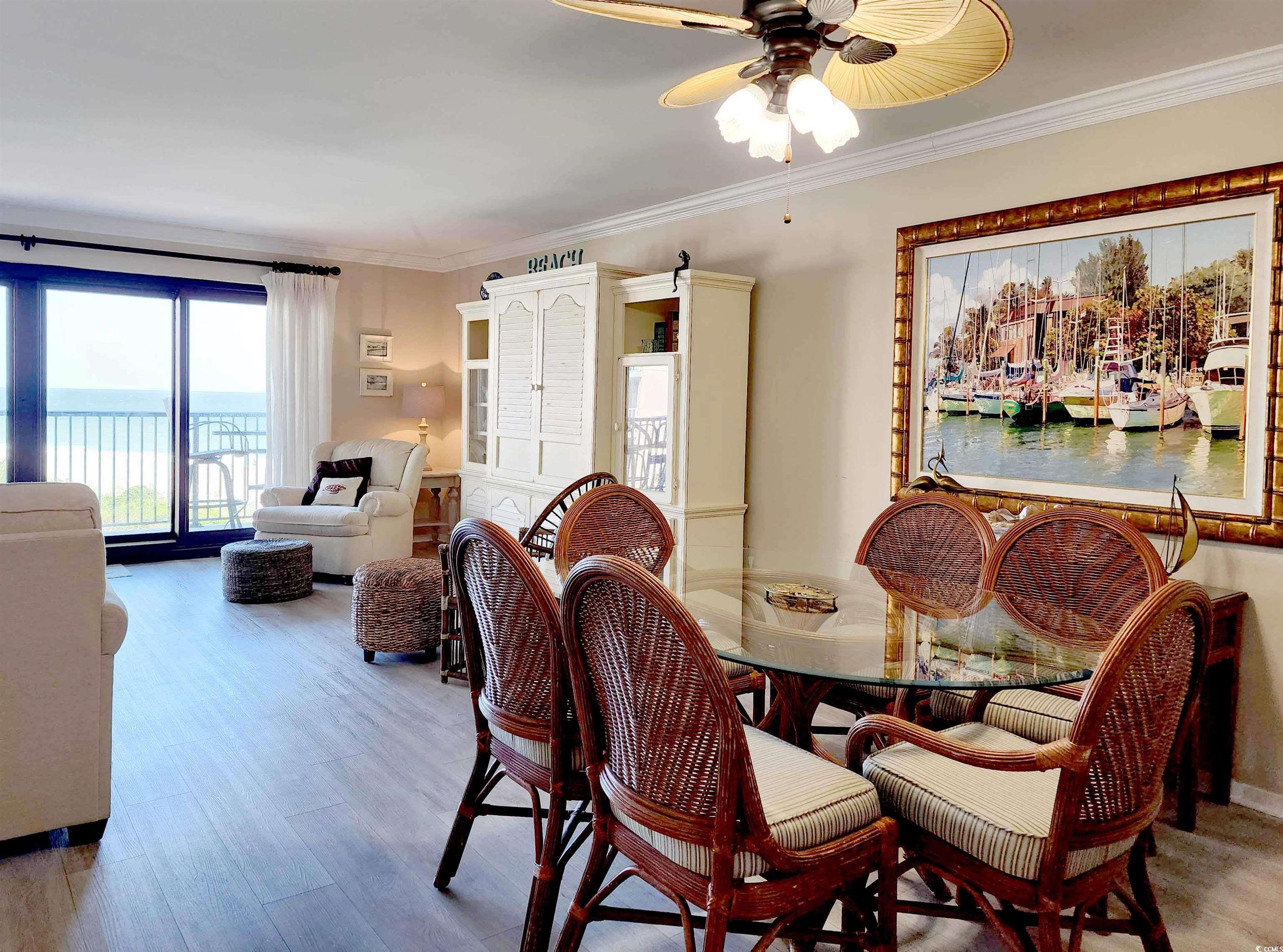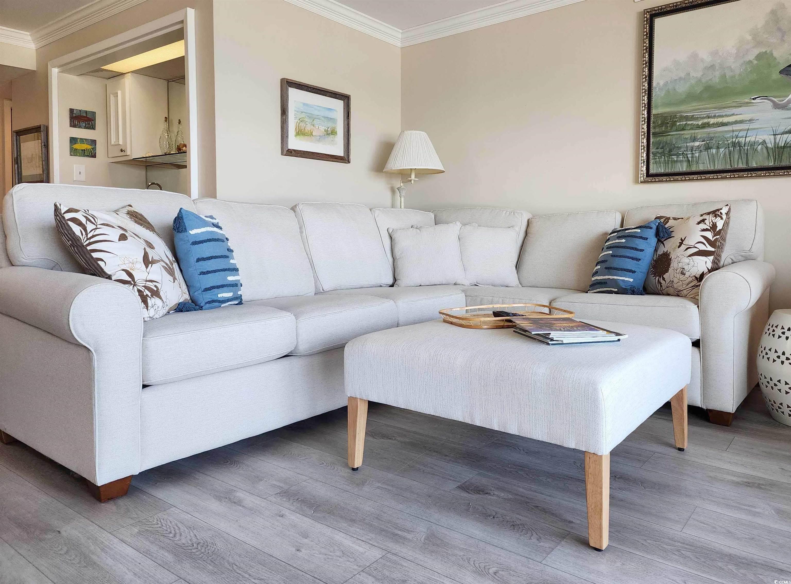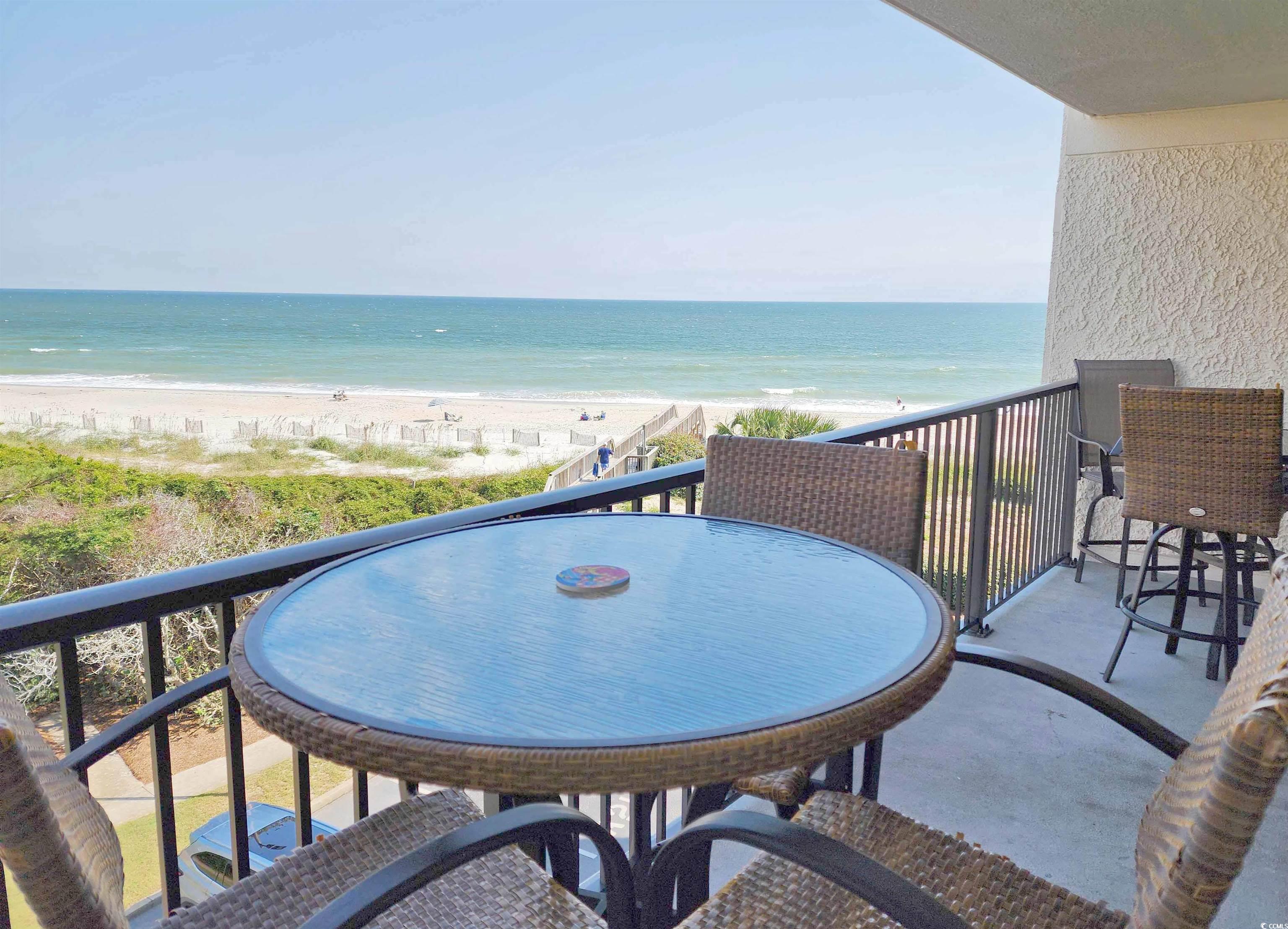 !!!WHAT A SPECTACULAR & BREATHTAKING VIEW!!! This 3 bedroom 2 bath property boasts one of the best views in Litchfield By The Sea! Looking from the floor-to-ceiling wall-of-windows and sliding glass doors (hurricane rated) that open to the covered balcony, one can see on a clear day 5 miles north with views of Litchfield By The Sea (LBTS), North Litchfield and Huntington Beach State Park beaches all the way to the Murrells Inlet jetties. The primary bedroom has a king bed (new mattress replaced 1 year ago), beach and ocean views also through a floor-to-ceiling wall-of-windows and a completely gutted and fully updated bathroom with shiplap walls, tile floor and walk-in shower, new vanity, linen cubbies, toilet and fixtures. The multi-colored ceiling fan will even play your favorite music by Bluetooth connection. Both guest rooms feature all new furniture (Jan 2025), private vanities with a shared, fully gutted and updated bathroom with new vanity, tub/shower, tile floors and partially tiled walls, toilet, fixtures, and of-course, equipped with the same ceiling fan as the primary bath! All carpet in the bedrooms was replaced in 2020. The laminate flooring throughout the rest of the condo was done in the winter of 2023. The kitchen has brand-new stainless-steel appliances (Jan 2025), granite counter tops and breakfast bar. A wet bar just off the foyer is a perfect stop when entering in to living area. Now it's time to decide which comfortable seat to plop into to watch the beach combers, diving shore birds, and dolphins cruising the beach. The ""L"" sofa and ottoman, large chair, end table and lamps are also new in Jan 2025. A brand new front door was installed November of 2024. A new HVAC was installed in August 2024 and a new washer/dryer in Jan 2025. There is a reserved parking space at the base of the beach access, storage closet downstairs, two elevators, luggage carts, open stairs and trash chutes on each floor. The oceanfront pool complex includes the largest swimming pool in LBTS with hot tub, separate kiddie pool, cabana, bathrooms, private beach access, grilling and picnic areas. LBTS amenities include beach clubhouse with giant deck, tennis/pickleball courts, crabbing dock, fishing lake, jogging/biking trails. This Shipyard Village is bar none when it comes to amenities! This property is perfectly suited for investors looking for a great rental property, second home buyers or even as a primary residence. Only 75 miles north of historic Charleston (CHS), and 20 miles south of Myrtle Beach International Airport (MYR). With THE golf capital of the world at your fingertips, this location is just minutes from fine dining, shopping, 9 golf courses, grocery stores, banks, medical facilities, Brookgreen Gardens and Huntington Beach State Park. This condo is sure to sell quickly so make your appointment today!