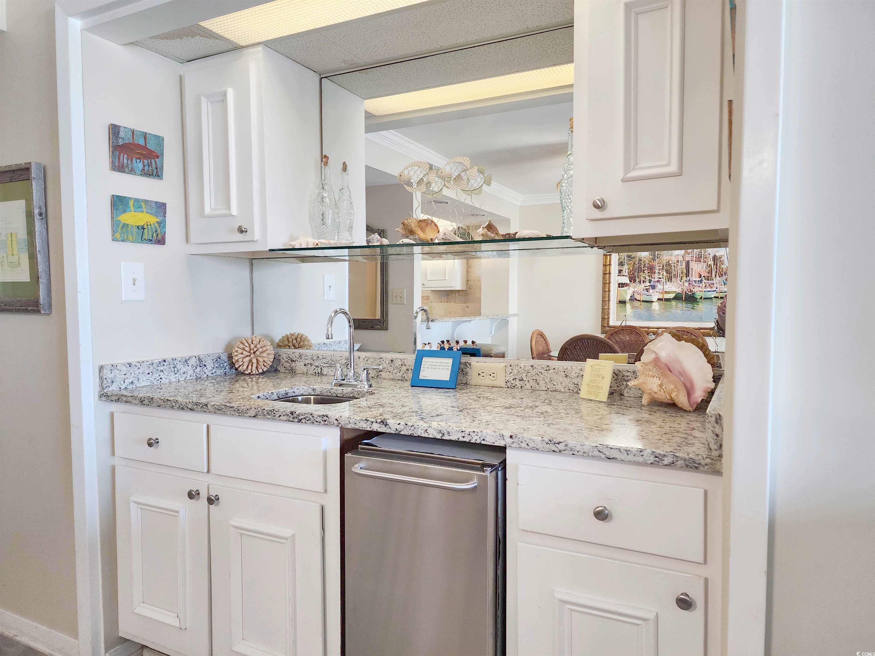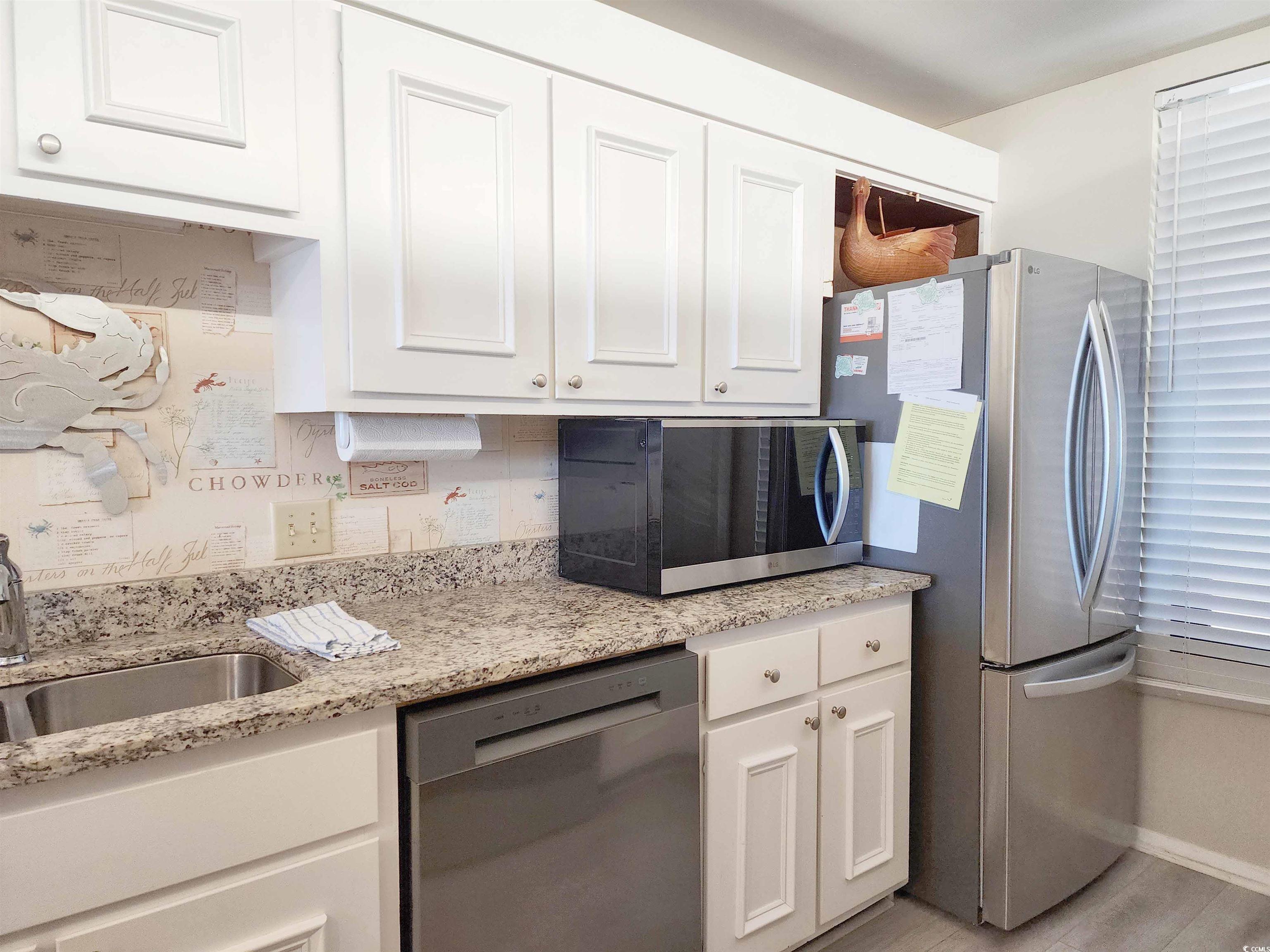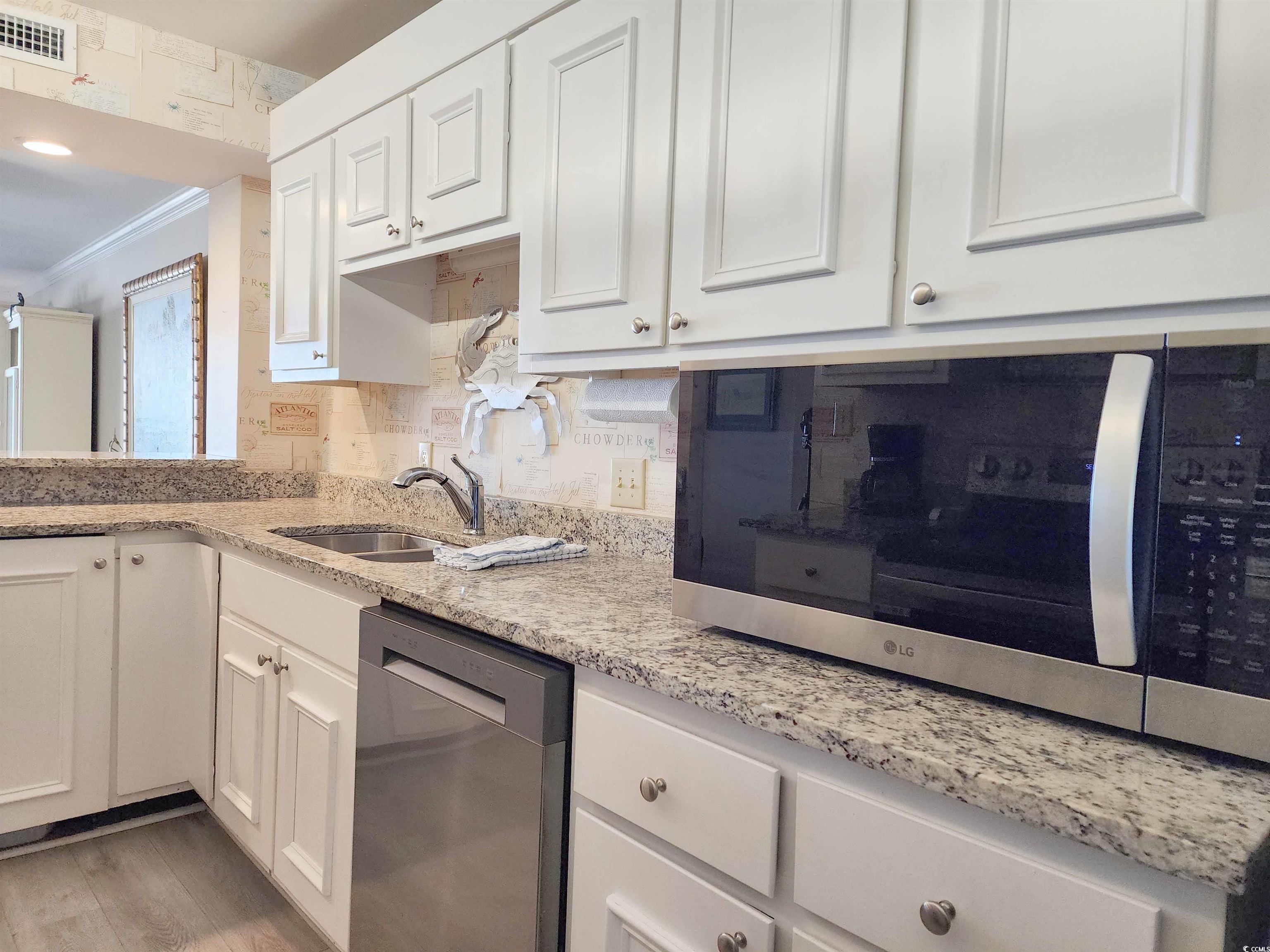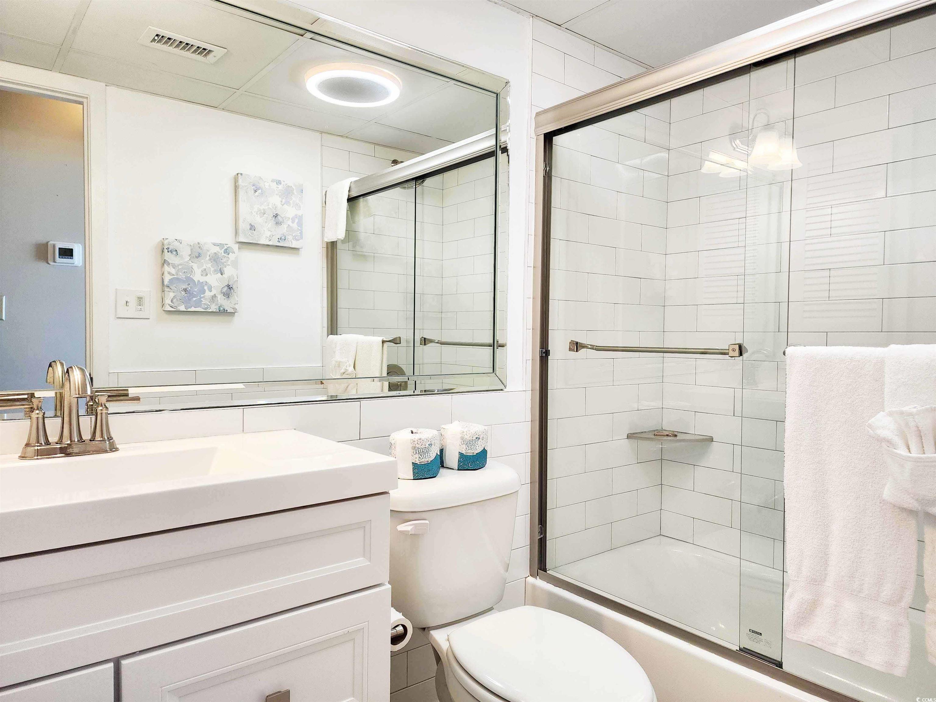 !!!WHAT A SPECTACULAR & BREATHTAKING VIEW!!! This 3 bedroom 2 bath property boasts one of the best views in Litchfield By The Sea! Looking from the floor-to-ceiling wall-of-windows and sliding glass doors (hurricane rated) that open to the covered balcony, one can see on a clear day 5 miles north with views of Litchfield By The Sea (LBTS), North Litchfield and Huntington Beach State Park beaches all the way to the Murrells Inlet jetties. The primary bedroom has a king bed (new mattress replaced 1 year ago), beach and ocean views also through a floor-to-ceiling wall-of-windows and a completely gutted and fully updated bathroom with shiplap walls, tile floor and walk-in shower, new vanity, linen cubbies, toilet and fixtures. The multi-colored ceiling fan will even play your favorite music by Bluetooth connection. Both guest rooms feature all new furniture (Jan 2025), private vanities with a shared, fully gutted and updated bathroom with new vanity, tub/shower, tile floors and partially tiled walls, toilet, fixtures, and of-course, equipped with the same ceiling fan as the primary bath! All carpet in the bedrooms was replaced in 2020. The laminate flooring throughout the rest of the condo was done in the winter of 2023. The kitchen has brand-new stainless-steel appliances (Jan 2025), granite counter tops and breakfast bar. A wet bar just off the foyer is a perfect stop when entering in to living area. Now it's time to decide which comfortable seat to plop into to watch the beach combers, diving shore birds, and dolphins cruising the beach. The ""L"" sofa and ottoman, large chair, end table and lamps are also new in Jan 2025. A brand new front door was installed November of 2024. A new HVAC was installed in August 2024 and a new washer/dryer in Jan 2025. There is a reserved parking space at the base of the beach access, storage closet downstairs, two elevators, luggage carts, open stairs and trash chutes on each floor. The oceanfront pool complex includes the largest swimming pool in LBTS with hot tub, separate kiddie pool, cabana, bathrooms, private beach access, grilling and picnic areas. LBTS amenities include beach clubhouse with giant deck, tennis/pickleball courts, crabbing dock, fishing lake, jogging/biking trails. This Shipyard Village is bar none when it comes to amenities! This property is perfectly suited for investors looking for a great rental property, second home buyers or even as a primary residence. Only 75 miles north of historic Charleston (CHS), and 20 miles south of Myrtle Beach International Airport (MYR). With THE golf capital of the world at your fingertips, this location is just minutes from fine dining, shopping, 9 golf courses, grocery stores, banks, medical facilities, Brookgreen Gardens and Huntington Beach State Park. This condo is sure to sell quickly so make your appointment today!