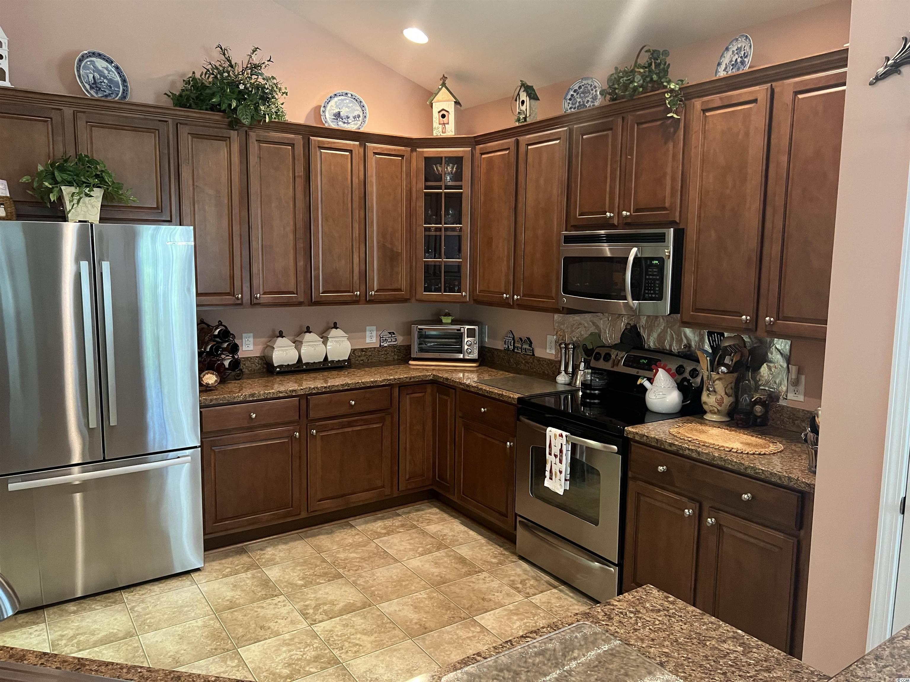 Welcome to this ""Shows Like a Model"" 3 Bed, 2 Bath 2 Car Garage Home in the Well Sought after 55+ Community of Myrtle Trace Grande. As you walk through the front door you will feel at home immediately. This Open Concept home is absolute beautiful featuring Professional Paining, Vaulted Ceilings, Fireplace, and so much more. The Large Master Bedroom is perfect for a King Size Bed with a Tray Ceiling and large Walk in Closet. The Master Bath has dual sinks and a Walk In Shower. A Big Kitchen offers great space for cooking for the family or guests. The lot is amazing with Views of Woods behind and in front of the home. The Backyard is fenced with a 4 foot rod iron fence good for pets to run around. Enjoy Peaceful Evenings on the Large Screened Porched relaxing with your favorite beverage or entertaining guests. Enjoy the hot summer days splashing in the Community Pool. Come see this Wonderful home today