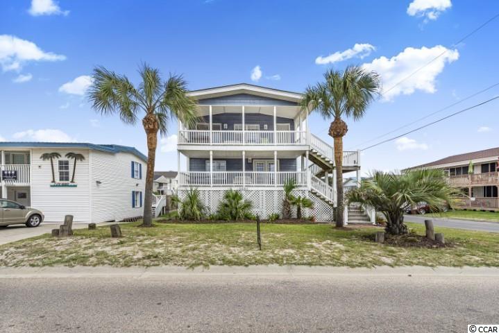 Don't miss this incredible opportunity to own this second row, 7 bedroom 4 bathroom beach house in the heart of North Myrtle Beach, just steps to the ocean and walking distance to Cherry Grove Pier. The first floor includes a heated/cooled enclosed room that could easily be converted into an additional bedroom, living area, you name it! It is currently only used for storage but has endless potential. The second (main) floor features the main living areas; the kitchen, equipped with all appliances, updated flooring, and well coordinated beach themed furnishings throughout, 4 bedrooms, and 2 full baths! The third floor also includes a kitchen, living room, 3 bedrooms, 2 full baths, and its own washer/dryer. Enjoy afternoons relaxing on either of your TWO front porches, both with a view of the ocean! With no HOA and plenty of room for parking, this home would make an incredible investment opportunity, forever home, or second home on the beach. Perfectly situated close to all of the Grand Strand's finest dining, shopping, golf, and entertainment attractions. You won't want to miss this! Schedule your showing today!
