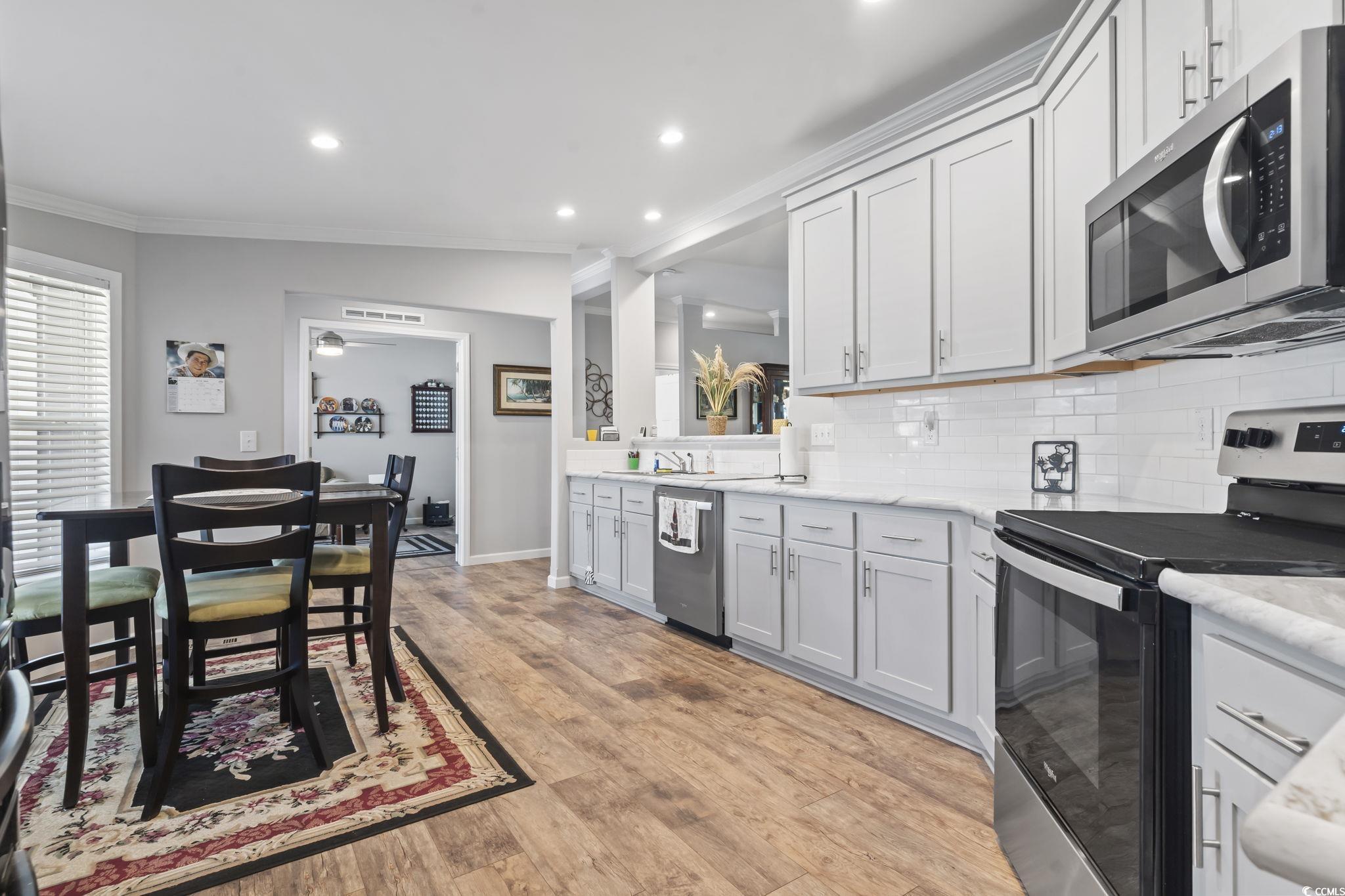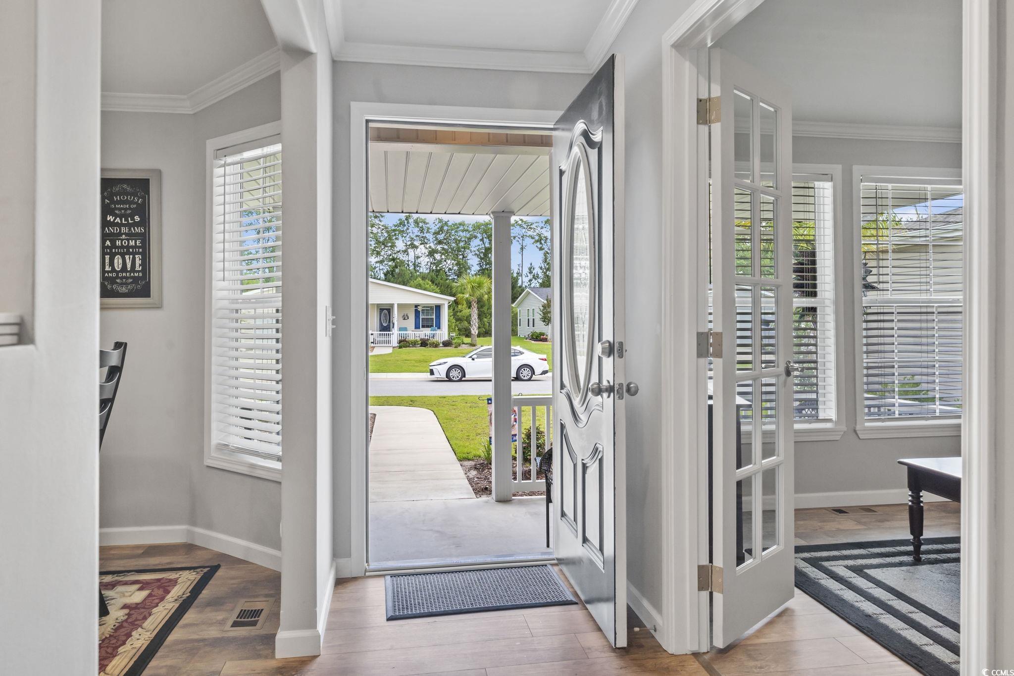 A must-see! This beautiful home sits on a quaint cul-de-sac with a serene tree-lined back yard. Upon arriving at the home, you will notice the oversized porch with 2 ceiling fans. You will appreciate this extra outdoor space to spread out and entertain guests if you choose. When entering the front door, the third bedroom of this popular Troon model sits to the left of the entry. This room has French Doors and may be used as a bedroom, office, den, craft room or whatever you choose to make it! The open concept floorplan includes the oversized kitchen with breakfast area, dining and living room combo with a wall of windows to enjoy the backyard view. This home features three bedrooms, including one of the largest primary bedrooms you will find! This spacious room includes a ceiling fan, 2 walk-in closets, ensuite with double vanity, make-up counter and extra-large walk-in shower. An added feature to the primary bedroom is the extended sitting room where you may relax and enjoy your morning coffee or tea and favorite book. The second full bath includes a tub/shower combination. The three bedrooms, living room and front porch all have ceiling fans, and the laundry area sits just before the entry to the extended 2-car garage. This home has a large enclosed screened in porch with trex flooring. And an extra outdoor patio for your outdoor entertaining and enjoyment; you can relax in the sunshine or the shade depending on the day! This home is located in the highly sought-after Lakeside Crossing, a premier gated community with top-of-the-line amenities. Amenities include an indoor pool and hot tub, outdoor pool, fitness room, pub area, craft room, ballroom, dance/yoga room, tennis and pickleball courts, pool tables, and much more including a full-time lifestyle director that creates a calendar packed with fun things to do. You can choose to be as active as you like or decide to relax and enjoy the peace and quiet of your home. If you are looking for dining and shopping outside of the community, Lakeside Crossing is conveniently located off of highway 501, which offers plenty of choices for dining, shopping, medical facilities and more. And the airport, beach, downtown Conway and Myrtle Beach are only a short drive away. Come fall in love with this property today! Professional photos will be added by Tuesday, June 17th.