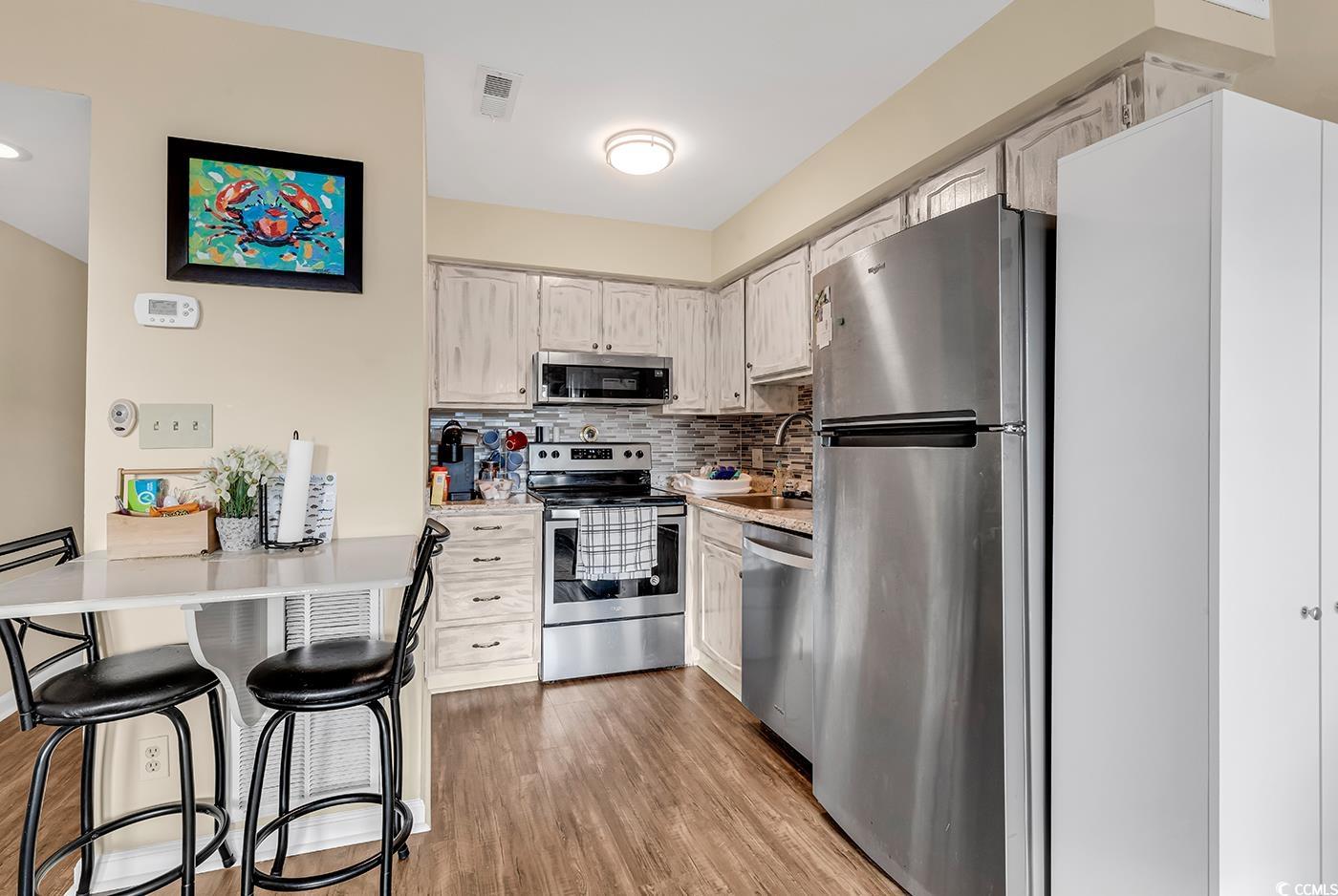 Welcome to your beachside retreat! This cozy, second-floor condo offers stunning ocean views and an unbeatable location just a few blocks from Sam's Corner and the iconic Garden City Pier. Featuring two bedrooms and one bath, this well-maintained home is perfect for weekend getaways. Not all bedrooms are conforming; contact agent for full bedroom details. Step inside to an open, bright living space with plenty of natural light and inviting coastal decor. The kitchen is efficiently designed with everything you need for beachside dining, while the living area provides a relaxed atmosphere to unwind after a day at the beach. The true highlight of this property is the balcony, where you can enjoy your morning coffee while taking in the serene views of the ocean. Just across the street from the beach, you're only moments away from the sand and surf. The community pool offers a great spot to cool off, and with the prime location near local dining, shopping, and entertainment, you'll never run out of things to do. This condo is an exceptional find in Garden City Beach. Don't miss the opportunity to make this your own slice of paradise!