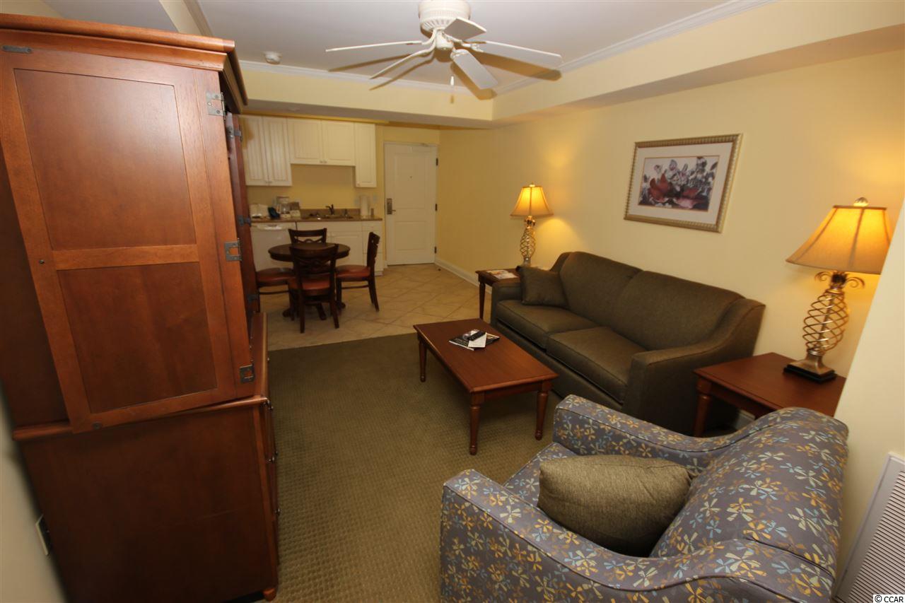Pristine Private End Unit with Balcony that welcomes Ocean Breezes while offering Privacy and Views of the Pond, Pool and Lazy River. Newly Renovated One Bedroom ~ One Bath ~ with Single Floor Living in a Low Rise Building with Elevator and Brand New HVAC Unit! The Condo offers an Open Floor Plan with Tile Flooring at Entry, Kitchen and Bath. The Bedroom provides 2 Queen Size Beds with a New Sleeper Sofa in the Main Living Area with Chair & Crown Moldings and a Decorative Smooth Tray Ceiling. The Kitchen is Fully Equipped and Offers Upgraded Granite Counter Tops. There is a Spacious, Tiled Shower in the Bath. The HOA Fees Include Electric (No Electric Bills), Water/Sewer (No W/S Bills), Internet/Cable Access, Telephone, Use/Maintenance of Pools, Hot Tub/Spa, Lazy River, Common Grounds/Building Maintenance, Common Lighting ~ along with Private, Ocean Beach Access! Walk ~ Bike ~ or Ride the Complimentary Shuttle along the Path to the Beach! For added convenience, located onsite is Websters Restaurant, Starbucks, a Spa and a Bike Rentals. The Setting is convenient to all this Beautiful Area has to offer including: Legendary Golf Courses, an Abundance of Incredible Restaurants, Unique Shops and a Large Selection of Water/Leisure Activities including Boating/Fishing in both Fresh and Saltwater ~ as well as Miles of Gorgeous Ocean Beach to Explore and Enjoy! Excellent Rental History for this Community. Motivated Seller.
