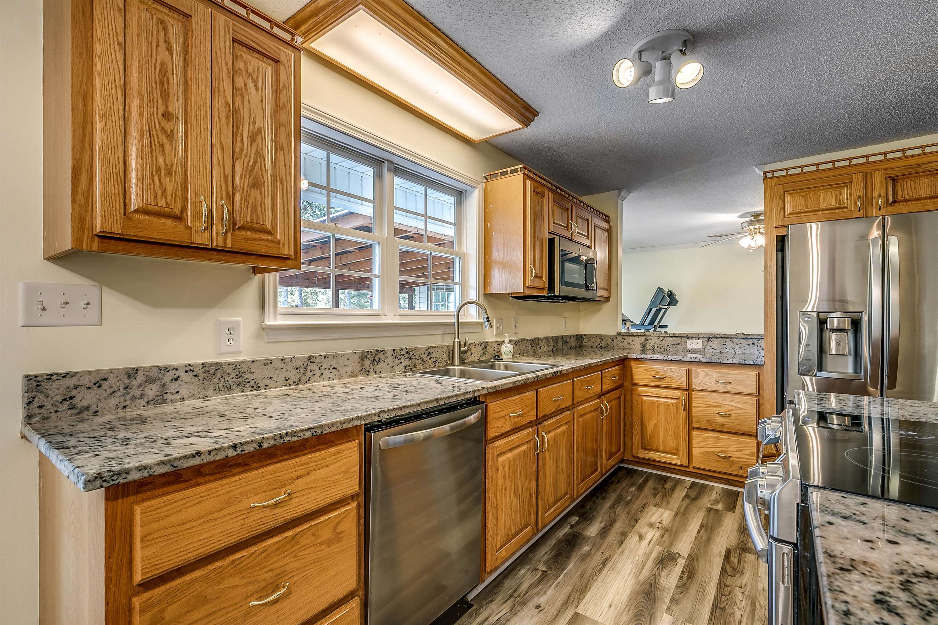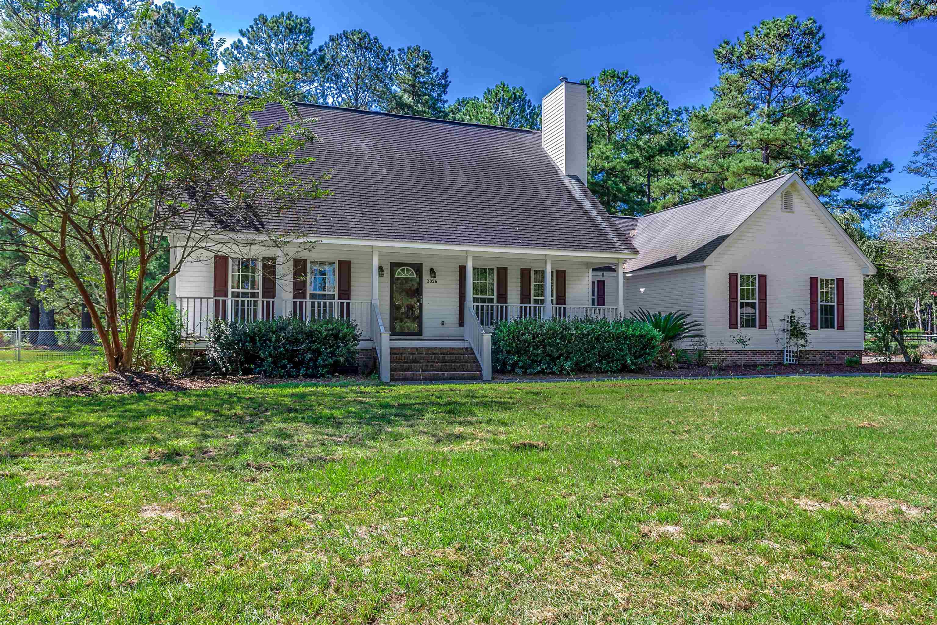 Back on the market due to no fault of the sellers. Over 2 acres and no HOA! This two story low country home is in the country, but close to Hwy 22 for easy access into Myrtle Beach. The property has a huge fenced-in back yard, with a fenced dog kennel as well. Three of the bedrooms, including the master suite, are on the first floor, with two additional bedrooms and bathroom upstairs. The home features a family room with fireplace, a large kitchen with new granite countertops, downdraft range, Bosch dishwasher, and upgraded refrigerator, a separate laundry room, formal dining room, two car garage, and loads of storage. The entire HVAC system was replaced in 2021. All of the flooring was replaced by the current owners, and a huge partially covered deck was built in the back. All of the full bathrooms were updated to tile/glass showers. There are still updates to be done, so bring your creativity and make this home your own. Selling as-is. This home is truly priced to move, so don't hesitate to schedule your showing today.