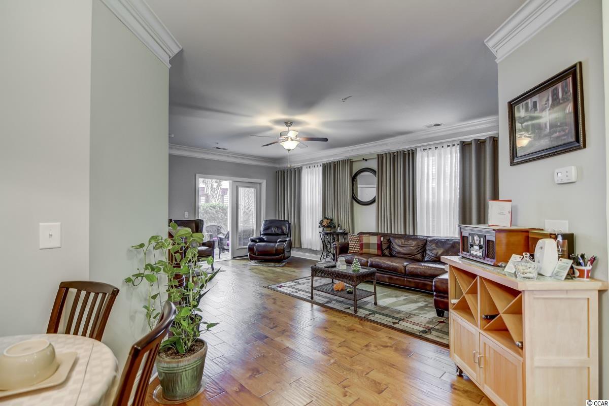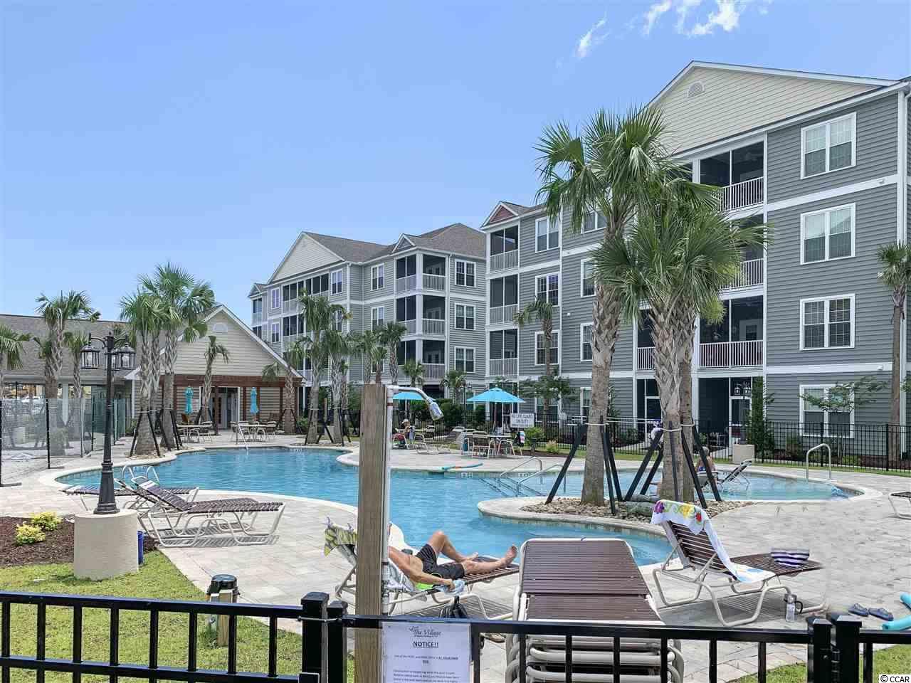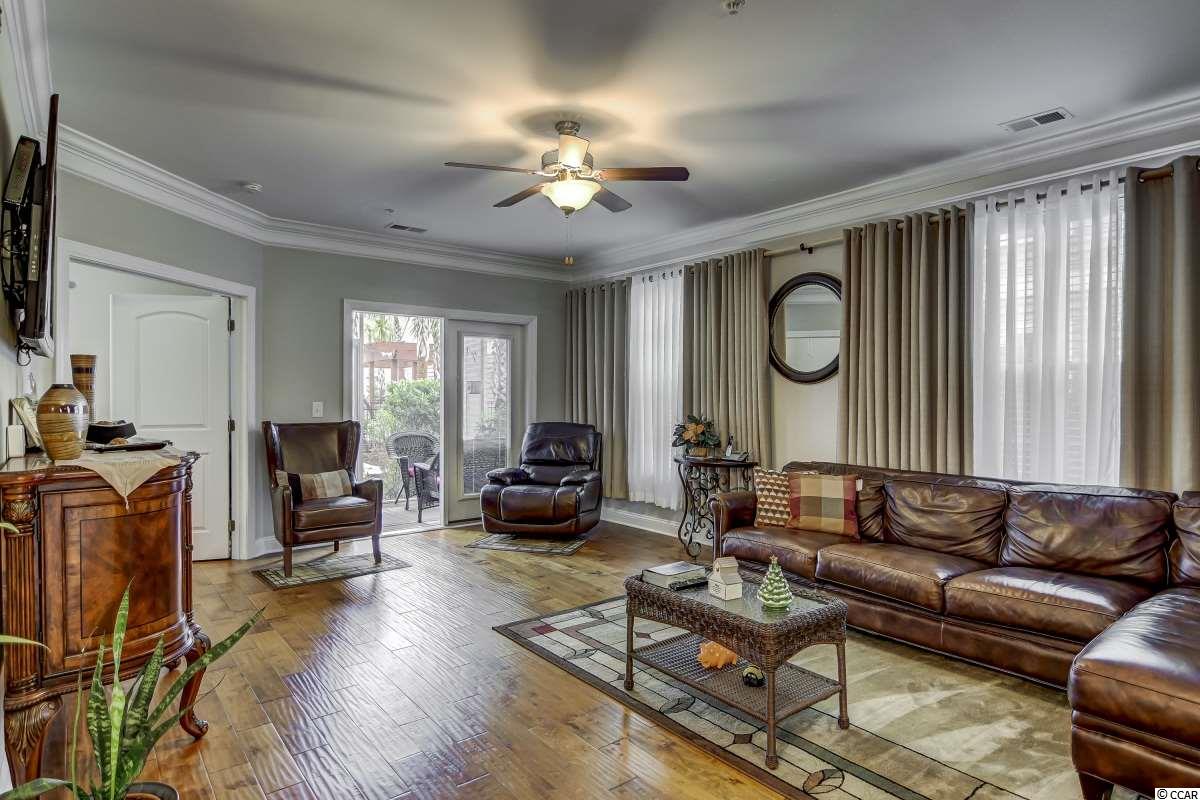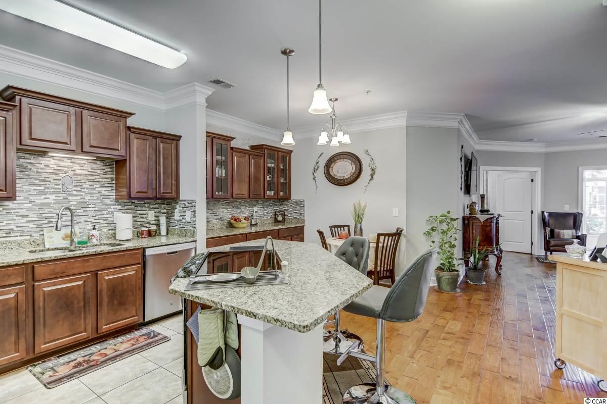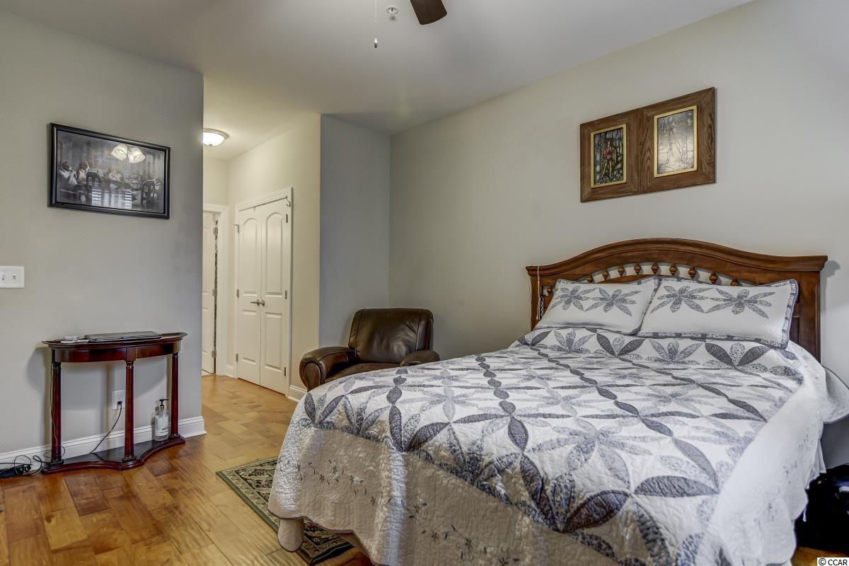 Magnificent 2 bedroom 2 bath, first floor condo in The Village at Queens Harbour II. Stunning hand-scraped engineered hardwood floors run throughout with exception of tile in the kitchen, laundry, and bathrooms. This unit features 9' smooth ceilings throughout and 6 baseboards. The spacious living room has crown molding, a ceiling fan, and french doors that take you out to the screened porch.The delightful screened porch has a ceiling fan and a screened door out to the common area just feet away from the pool! In the kitchen you will find gorgeous granite countertops, custom tile backsplash, stainless steel appliances, a pantry, plenty of cabinet and counter space, as well as an island with pendant lighting and seating for 4! Another great feature of this unit is that this floor plan has 2 master bedrooms and the same square footage as the 3 bedroom model so all the rooms are very large! Double doors off the living room take you into the first big master bedroom that has a double window, a ceiling fan, walk-in closet, and an ensuite bathroom with a glass enclosed shower. The second large master bedroom has a ceiling fan, a closet, and a vanity area outside of the ensuite bathroom. The second master bath has a jetted tub/shower combo and it also has a separate door out to the main living space so guests dont have to come through the bedroom to get to it. There is also an additional laundry room in this unit and a separate storage unit just outside the front door. This particular building also has an elevator to all floors. The Village at Queens Harbour II has a fabulous resort style community pool with a hot tub surrounded by new palm trees with a clubhouse with a grilling area for owners to enjoy! The Village at Queens Harbour II has low HOA fees and unlike Phase I this has no additional assessment! Conveniently located off HWY 17 Bypass close to tons of restaurants and shopping! Less than 10 minutes from Market Common and less than 15 minutes from the Beach!!