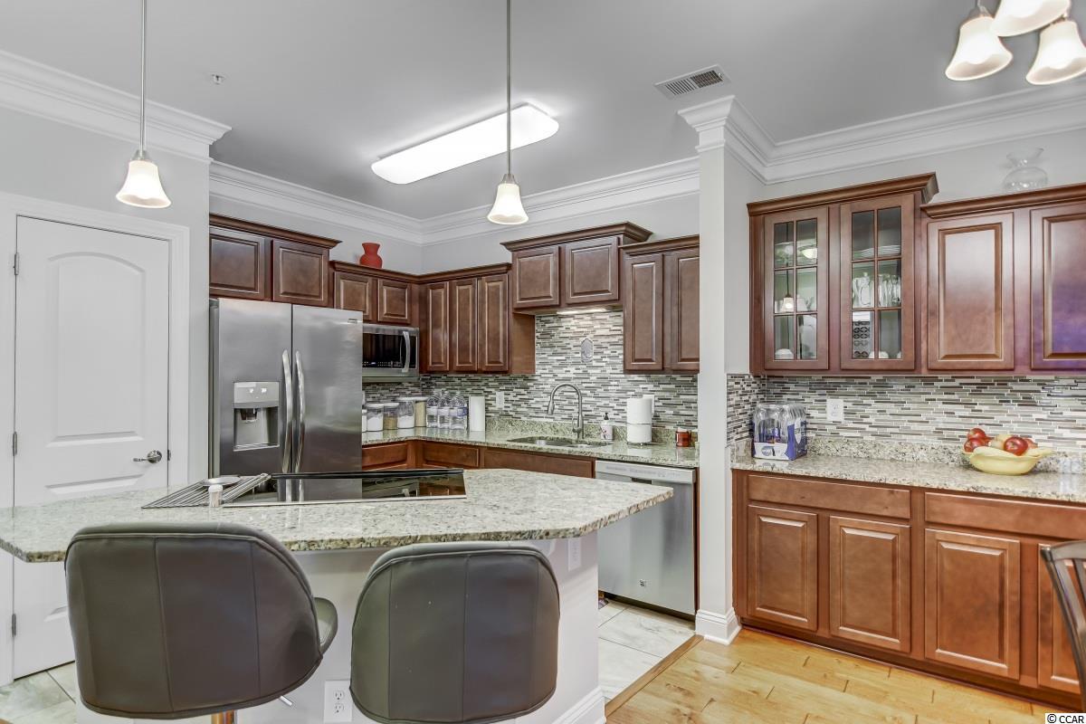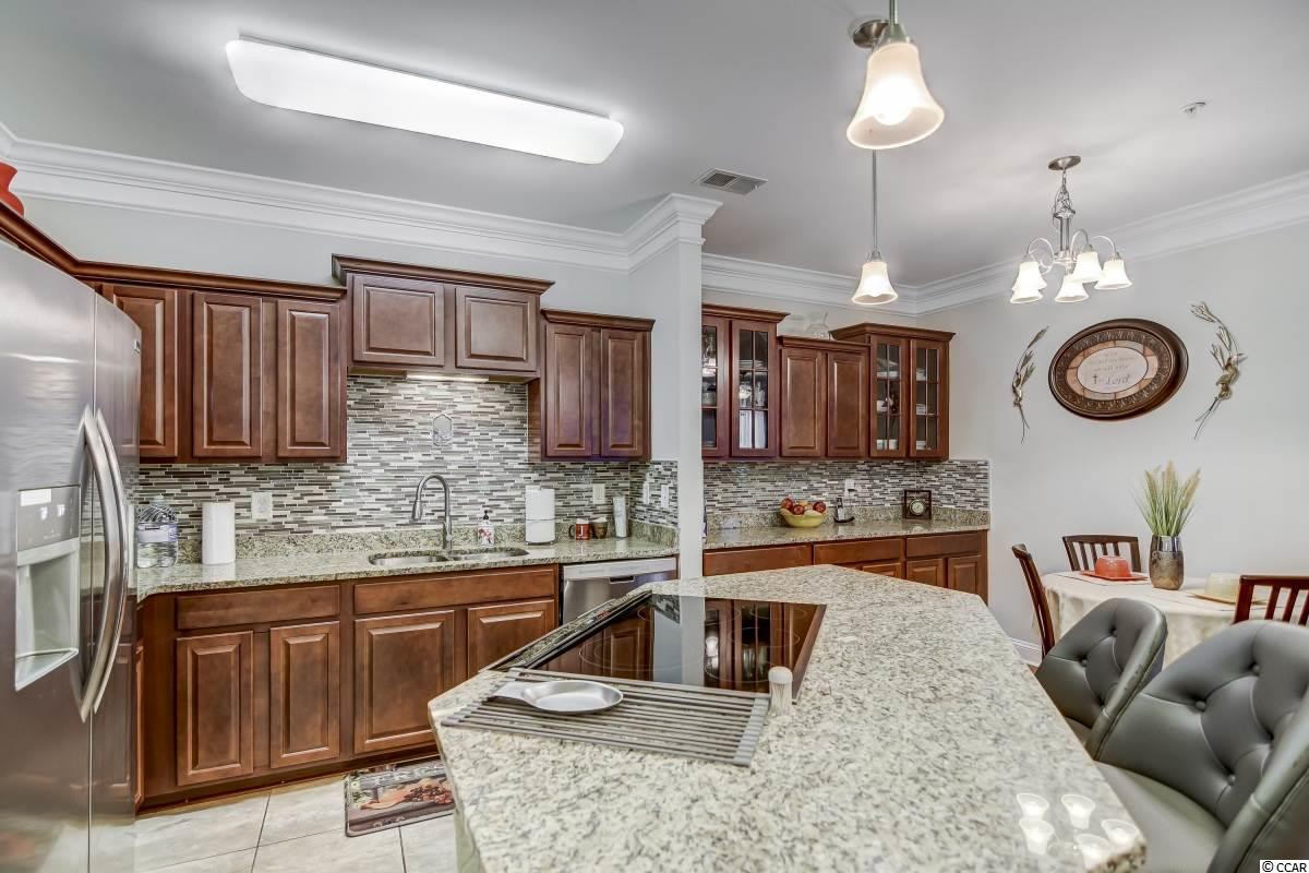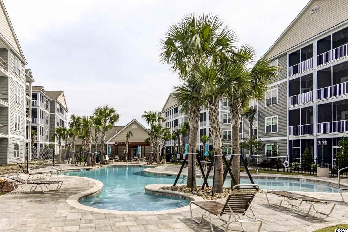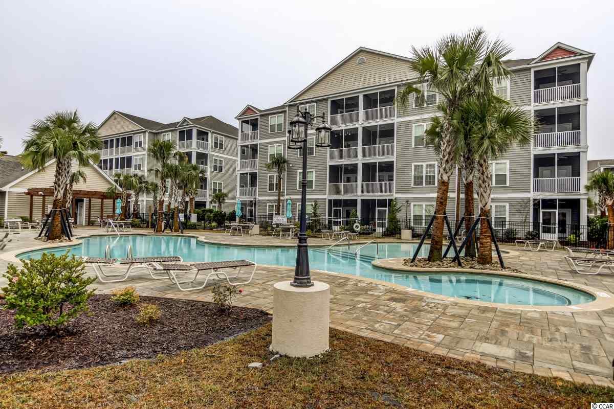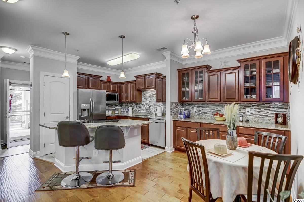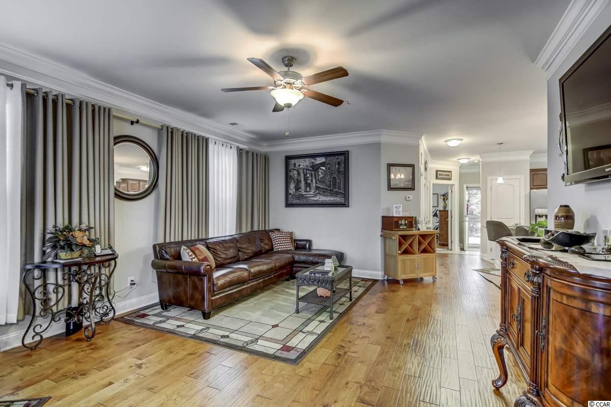 Magnificent 2 bedroom 2 bath, first floor condo in The Village at Queens Harbour II. Stunning hand-scraped engineered hardwood floors run throughout with exception of tile in the kitchen, laundry, and bathrooms. This unit features 9' smooth ceilings throughout and 6 baseboards. The spacious living room has crown molding, a ceiling fan, and french doors that take you out to the screened porch.The delightful screened porch has a ceiling fan and a screened door out to the common area just feet away from the pool! In the kitchen you will find gorgeous granite countertops, custom tile backsplash, stainless steel appliances, a pantry, plenty of cabinet and counter space, as well as an island with pendant lighting and seating for 4! Another great feature of this unit is that this floor plan has 2 master bedrooms and the same square footage as the 3 bedroom model so all the rooms are very large! Double doors off the living room take you into the first big master bedroom that has a double window, a ceiling fan, walk-in closet, and an ensuite bathroom with a glass enclosed shower. The second large master bedroom has a ceiling fan, a closet, and a vanity area outside of the ensuite bathroom. The second master bath has a jetted tub/shower combo and it also has a separate door out to the main living space so guests dont have to come through the bedroom to get to it. There is also an additional laundry room in this unit and a separate storage unit just outside the front door. This particular building also has an elevator to all floors. The Village at Queens Harbour II has a fabulous resort style community pool with a hot tub surrounded by new palm trees with a clubhouse with a grilling area for owners to enjoy! The Village at Queens Harbour II has low HOA fees and unlike Phase I this has no additional assessment! Conveniently located off HWY 17 Bypass close to tons of restaurants and shopping! Less than 10 minutes from Market Common and less than 15 minutes from the Beach!!