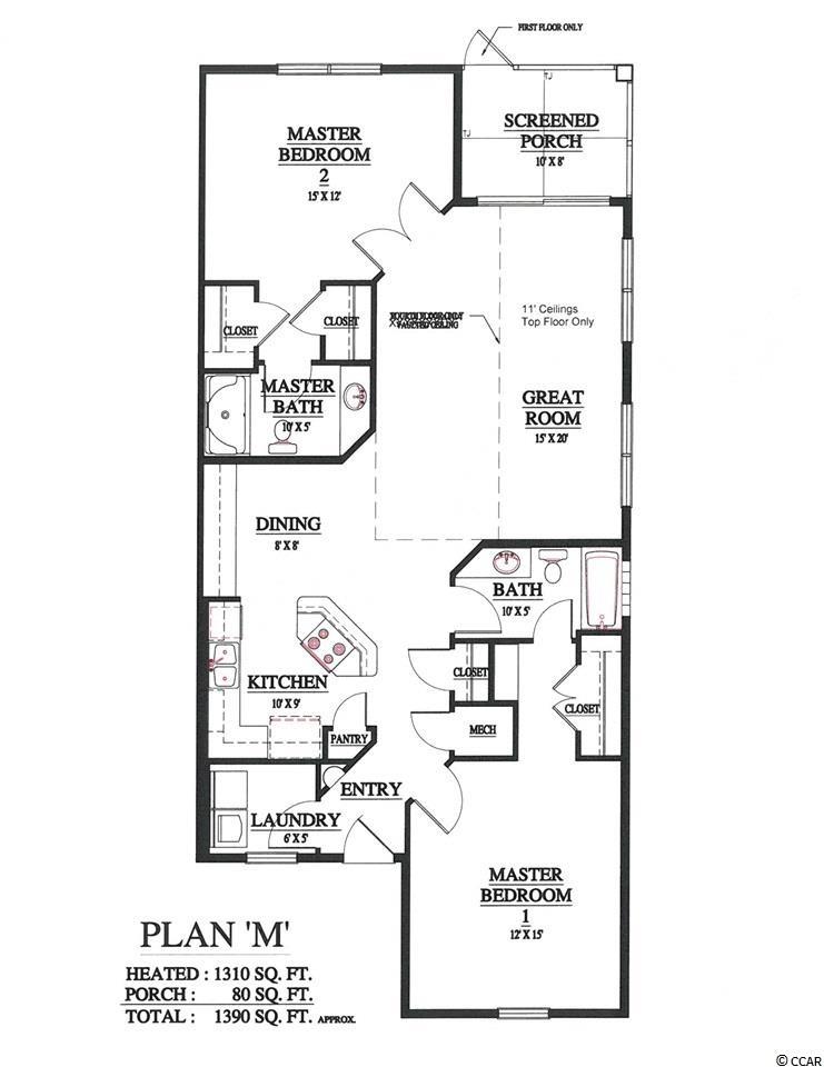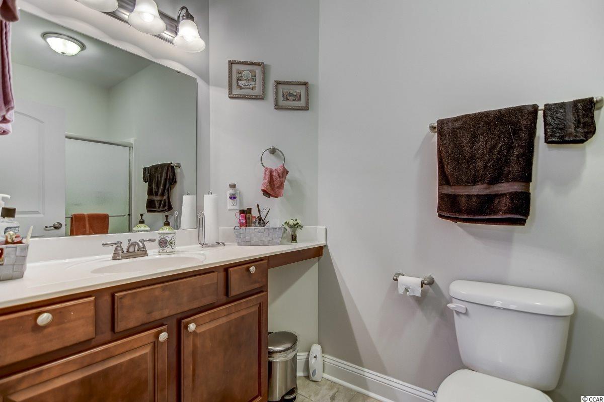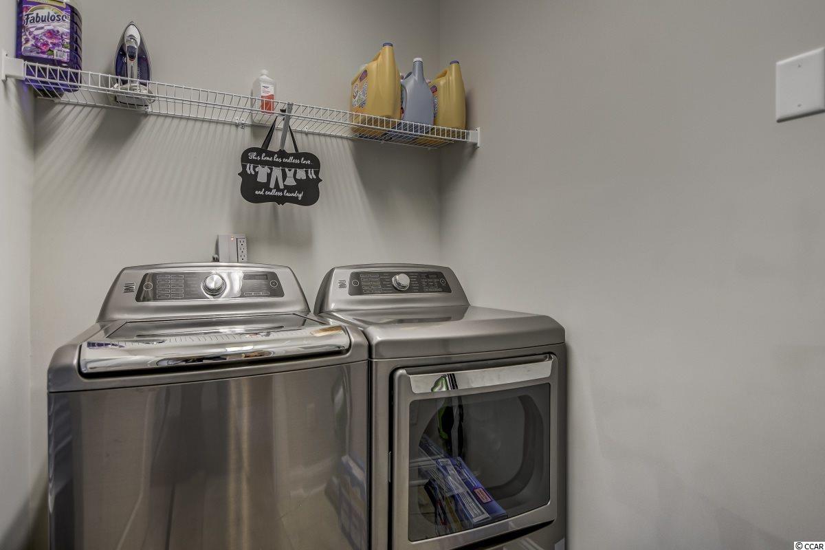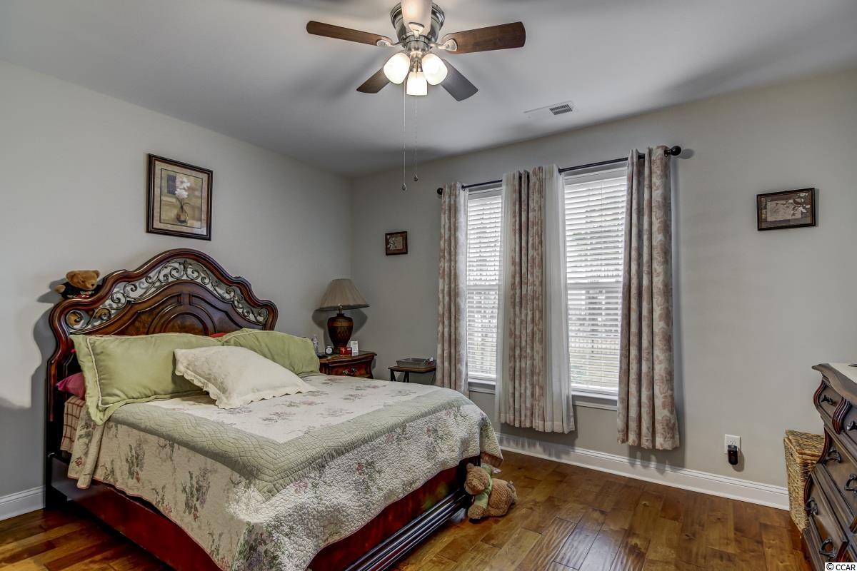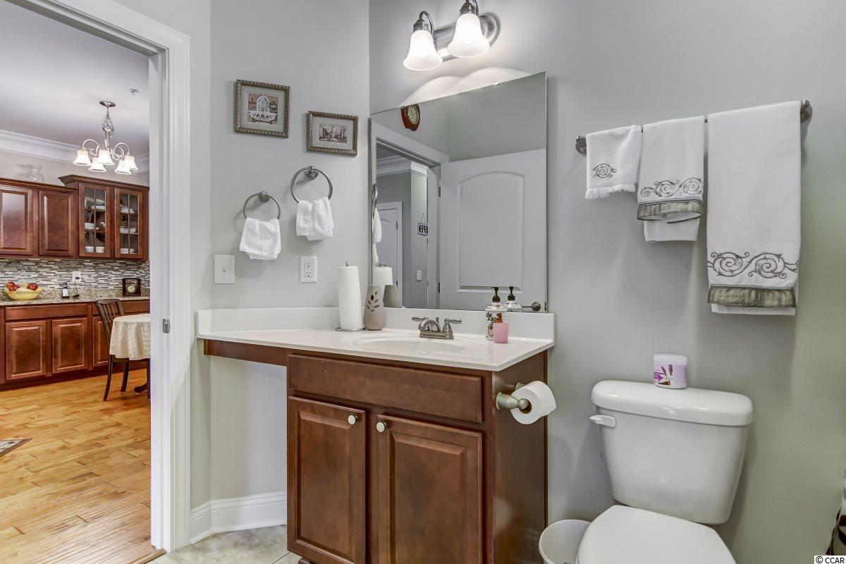 Magnificent 2 bedroom 2 bath, first floor condo in The Village at Queens Harbour II. Stunning hand-scraped engineered hardwood floors run throughout with exception of tile in the kitchen, laundry, and bathrooms. This unit features 9' smooth ceilings throughout and 6 baseboards. The spacious living room has crown molding, a ceiling fan, and french doors that take you out to the screened porch.The delightful screened porch has a ceiling fan and a screened door out to the common area just feet away from the pool! In the kitchen you will find gorgeous granite countertops, custom tile backsplash, stainless steel appliances, a pantry, plenty of cabinet and counter space, as well as an island with pendant lighting and seating for 4! Another great feature of this unit is that this floor plan has 2 master bedrooms and the same square footage as the 3 bedroom model so all the rooms are very large! Double doors off the living room take you into the first big master bedroom that has a double window, a ceiling fan, walk-in closet, and an ensuite bathroom with a glass enclosed shower. The second large master bedroom has a ceiling fan, a closet, and a vanity area outside of the ensuite bathroom. The second master bath has a jetted tub/shower combo and it also has a separate door out to the main living space so guests dont have to come through the bedroom to get to it. There is also an additional laundry room in this unit and a separate storage unit just outside the front door. This particular building also has an elevator to all floors. The Village at Queens Harbour II has a fabulous resort style community pool with a hot tub surrounded by new palm trees with a clubhouse with a grilling area for owners to enjoy! The Village at Queens Harbour II has low HOA fees and unlike Phase I this has no additional assessment! Conveniently located off HWY 17 Bypass close to tons of restaurants and shopping! Less than 10 minutes from Market Common and less than 15 minutes from the Beach!!