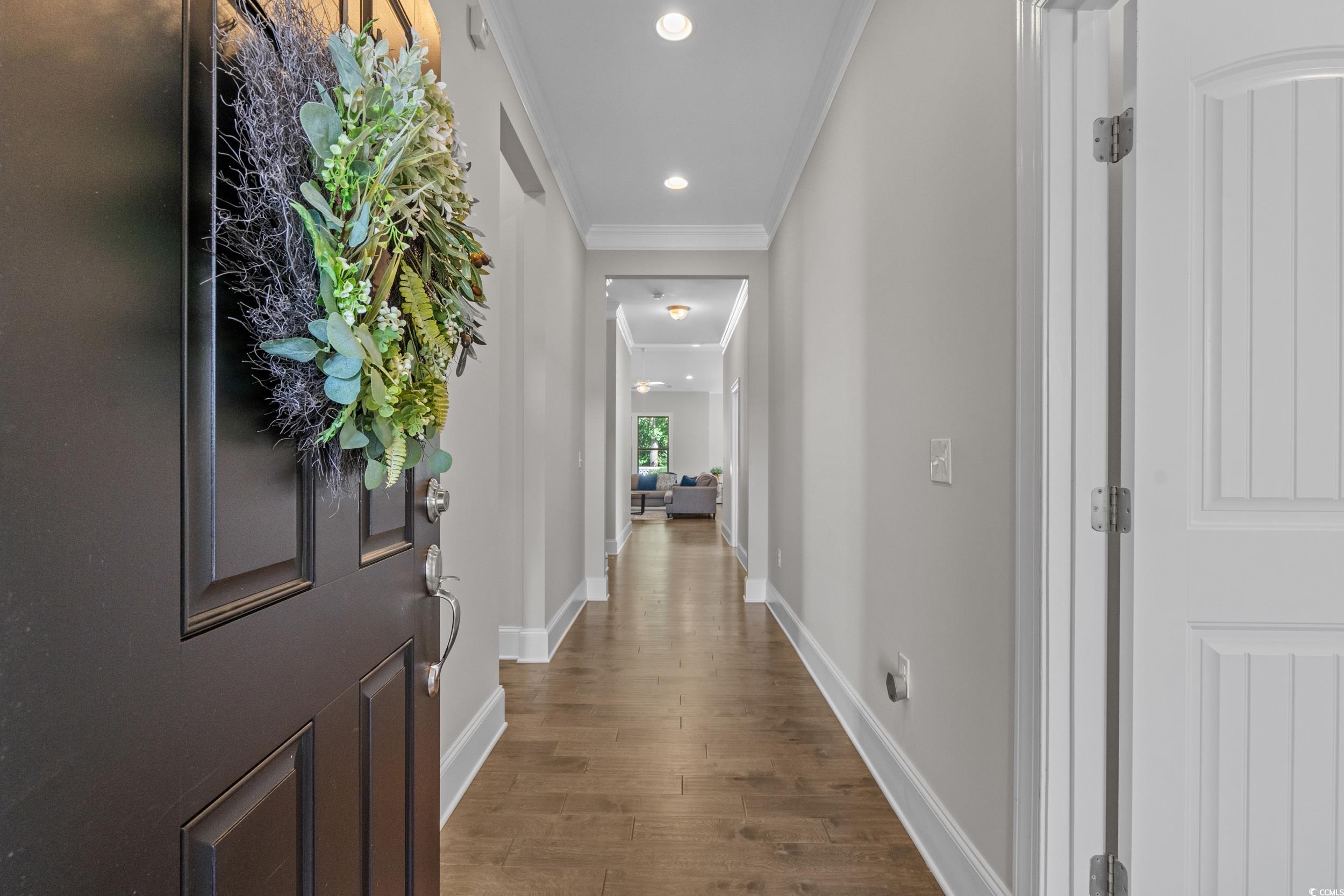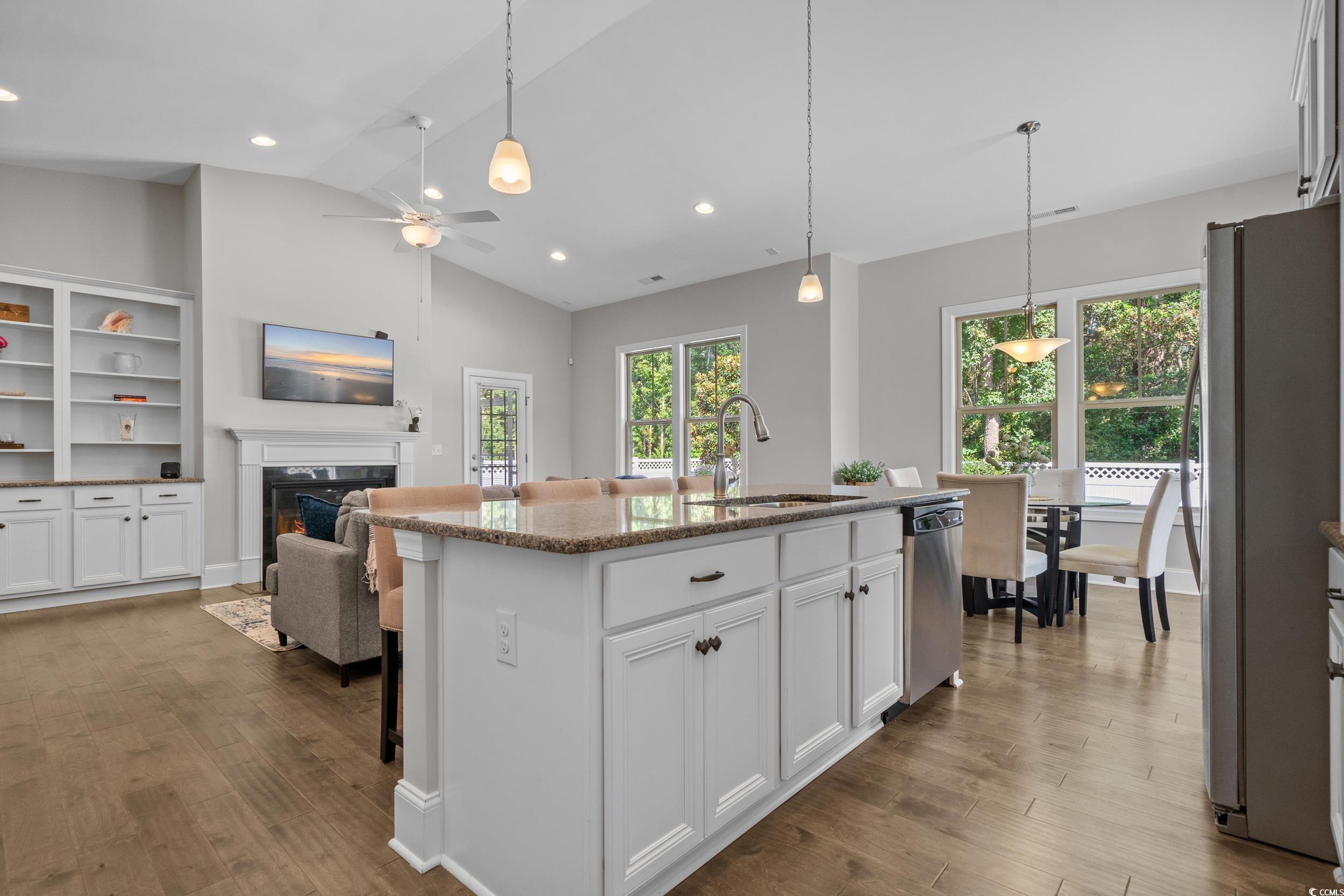 Welcome to this stunning custom-built ranch home in the prestigious gated community of Waterbridge. Designed for both comfort and versatility, this residence includes a private guest suite with its own entrance, living room with wet bar and kitchenette, full bathroom, and bedroomideal for in-laws, guests, or an investment opportunity. The main living area impresses with soaring ceilings, a cozy propane fireplace framed by built-in shelving and cabinetry, and gorgeous wood floors flowing throughoutwithout a stitch of carpet. The open-concept design centers around a chefs dream kitchen, complete with solid surface countertops, double ovens, and abundant cabinet space. The spacious primary suite provides a serene retreat with an en suite bath featuring a beautifully tiled shower and dual sinks. Outdoor living shines with a welcoming southern-style front porch and a screened-in back porch overlooking a fenced yard that backs to a peaceful wooded preserve. This home also offers access to South Carolinas largest residential pool and world-class amenities, including bocce, pickleball, tennis, basketball, volleyball, a fitness center, and more. Perfectly located just minutes from fine dining, entertainment, top-rated schools, medical facilities, and the sandy shores, this property offers the ultimate blend of luxury, comfort, and resort-style living.