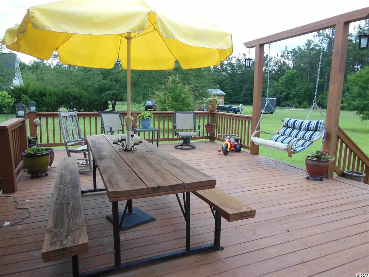 Relaxed Country Living on 2 acres just outside City Limits of Conway & close to Highway 22 for easy access to Myrtle Beach. Custom built executive home with many upgrades. Over 3,000 heated square feet. Large inviting entry foyer - hardwood floors throughout. All rooms very spacious. Family room with raised hearth fireplace. Formal dining room is being used as parlor/music room. Plantation blinds/shutters included. Fabulous gourmet dream kitchen with 6.5'x5' granite island/breakfast bar with ample space for large dining table. Separate ice maker in island. Wolf gas stove with gas grill. 42"" custom cabinets with under counter lighting. Walk-in pantry. Large eat in kitchen. Master bath w/ walk-in shower, garden tub, walk-in closet, double sinks. 3 bedrooms downstairs, one bedroom/office upstairs. Over sized laundry room. Attached 2 car garage. Raised slab construction. 2 HVAC units and 2 gas in-line hot water heaters. 34'x8' front porch. 28'x36' detached workshop. Rear Screened porch and 24' x 16' deck for enjoying family gatherings. Beautifully landscaped yard.. Plenty of space for storing boat/RV.