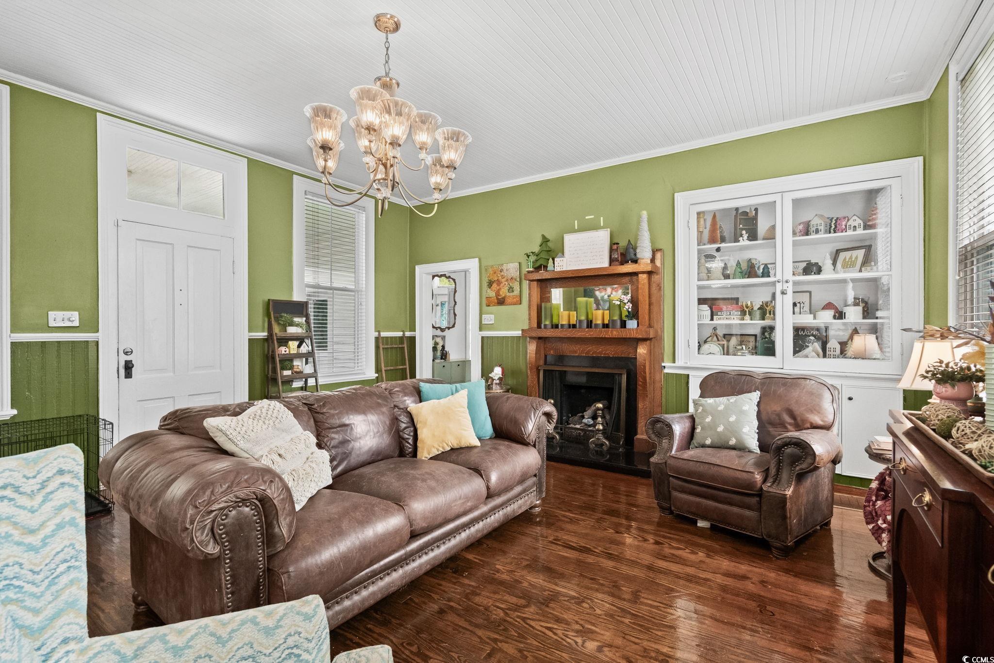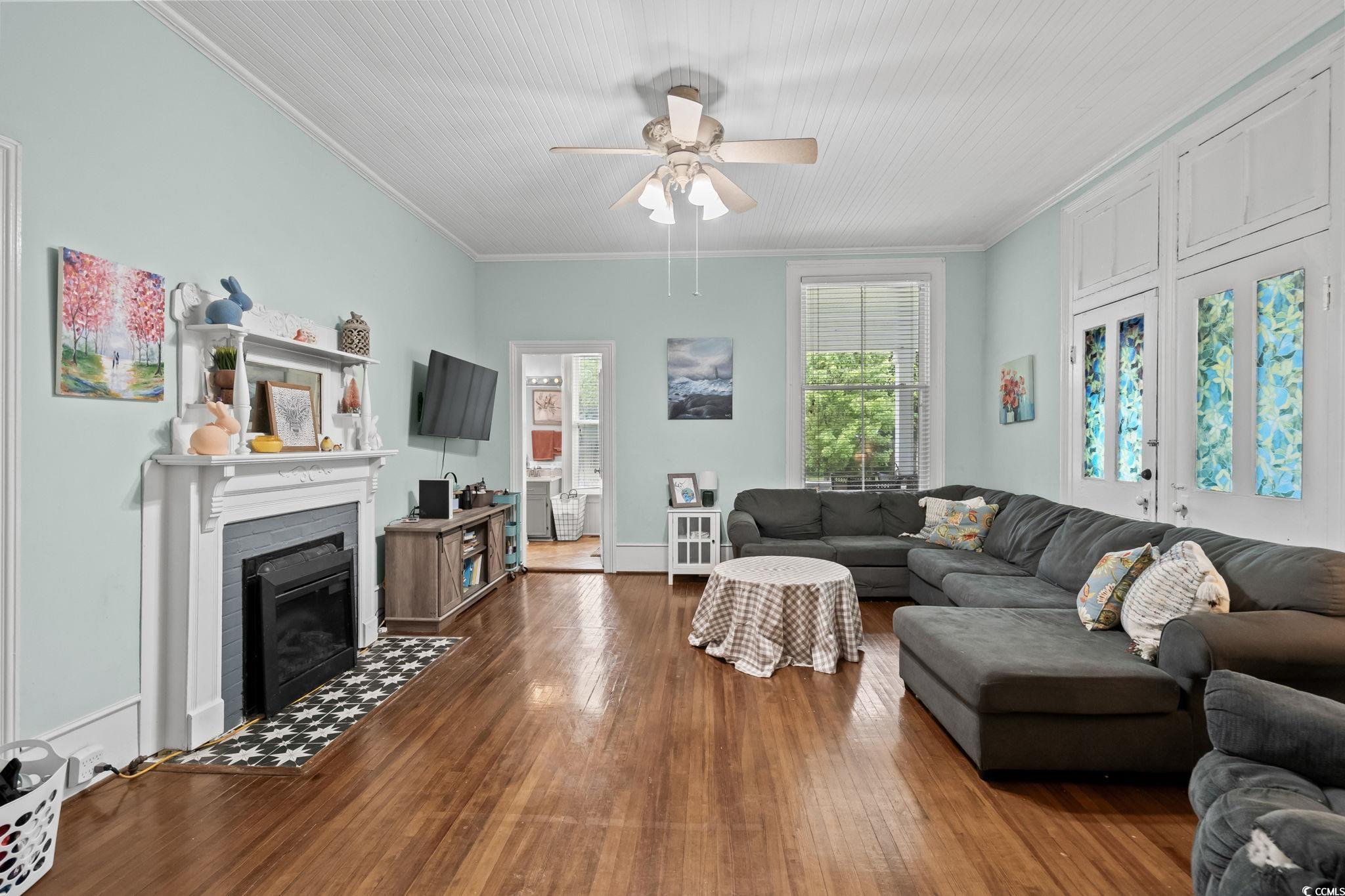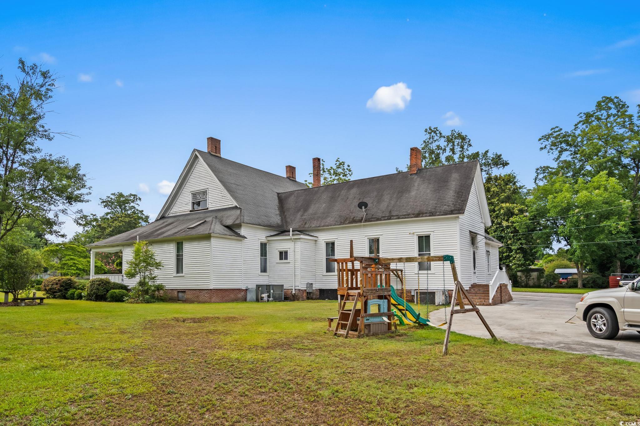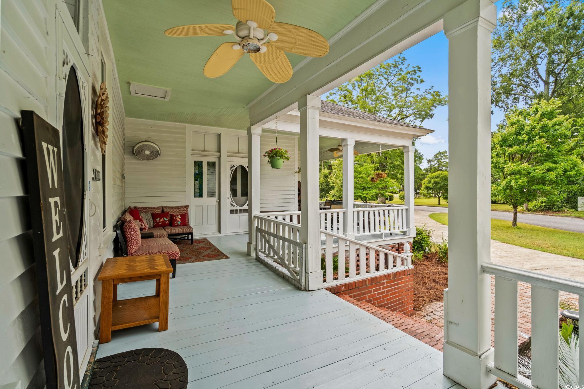 Built in 1889 and listed on the National Register of Historic Places, this beautifully updated four-bedroom, three-bathroom home offers a rare opportunity to own a piece of Southern history while enjoying all the comforts of modern living. With 3,214 heated square feet and a total of 4,466 square feet of indoor and outdoor living space, this grand residence is one of Marions true architectural treasures. Inside, timeless character meets contemporary updates. The kitchen has been thoughtfully renovated with granite countertops, a tile backsplash, stainless steel appliances, and LED accent lighting. Throughout the home, youll find rich wood and tile flooring, soaring 10-foot wood plank ceilings, and four fireplacesincluding one that features an exquisite oak mantel with a built-in beveled mirror. The custom primary suite is a standout, offering a skylight and a large walk-in closet with built-ins, all wrapped in elegant finishes including heavy crown molding, wainscoting, and detailed built-in cabinetry. Modern comforts include vinyl replacement windows, architectural wood trim, an architectural shingle hip roof, a brick crawl space foundation, a tankless water heater with a pressure pump, and two HVAC units for year-round climate control. One of the most inviting features of the home is the pair of low-country style wrap-around porches, totaling 1,252 square feetideal for entertaining, relaxing, or simply enjoying the peaceful setting. Situated on over an acre of beautifully landscaped grounds (across two parcels) and offering more than 500 feet of combined road frontage, the property includes a detached double garage, two circular concrete driveways, a brick paver patio, and a decorative water fountain, all adding to the home's stately curb appeal. Located just two blocks from the Marion County Museum, Amazing Grace Park, and the vibrant downtown area filled with shops and restaurants, this historically significant home was reportedly the first in the city to feature electric lights and a bathtub. Lovingly maintained and cherished, its now ready for new owners to appreciate its blend of historic beauty and modern amenities. Dont miss your chance to experience the charm, space, and timeless elegance this Southern classic has to offer. Schedule your private tour today. The listing agent is related to the sellers. Home is being sold AS-IS, all inspections are welcome!!