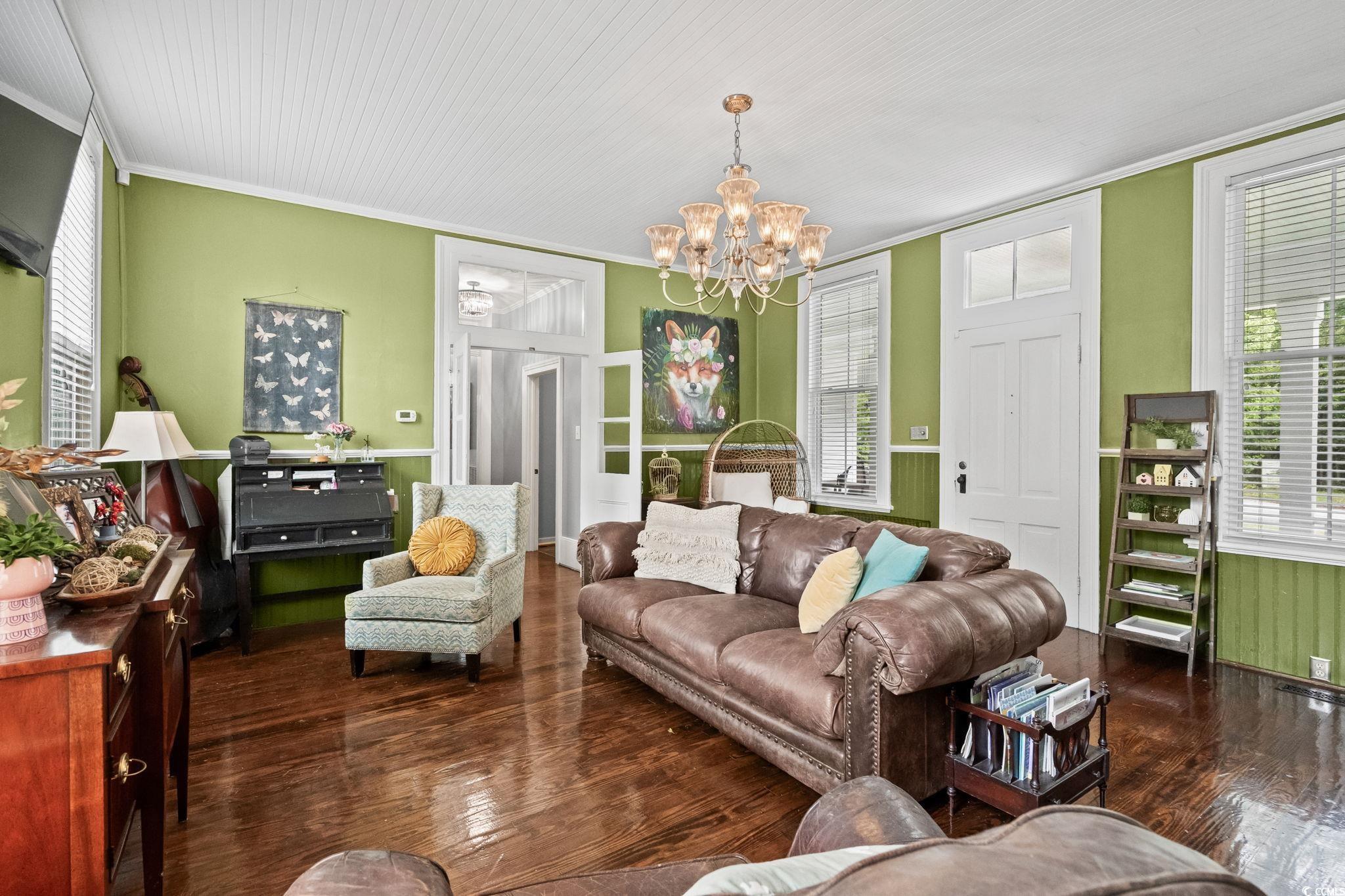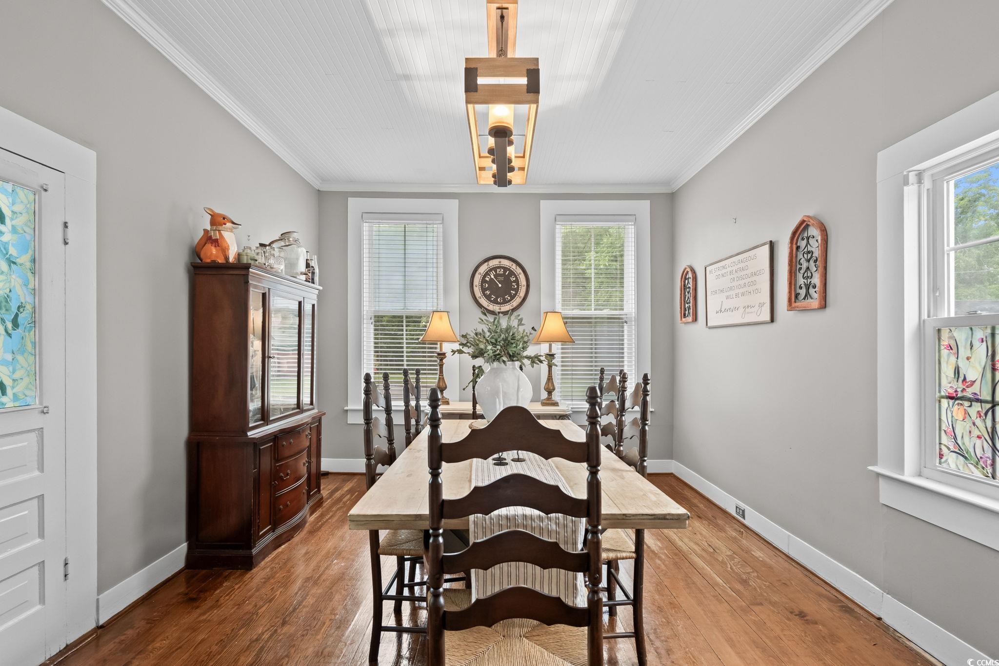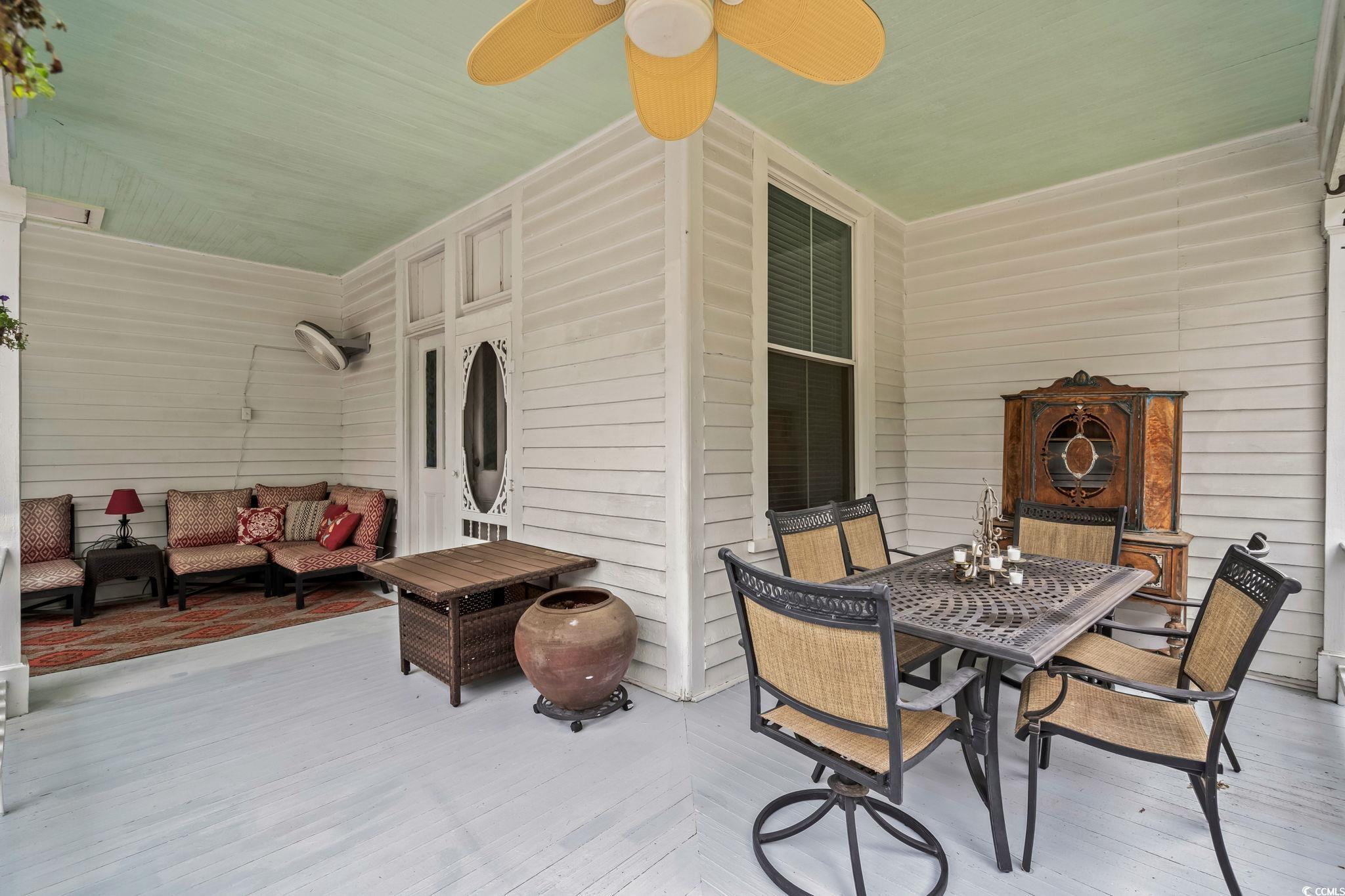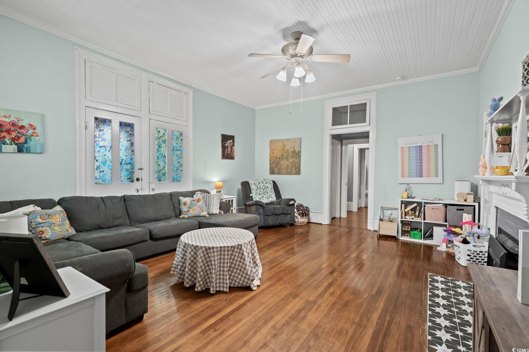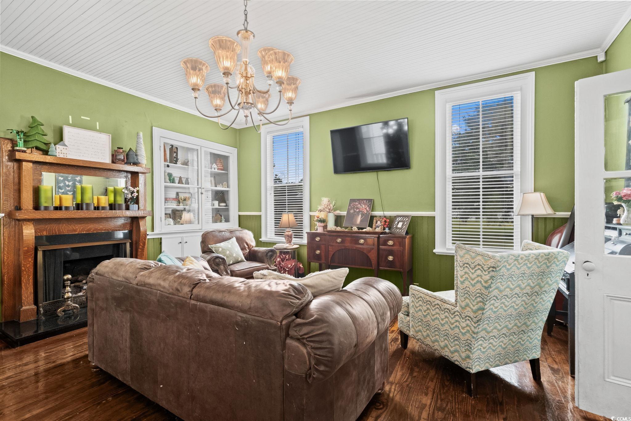 Built in 1889 and listed on the National Register of Historic Places, this beautifully updated four-bedroom, three-bathroom home offers a rare opportunity to own a piece of Southern history while enjoying all the comforts of modern living. With 3,214 heated square feet and a total of 4,466 square feet of indoor and outdoor living space, this grand residence is one of Marions true architectural treasures. Inside, timeless character meets contemporary updates. The kitchen has been thoughtfully renovated with granite countertops, a tile backsplash, stainless steel appliances, and LED accent lighting. Throughout the home, youll find rich wood and tile flooring, soaring 10-foot wood plank ceilings, and four fireplacesincluding one that features an exquisite oak mantel with a built-in beveled mirror. The custom primary suite is a standout, offering a skylight and a large walk-in closet with built-ins, all wrapped in elegant finishes including heavy crown molding, wainscoting, and detailed built-in cabinetry. Modern comforts include vinyl replacement windows, architectural wood trim, an architectural shingle hip roof, a brick crawl space foundation, a tankless water heater with a pressure pump, and two HVAC units for year-round climate control. One of the most inviting features of the home is the pair of low-country style wrap-around porches, totaling 1,252 square feetideal for entertaining, relaxing, or simply enjoying the peaceful setting. Situated on over an acre of beautifully landscaped grounds (across two parcels) and offering more than 500 feet of combined road frontage, the property includes a detached double garage, two circular concrete driveways, a brick paver patio, and a decorative water fountain, all adding to the home's stately curb appeal. Located just two blocks from the Marion County Museum, Amazing Grace Park, and the vibrant downtown area filled with shops and restaurants, this historically significant home was reportedly the first in the city to feature electric lights and a bathtub. Lovingly maintained and cherished, its now ready for new owners to appreciate its blend of historic beauty and modern amenities. Dont miss your chance to experience the charm, space, and timeless elegance this Southern classic has to offer. Schedule your private tour today. The listing agent is related to the sellers. Home is being sold AS-IS, all inspections are welcome!!