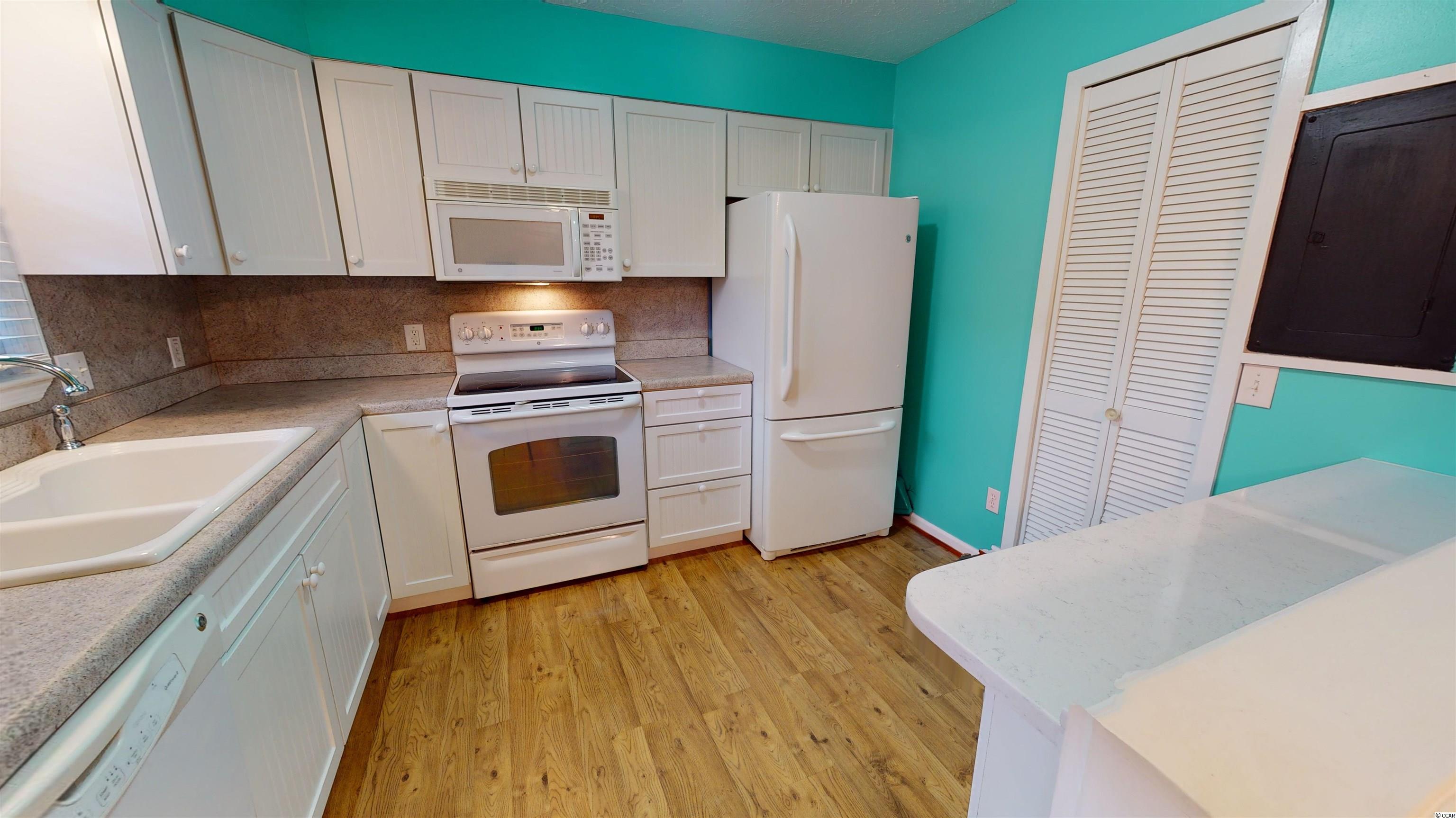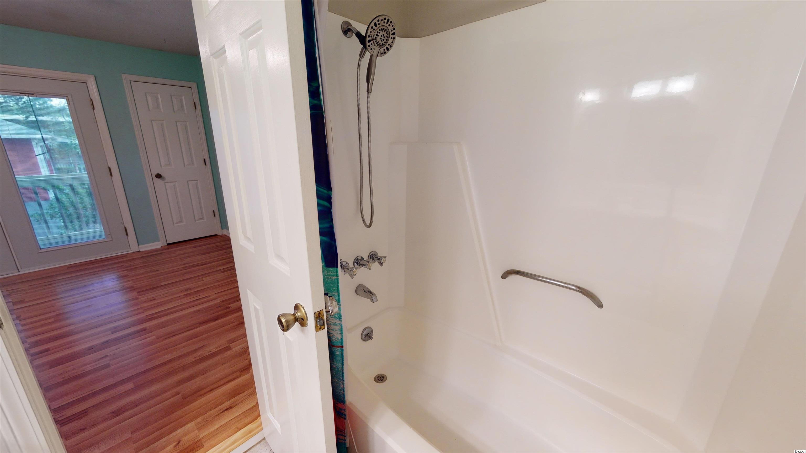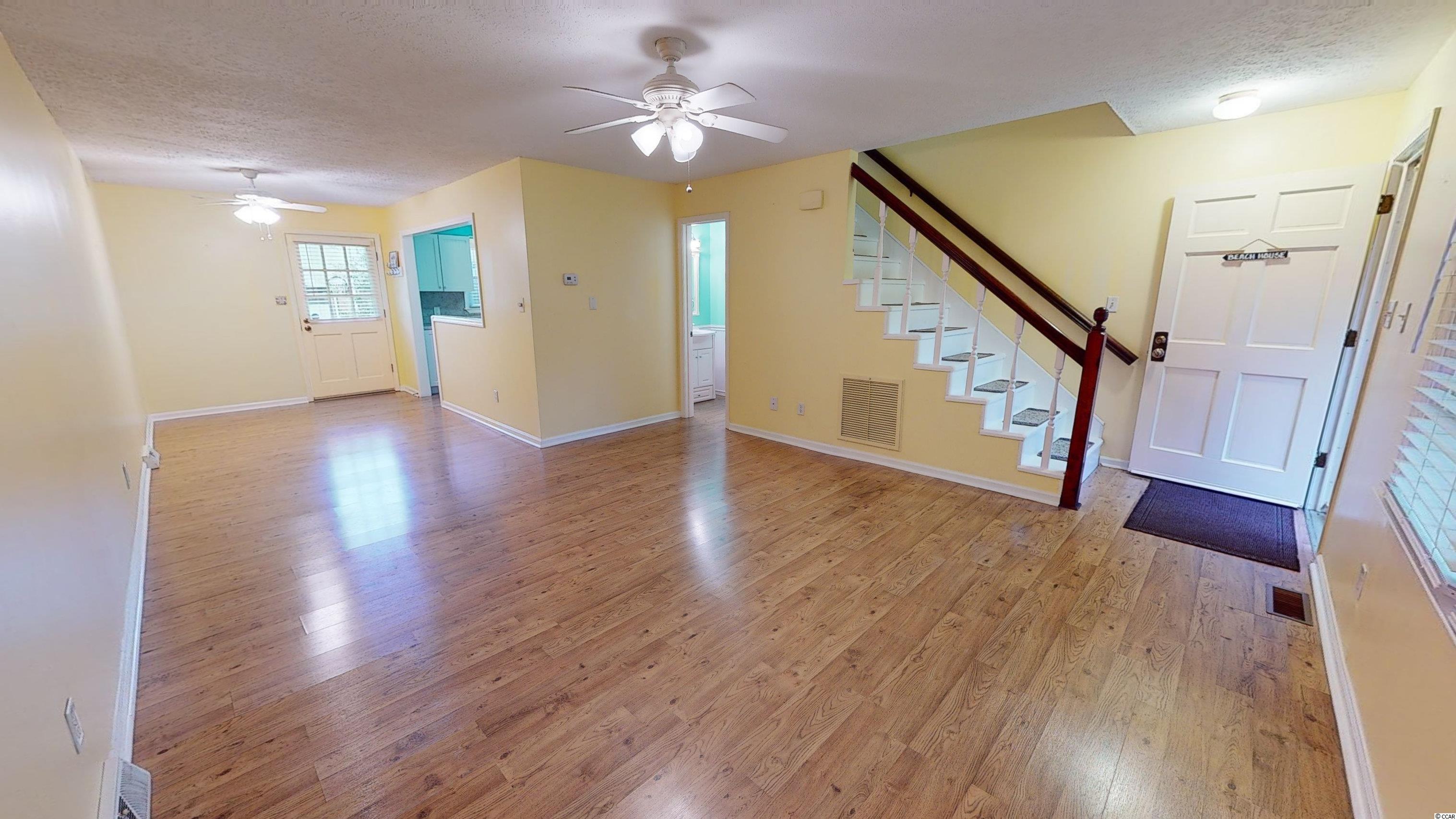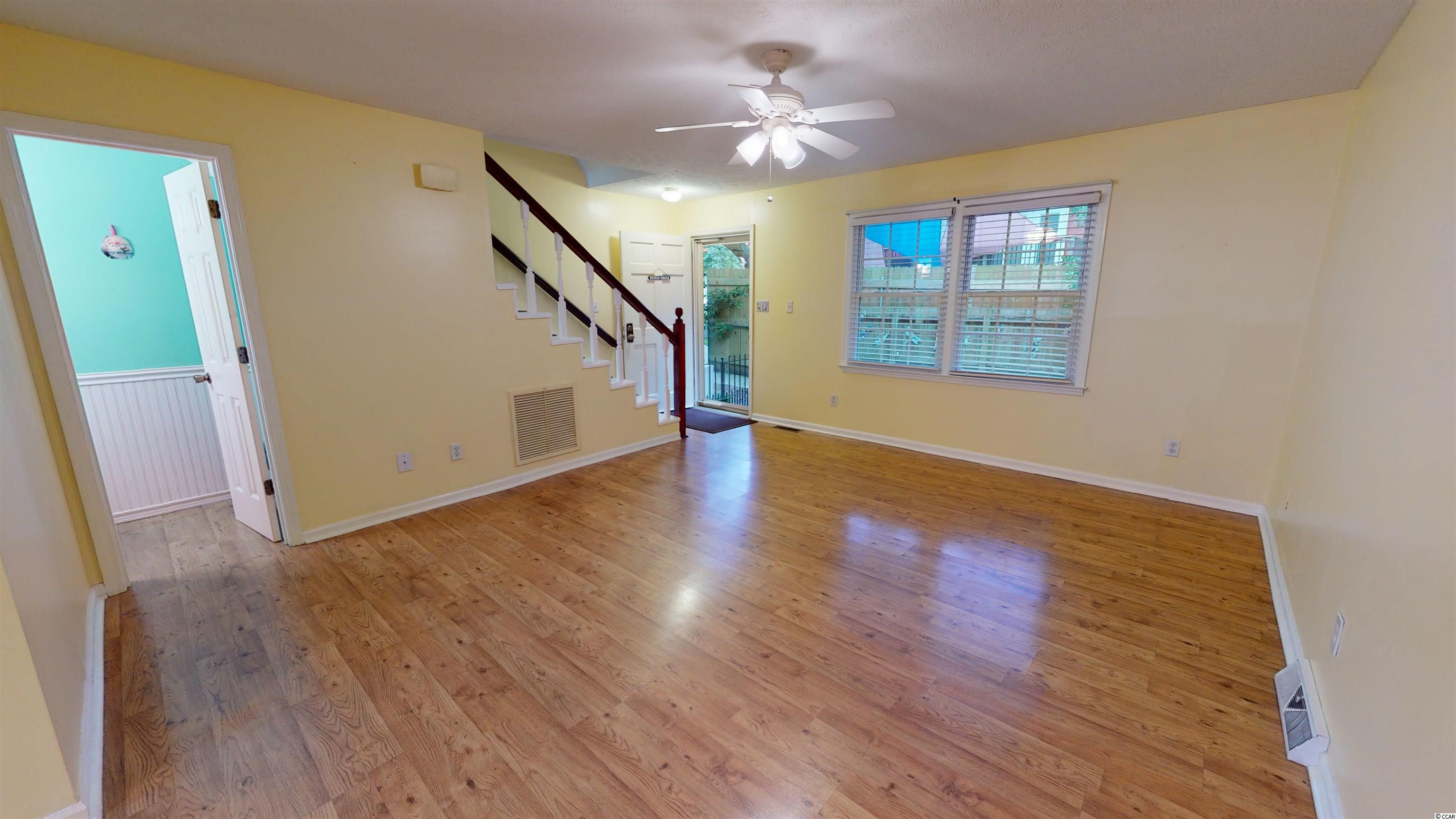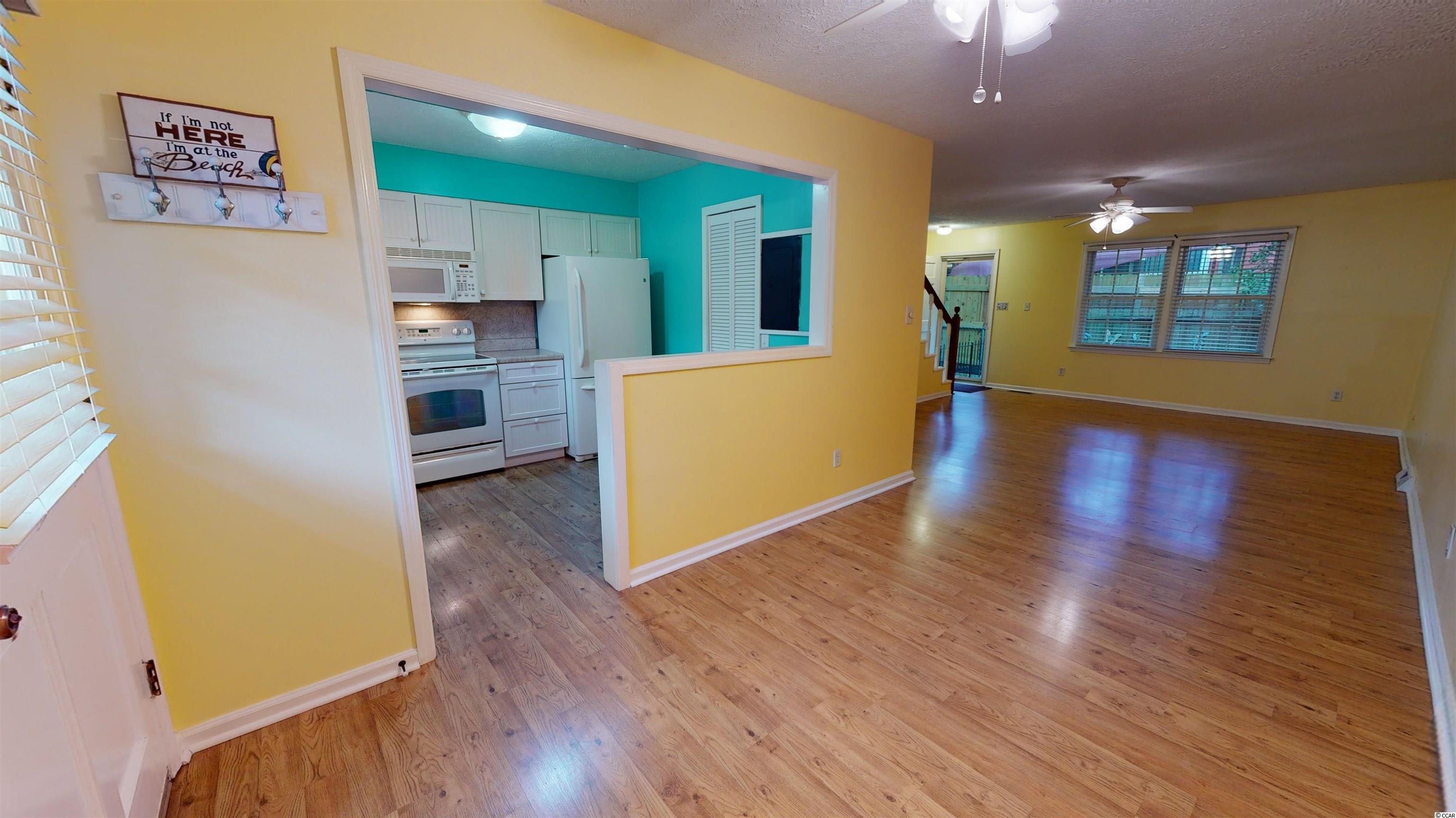 Presenting this vibrant 2 bedroom 2.5 bath townhouse located in the Longbay Townhouse complex and just a little over a tenth of a mile to the white sandy beach. This stylish townhouse features laminated wood, full guest powder room, formal dining area, memorable living room with ceiling fan, and showcases a delightful back patio area. The kitchen is equipped with white on white appliance package, smooth flat top range, dishwasher, built-in microwave, refrigerator with freezer drawer, breakfast bar, and a kitchen pantry. Upstairs you will find the large master suite offers a peaceful screened-in balcony overlooking the back patio, a ceiling fan, his & hers closets, access to the master bath that includes a single vanity sink, comfort station, and a classic tub/shower combo. The upstairs is finished with another bedroom that includes a private full bath. This townhome affords you easy access to the beach and golfing along with all of the other activities and happenings in Myrtle Beach including fun eateries, award winning off-Broadway shows, public fishing piers, and intriguing shopping adventures along the Grand Strand. Conveniently located to your everyday needs, including grocery stores, banks, post offices, medical centers, doctors offices, and pharmacies. Check out our state of the art 3-D Virtual Tour.