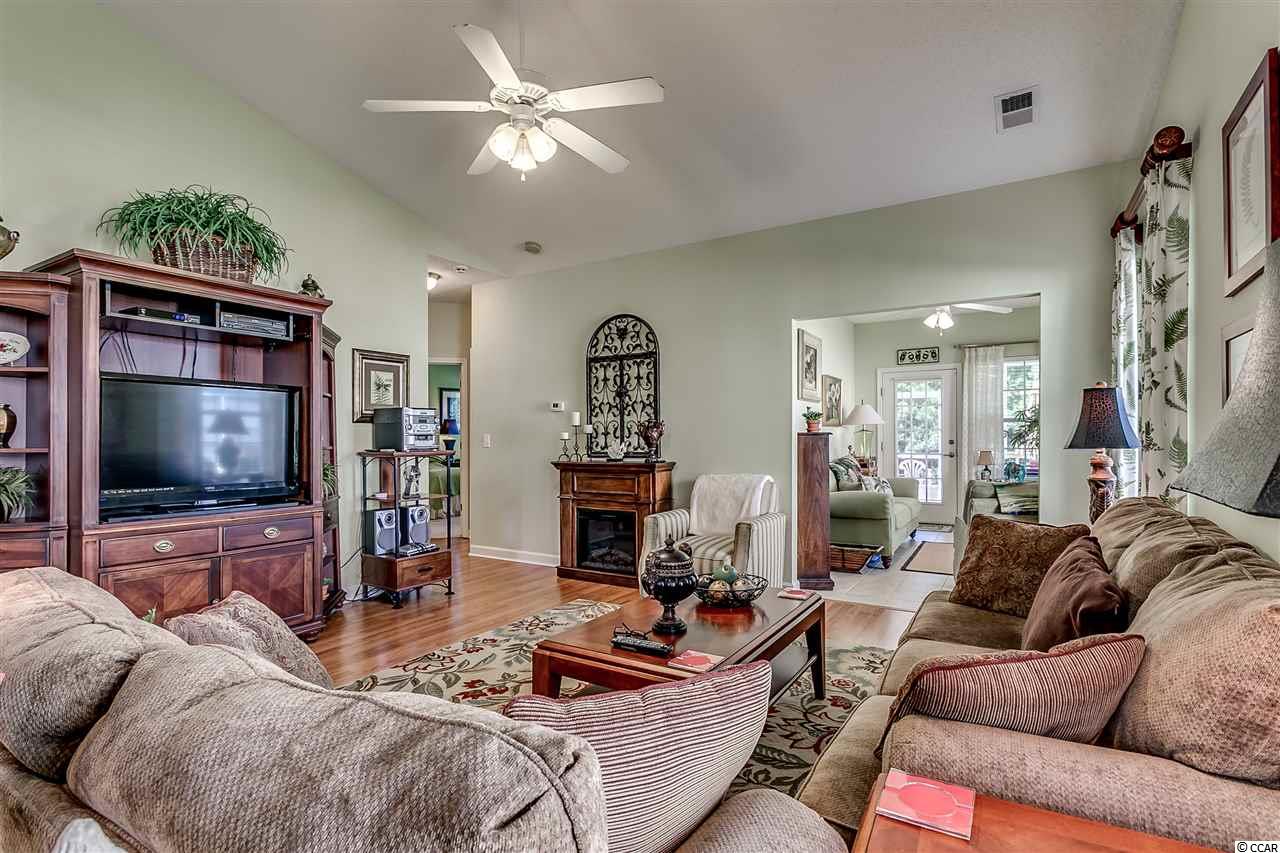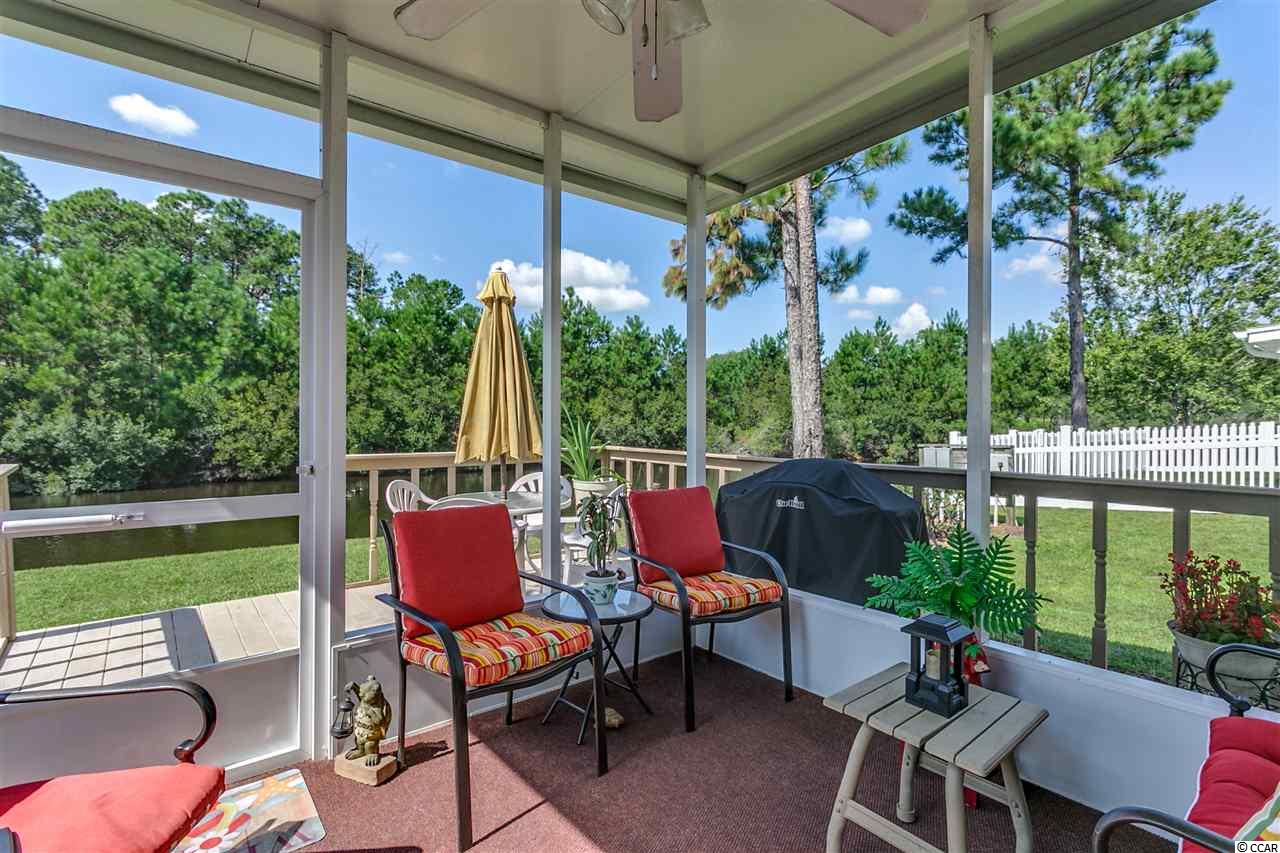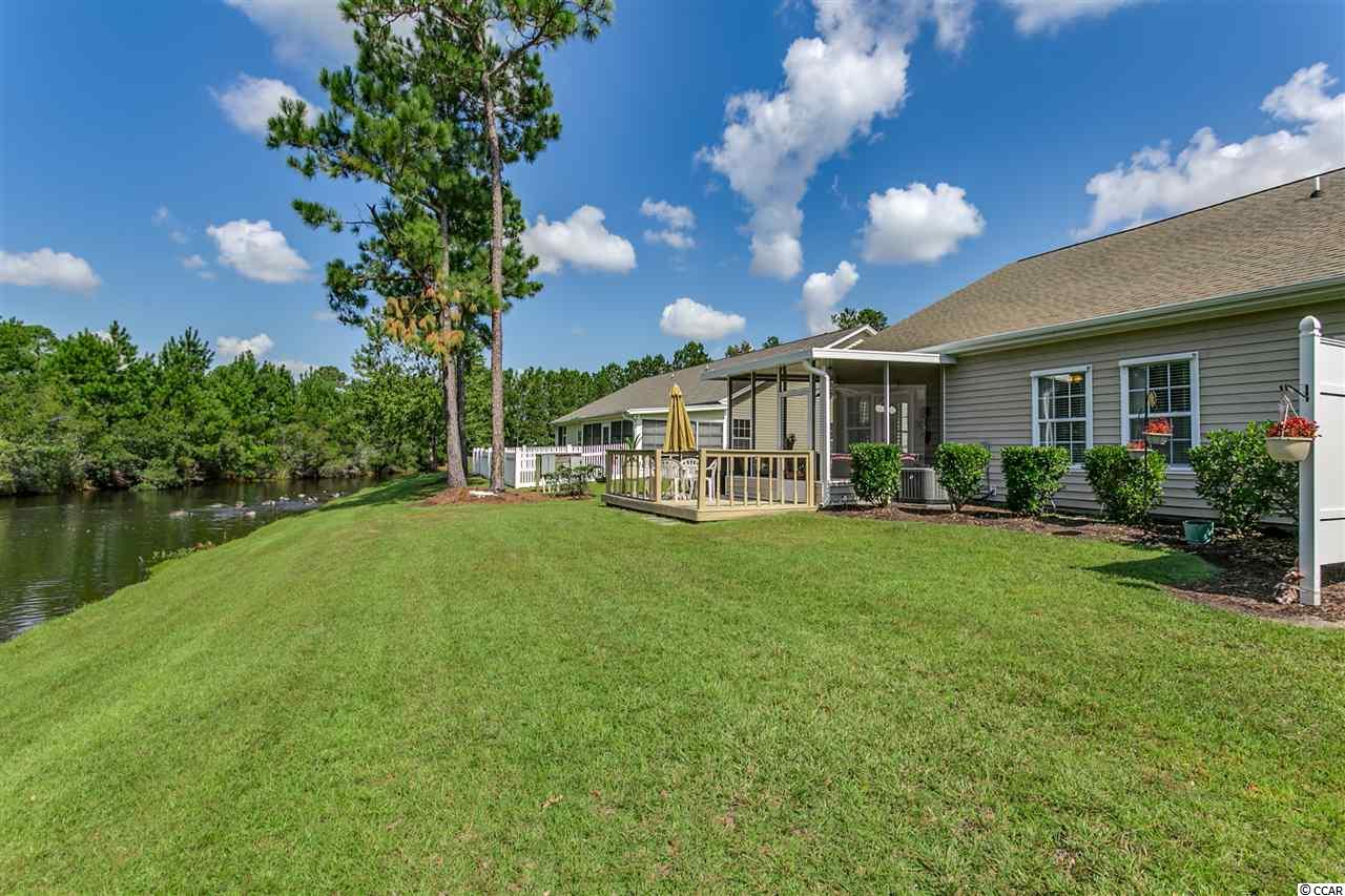 Immaculate 2 bedroom, 2 bath, open floor plan paired ranch located in Deerfield Links which is less than 5 miles to Surfside Beach and walking distance to pool. This unit is located on a premium lot overlooking the lake/pond. Sit in your sunroom, screen porch, or on deck with privacy fence and enjoy the beautiful view of the lake/pond or entertain friends. Also features vaulted/cathedral ceilings in the living room and both bedrooms making the space look and feel much larger. This home boasts many updates: kitchen has wood flooring and beautiful backsplash, and pull out selves. Wood flooring also in family room and laundry room and tile in bathrooms and sunroom. Attic installed with flooring, deck, screened in porch and hurricane shutters installed. A/C replaced in 2016. Very bright large family room and dining area. Master bedroom has oversized walk in closet, garden tub, shower and double bowl vanity. There is a separate laundry/utility room with full size washer/dryer and closet space. HOA fees include water, sewer, pest control, lawn care, trash pickup, cable and internet, community pool, insurance and more. FLOOD INSURANCE NOT REQUIRED! Deerfield is a short drive to Market Common, Murrells Inlet, golf, fishing, restaurants, airport, and medical facilities. Don't let this opportunity slip away. Come see today! Square footage is approximate and not guaranteed. Buyer is responsible for verification.