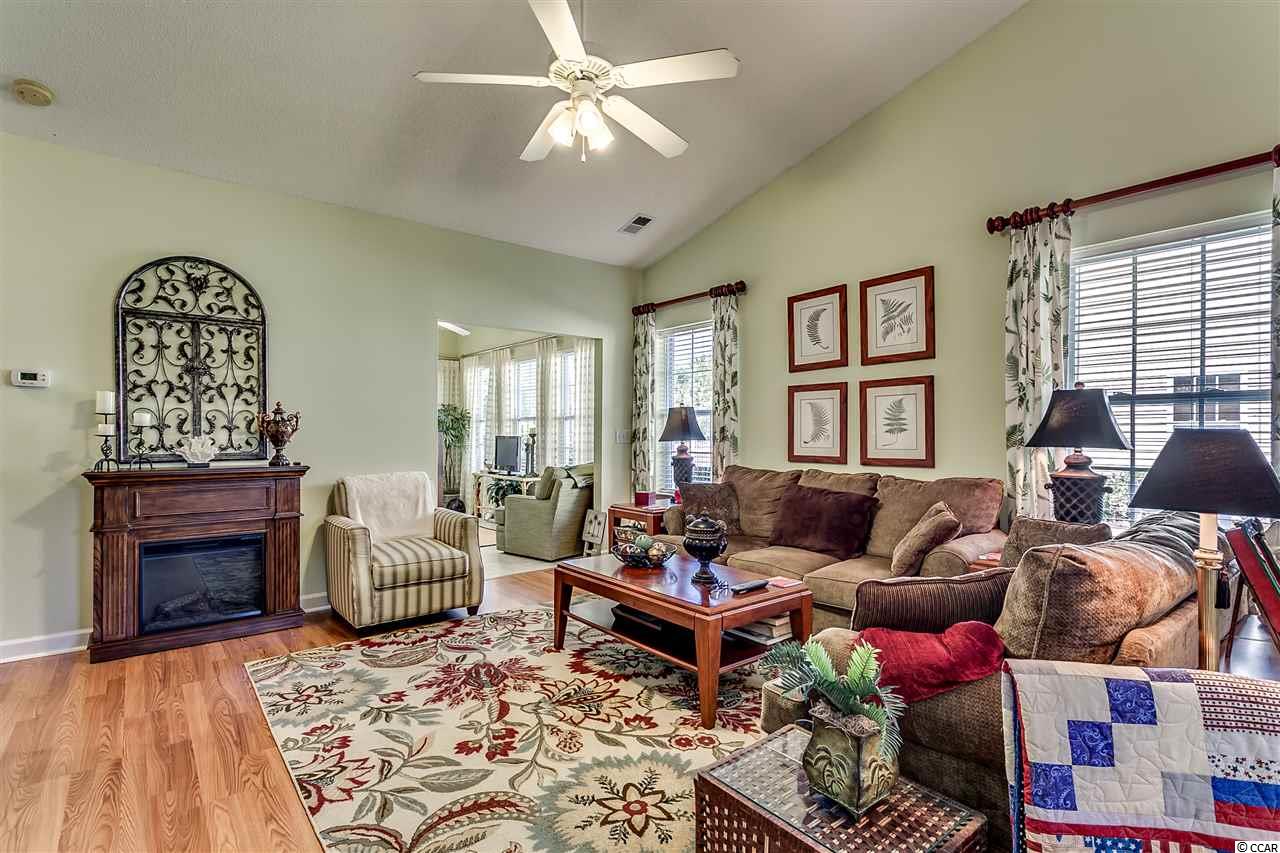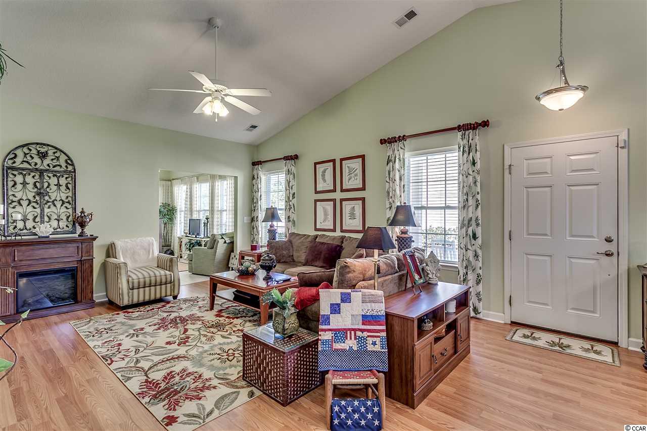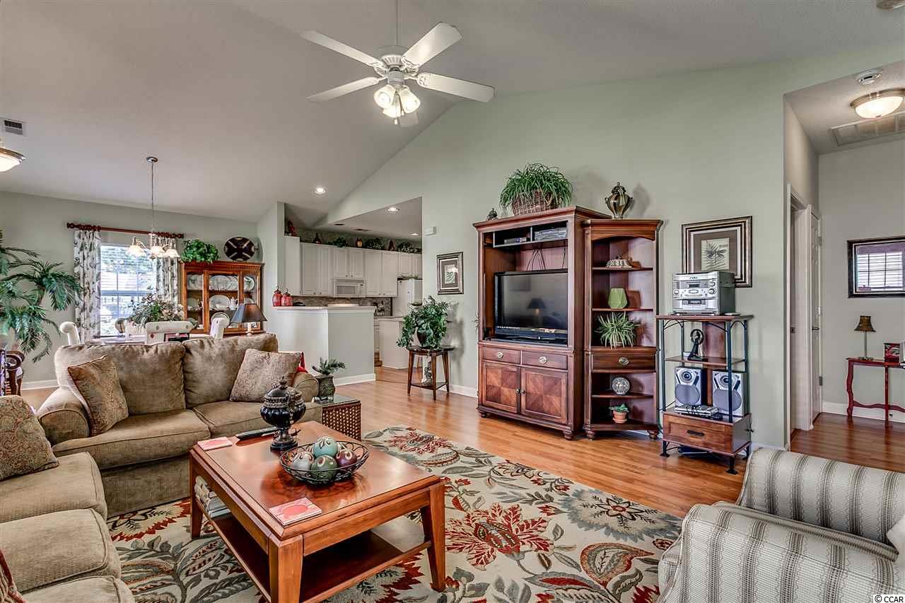 Immaculate 2 bedroom, 2 bath, open floor plan paired ranch located in Deerfield Links which is less than 5 miles to Surfside Beach and walking distance to pool. This unit is located on a premium lot overlooking the lake/pond. Sit in your sunroom, screen porch, or on deck with privacy fence and enjoy the beautiful view of the lake/pond or entertain friends. Also features vaulted/cathedral ceilings in the living room and both bedrooms making the space look and feel much larger. This home boasts many updates: kitchen has wood flooring and beautiful backsplash, and pull out selves. Wood flooring also in family room and laundry room and tile in bathrooms and sunroom. Attic installed with flooring, deck, screened in porch and hurricane shutters installed. A/C replaced in 2016. Very bright large family room and dining area. Master bedroom has oversized walk in closet, garden tub, shower and double bowl vanity. There is a separate laundry/utility room with full size washer/dryer and closet space. HOA fees include water, sewer, pest control, lawn care, trash pickup, cable and internet, community pool, insurance and more. FLOOD INSURANCE NOT REQUIRED! Deerfield is a short drive to Market Common, Murrells Inlet, golf, fishing, restaurants, airport, and medical facilities. Don't let this opportunity slip away. Come see today! Square footage is approximate and not guaranteed. Buyer is responsible for verification.