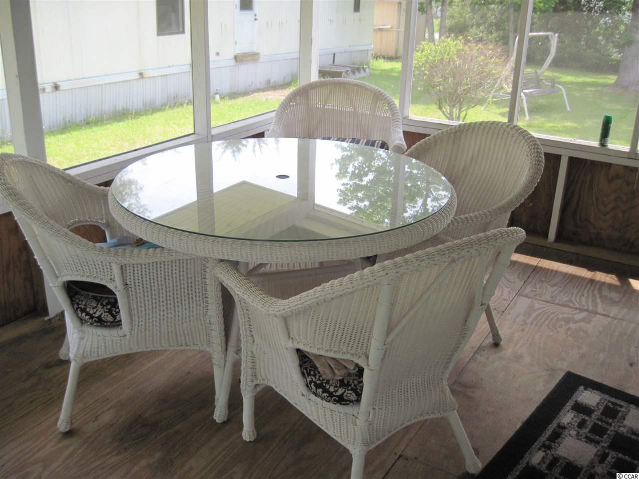3 BR 2 BA manufactured home in Captain's Cove MHP, a quiet community for folks 55 & older, located in Murrells Inlet, SC, approx. 15 miles South of Myrtle Beach, South Carolina. Community has a clubhouse & pool, and lots of activities for residents who wish to participate. Near Murrells Inlet's famous sound front restaurants & close to Huntington Beach (Oceanfront) State Park & beautiful Brookgreen Gardens. Also near lots of golf courses & many other types of entertainment. Only minutes from a modern hospital & doctors' offices. Very attractive home, vinyl siding, roof, heat & a/c, and screen porch all new in past few years. Also installed a large, extra tall storage building w/a metal roof in back of home, plus 2 new decks, one at each back door. Inside of home has a lot of upgrades as well, both baths remolded with newer sinks, newer vanities and a large walk-in shower in master bath, fresh paint thru-out, and a high end ceiling fan in great room. Also has ceiling fans each bed room. Home has a very usable floor plan, living room, sitting room, and dining area are in very open center of home, great for entertaining. Master bed room, and 2 guest bed rooms are at separate ends of home allowing for privacy when you have guests. This is a solid, great looking home inside and out, in a wonderful neighborhood. Call today, it won't last long.