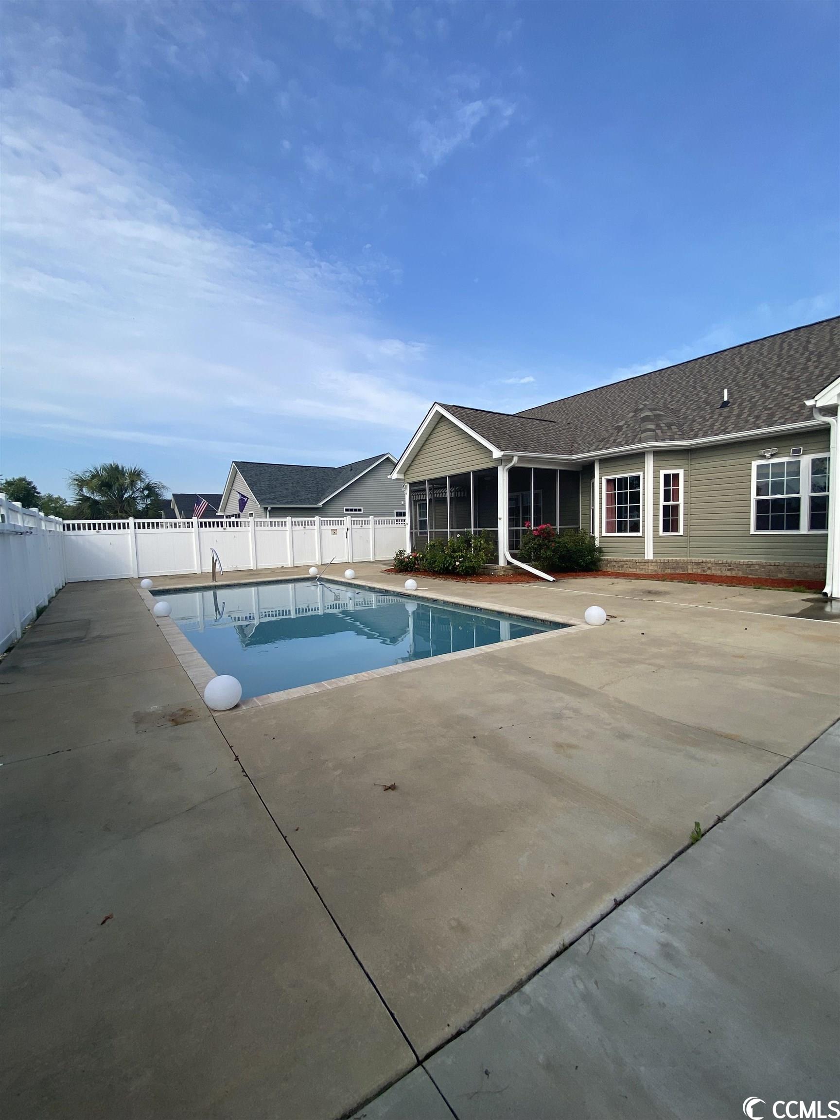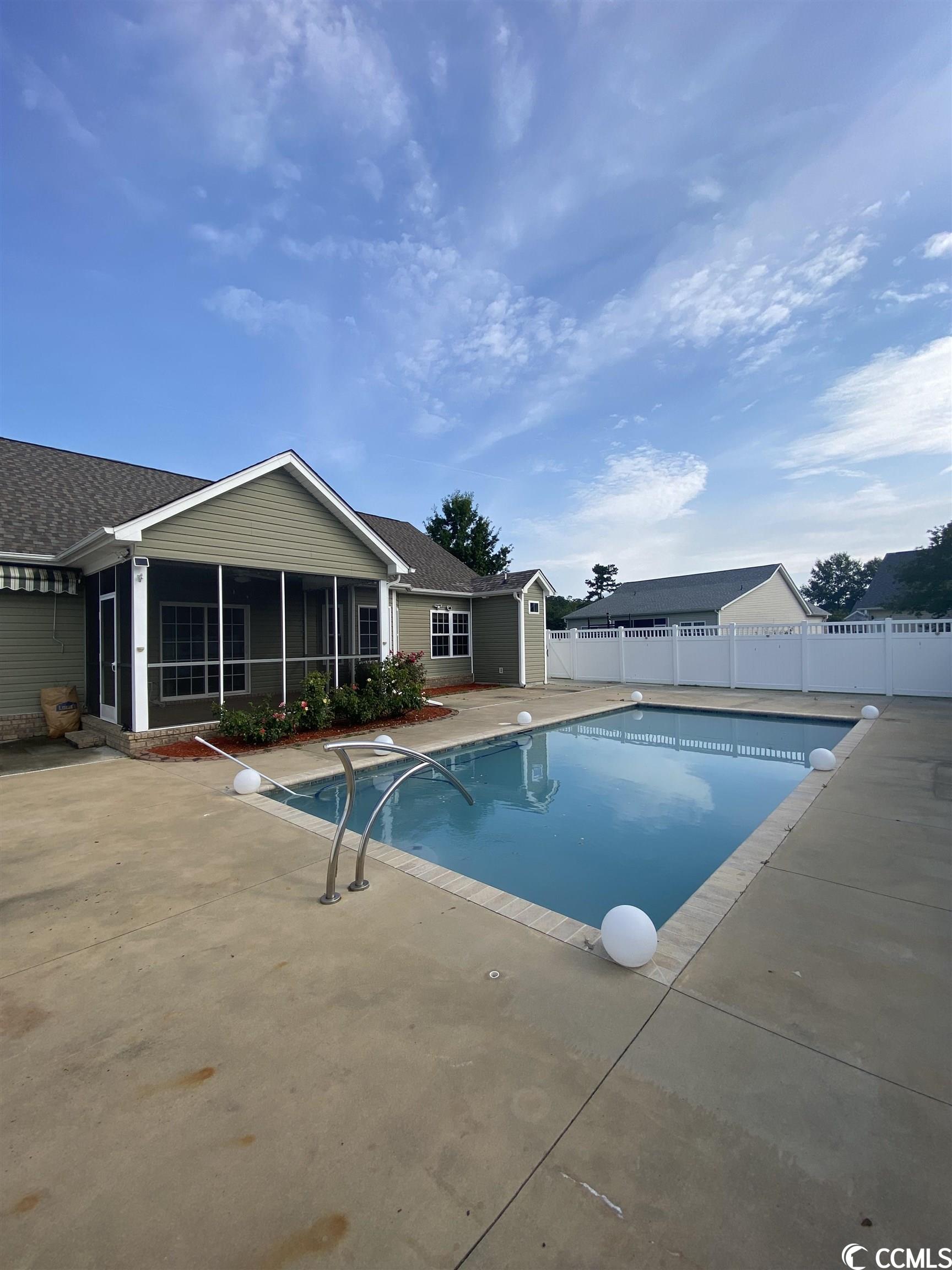 This 3 bedroom 2.5 bath house will have you excited to start your move to beautiful Conway. Upon entering the home, you will be greeted with vaulted ceilings and an open floor plan. The all encompassing space gives a large set up for the living room and dining room, plus easy access to the kitchen. Sit in the Breakfast nook and enjoy the view of the superb heated, salt water, in-ground pool. The split floor plan provides separate bedroom spaces. The primary bedroom is spacious with its walk in closet and en-suite bathroom. You will find double vanities, walk in shower and an extra large linen closet for storage. The additional 2 bedrooms, a bathroom, linen closet and coat closet are just off the entryway. Sliding glass doors will lead you out to the screened in porch where your outdoor oasis awaits! The pool deck is extra large and has an outdoor half bath providing ample opportunity for patio entertainment. There is an awning that allows extra shade to beat the heat when you need it. Jump into your heated in-ground, salt water, pool all Summer long! Additionally you'll appreciate the laundry room, pantry, smooth ceilings, all brick front, privacy fence, pond lot, and curbscaping. The convenient location of this home puts you in quick contact with many shopping conveniences, gas stations, restaurants, and an easy drive to the beloved downtown Conway and Riverfront Park.