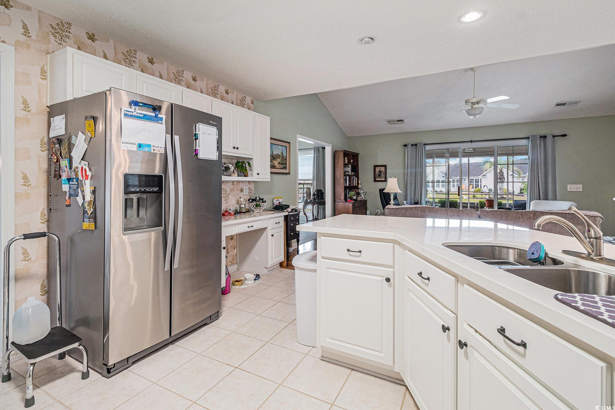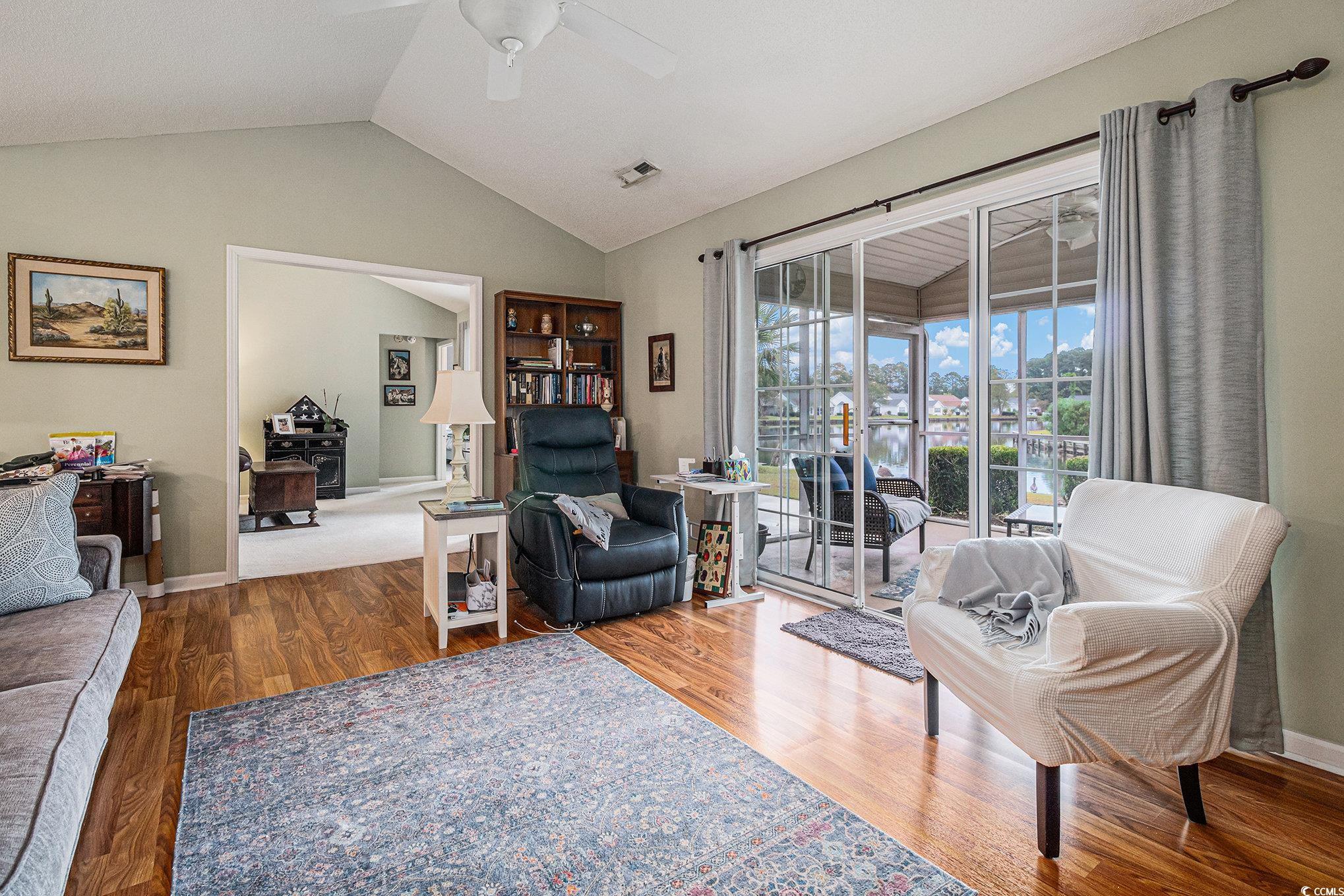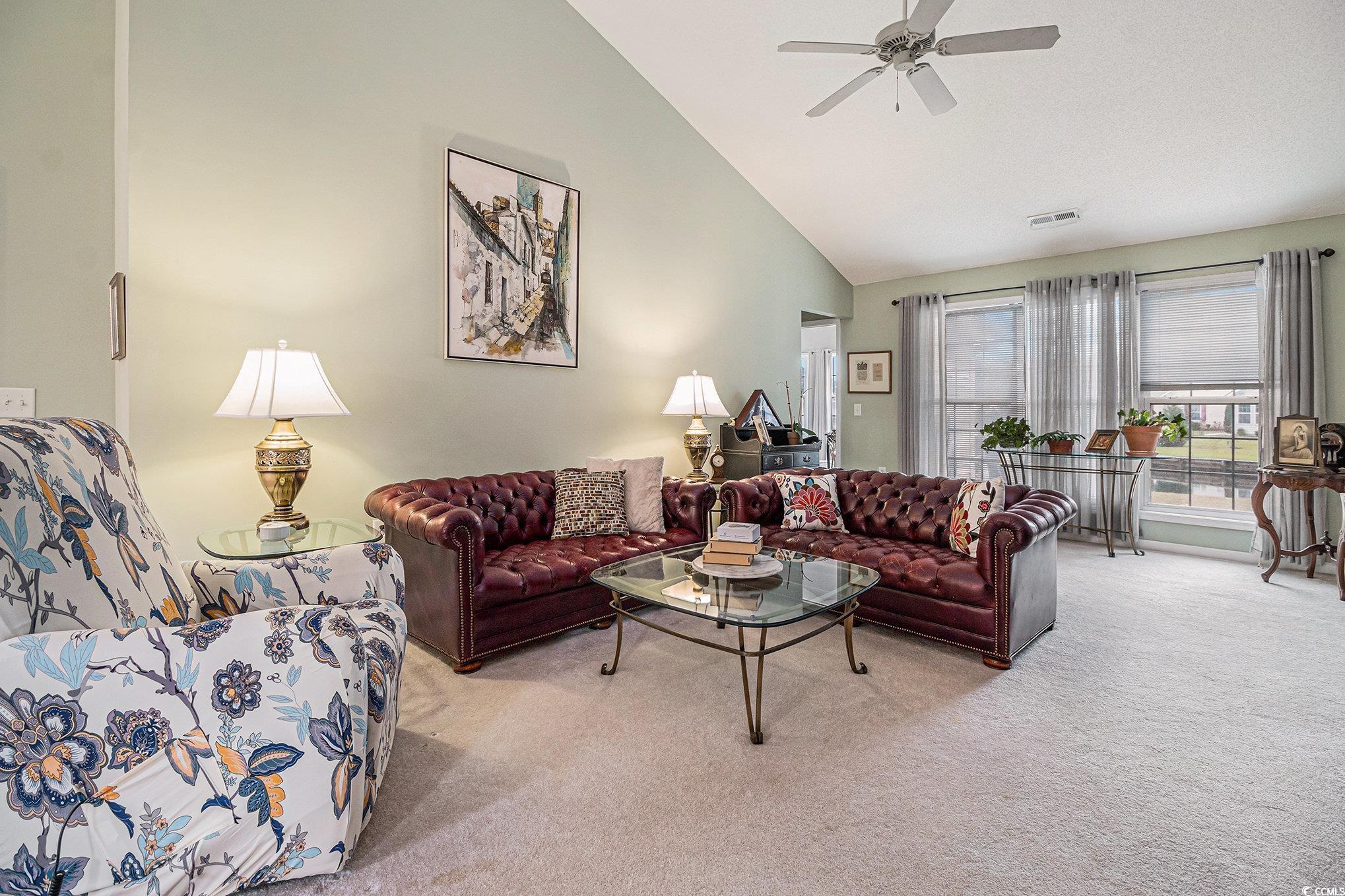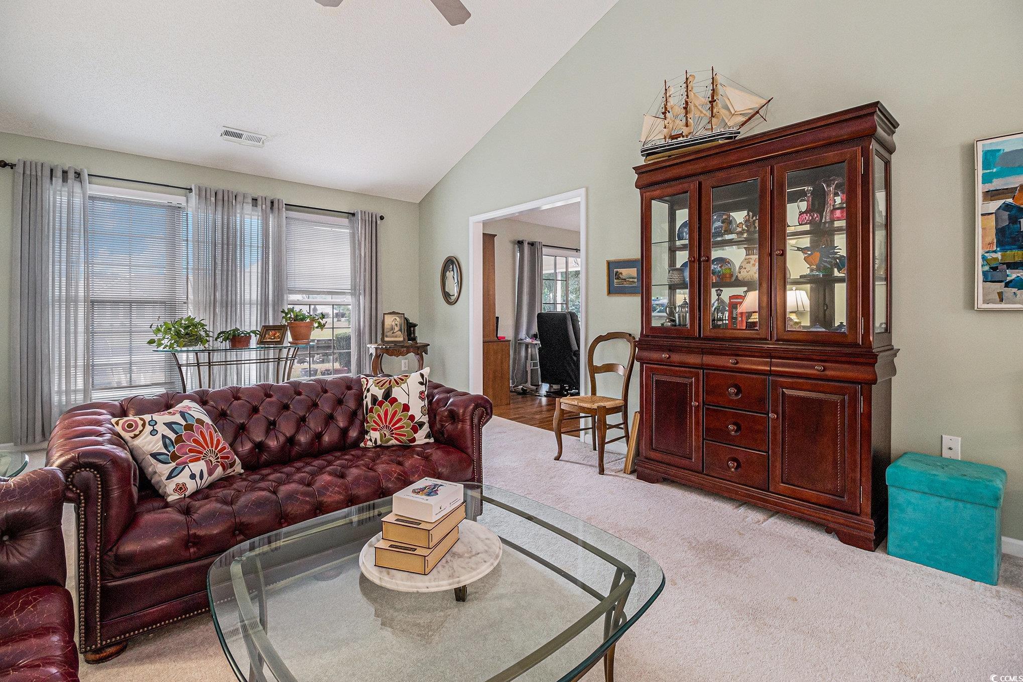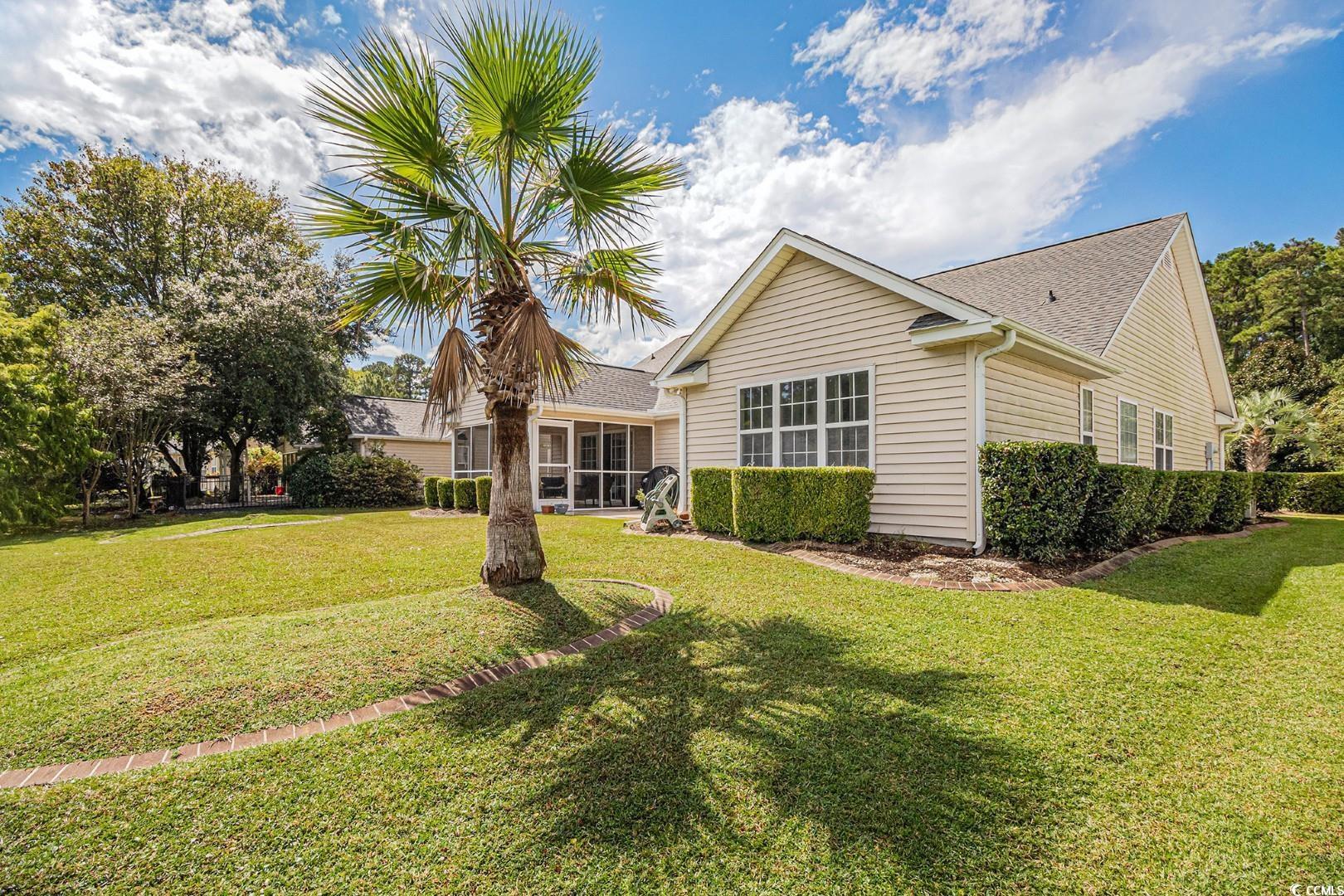 Welcome to this charming home on the pond, offering peaceful views and a beautifully landscaped setting. From the moment you step into the foyer, you'll appreciate the inviting design that combines both comfort and functionality. The home features a formal dining room and a spacious great room with a vaulted ceiling, providing plenty of space for entertaining and everyday living. A separate living room adds versatility, while the breakfast nook is perfect for enjoying casual meals with a view. The updated kitchen is a standout, featuring modern cabinets, stylish countertops, stainless steel appliances, and a tile floor. With both form and function, it's an ideal space for preparing meals and gathering with friends and family. The owner's suite with another vaulted ceiling is designed for relaxation, offering a walk-in shower and a generous walk-in closet. Additional highlights include a screened porch and patio where you can enjoy the outdoors in comfort, as well as a two-car garage for storage and convenience. Perfectly located just minutes from the beach, top-rated schools, the Marsh Walk, entertainment, and more, this home combines a tranquil setting with close proximity to everything you need. Don't miss this opportunity to own a home that truly offers the best of coastal living.