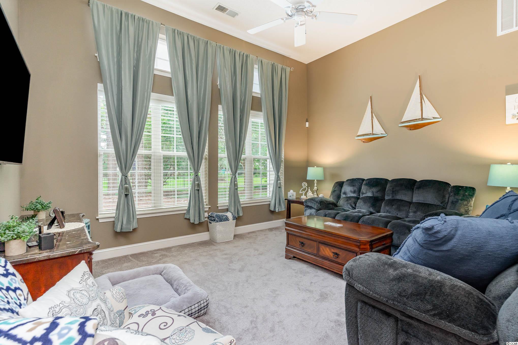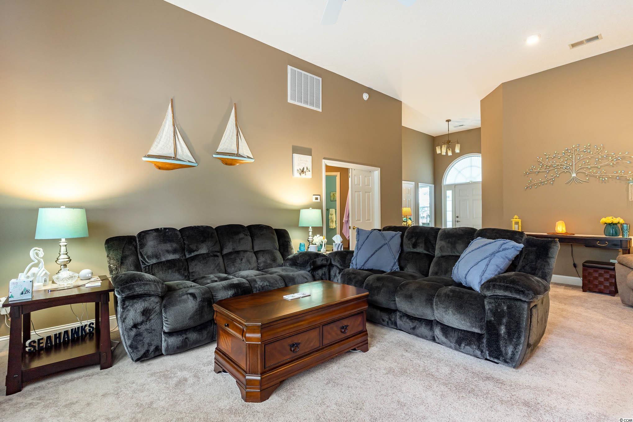 Welcome to your next home in the highly desirable neighborhood of Waterford Plantation in Carolina Forest. This home has been meticulously maintained with numerous upgrades. From the front door you will fall in love with the open concept which boasts vaulted ceilings and a huge living area with plenty of natural lighting. Enjoy the spacious kitchen which is a perfect place to cook and to have family gatherings. So many upgrades including a great backsplash and New GE Slate Kitchen Appliances, New Delta magnetic kitchen faucet, New stainless steel farmhouse sink, Lower kitchen cabinets feature pull out shelving - Under mounted LED lights on upper cabinets. The beautiful master bedroom and bath feature a New rainfall shower head with magnetic handheld sprayer, Custom built shoe shelving in primary closet and Super Slide clothing bars. Also included in upgrades are: New Roof, Solar landscape lighting, gutter gloves and a beautiful crepe myrtle tree in the front yard and New Lifeproof carpeting with a 20 year warranty. This home has also been freshly painted. Andersen Storm Door with built in roll down screen in 2021 . Heat pump serviced for spring in March 2022 and a pre-paid Fall/Winter service will transfer to buyer , Shutters painted - May 2020, Ring Camera with solar charging panel at garage, Solar charged motion light at front door, New Dusk to Dawn carriage lights installed on front of garage - August 2020, Dusk to Dawn flood light installed at back patio - 2020, ADT Security System with color video doorbell (service can be re-activated if buyer wishes to obtain service with ADT) Bi-monthly pest control services by Dodson have been provided since May 2020, home has been professionally cleaned bi-weekly by Merry Maids since May 2020, Wall mounts for large screen TVs can remain upon buyer request Smart Thermostat installed in 2020 - can be controlled through Wi-Fi or by the Sensi App and Alexa, Built in shelving in garage in 2021 Hunter Douglas custom blinds on all windows convey.
