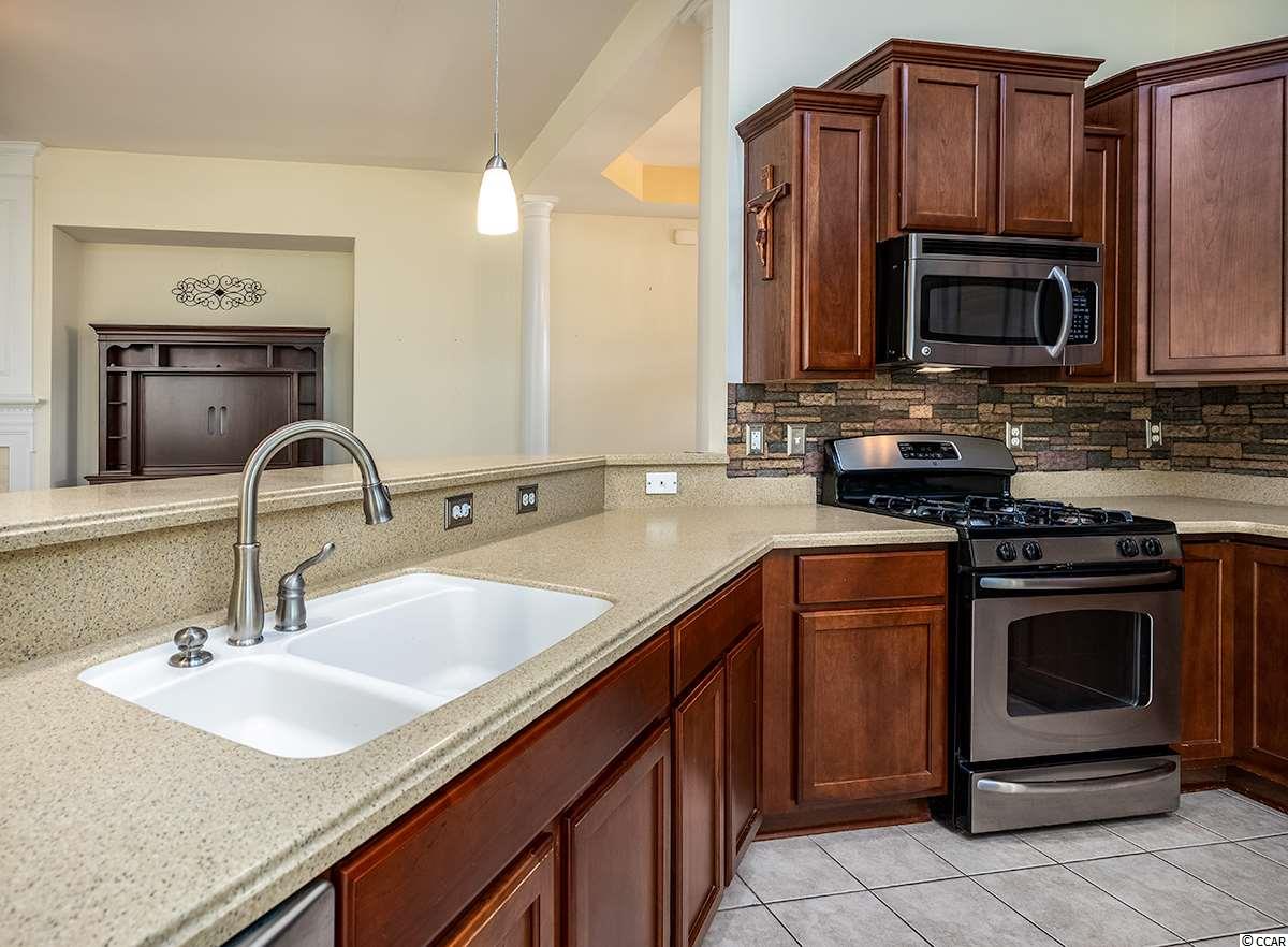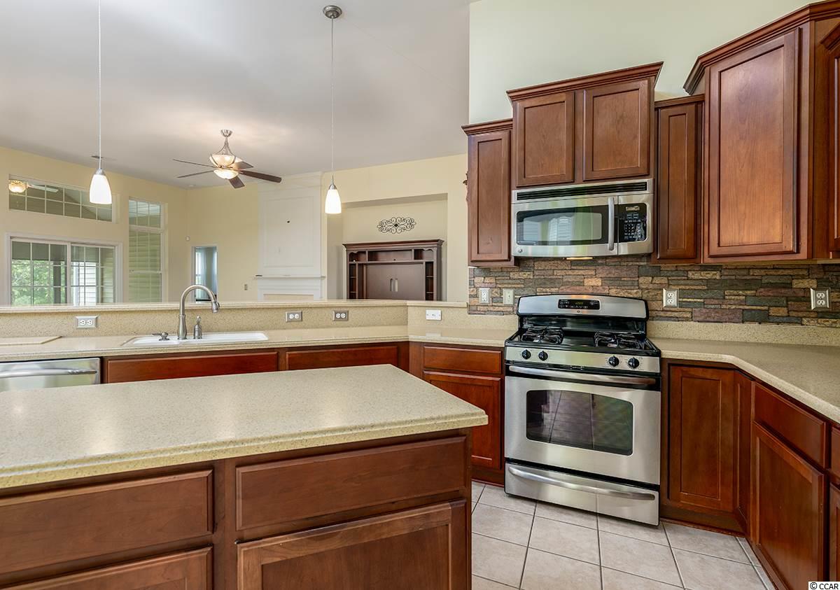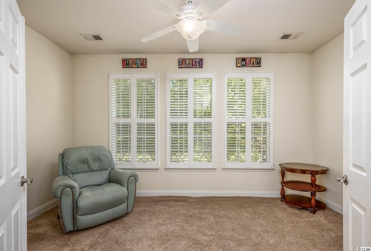 Single story ranch with a spacious back yard in Myrtle Beachs Windsor Plantation, a natural gas, gated community with top-notch amenities just a quick drive to the beach. Tasteful columns and a tiled foyer with powder room, lead you in to an open great room with gas fireplace and French doors taking you out to an all-season Carolina room. The sprawling tiled kitchen features a work island, stainless steel appliances, a pantry, and a bumped out bay windowed breakfast nook. The owners suite is brightly lit with three windows, it comes with a whirlpool tub, walk-in shower, throne room, and two extra-deep vanity sinks with lots of counter space. The fourth bedroom is off of the brightly lit dining room, and is used as an office; it does not have a closet. This home is equipped with a spacious 2-car garage, laundry room with sink, cabinets and window; and a decent-size back yard that adjoins a natural buffer for privacy. Windsor Plantation is just a quick drive to Myrtle Beach State Park, the airport, and Market Common district. The community features a security gate, pool, library, fitness room, and large gathering area with lots of seating.