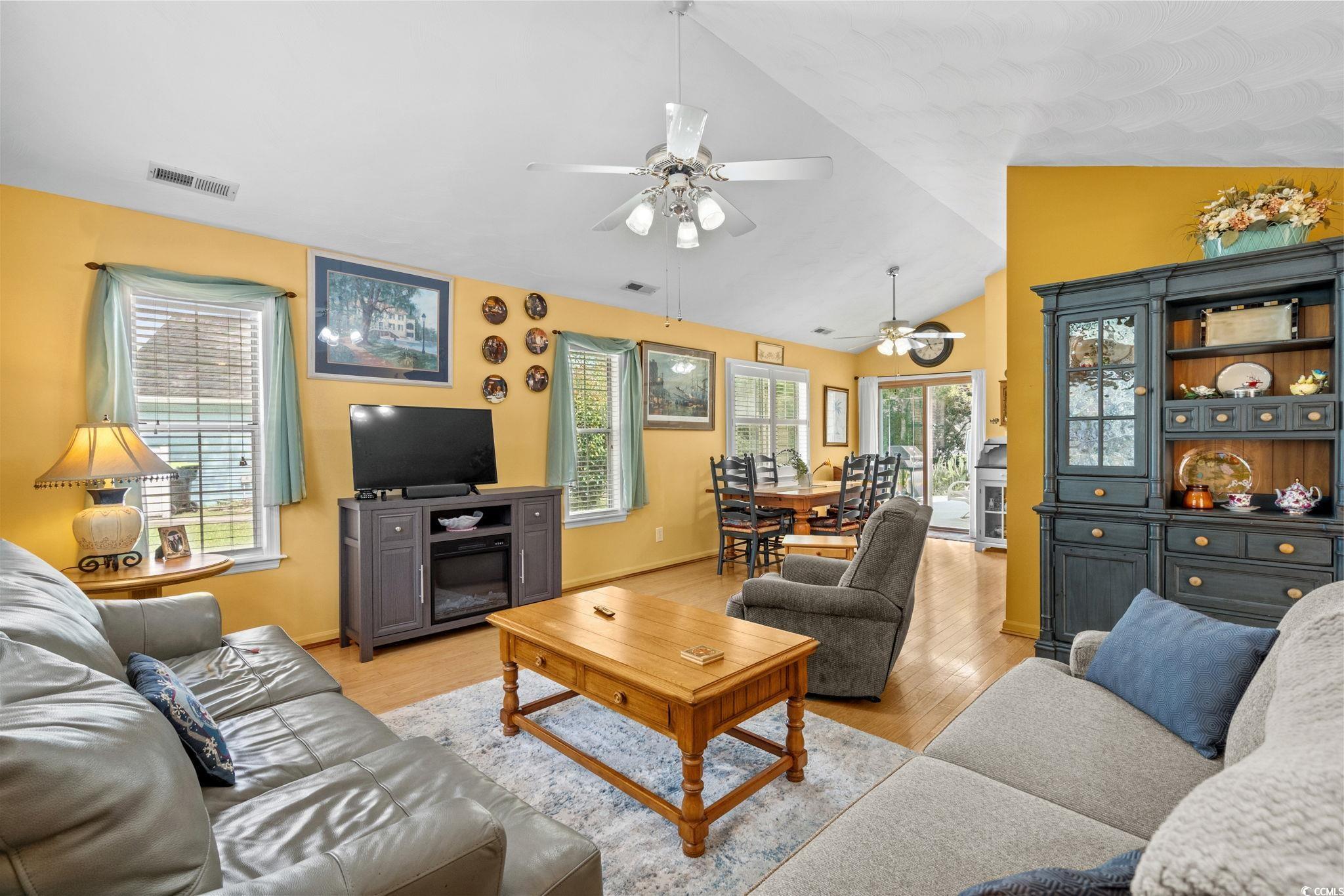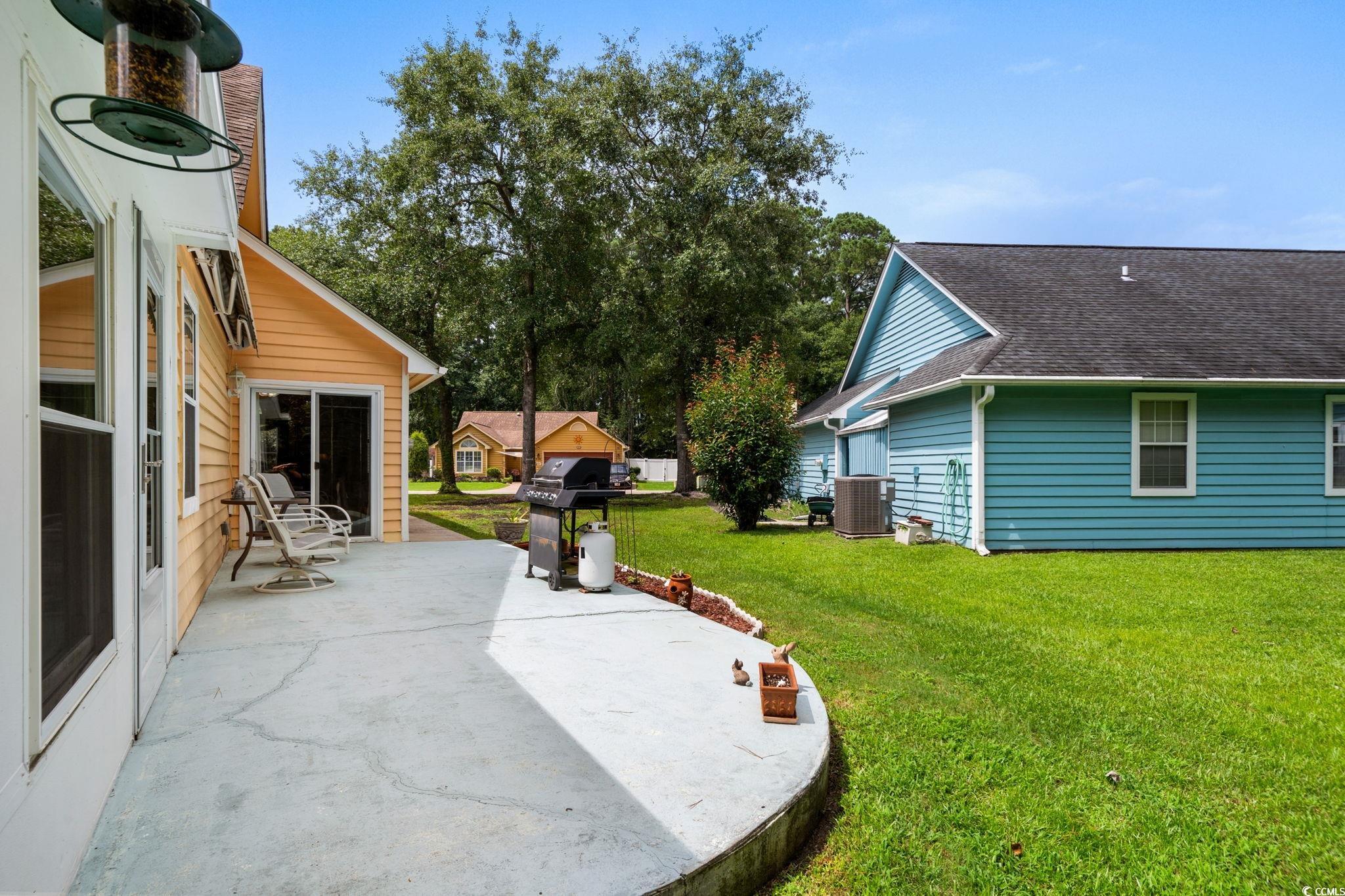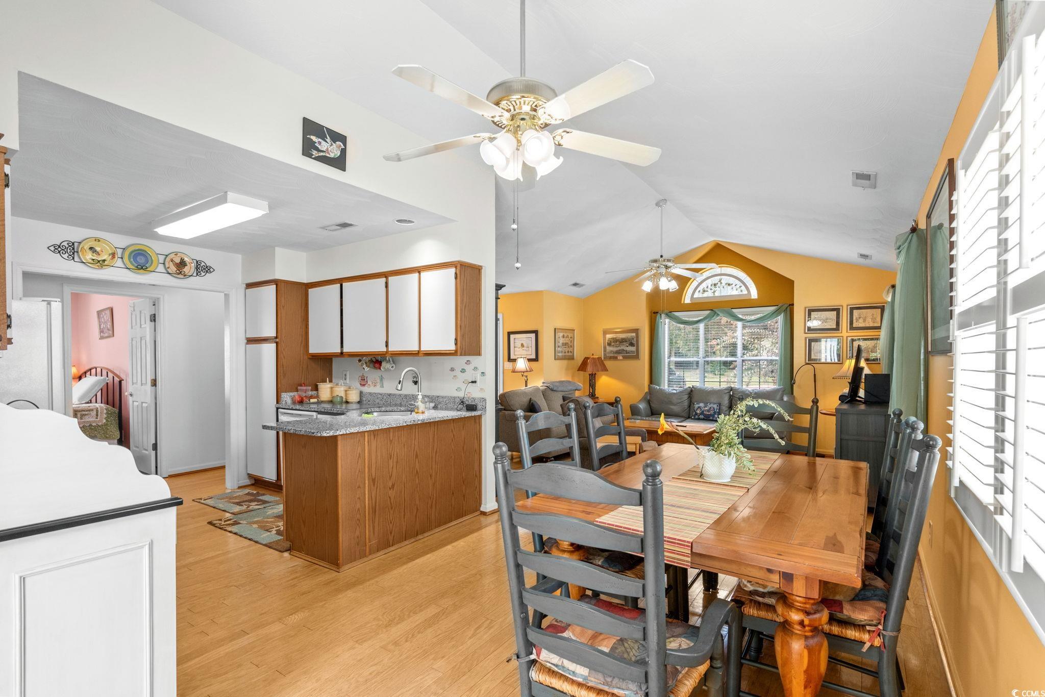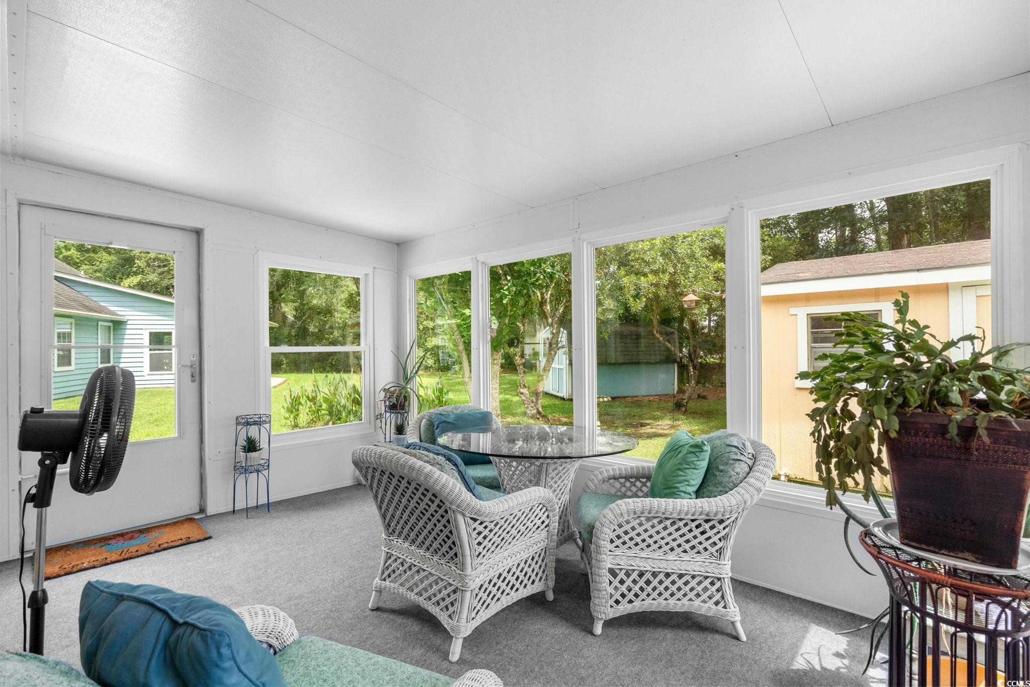 Charming coastal cottage in The Preserve, Little River! This cheerful 3BR/2BA home has a versatile third room thats perfect as a guest bedroom, home office, or den. A wide driveway and single-car garage welcome you home, while mature trees and a large, green yard create a peaceful setting. Inside, vaulted ceilings and an arched picture window flood the living area with natural light. Easy-care wood flooring carries through the open living/dining space to an efficient kitchen with granite counters, breakfast bar seating, and crisp white appliances. The primary suite features a roomy walk-in closet; a second bedroom and full bath are nearby, plus the flexible third room for whatever you need. Enjoy year-round living in the bright Carolina room overlooking the backyard, then step out to the extended patiocomplete with retractable awningfor effortless outdoor dining and grilling. A generous storage shed keeps tools, beach gear, or hobbies neatly tucked away, and the indoor laundry area offers extra shelving and cabinet space. The home also comes with the added bonus that is includes a whole home propane generator! Never worry about having the rigght power to keep things up and running! Tucked on a large lot in an established, tree-lined neighborhood, this home puts you minutes from marinas, golf, waterfront dining, and the beaches of the Grand Strand. Low-maintenance exterior, comfortable layout, and terrific outdoor spaceseverything you want for relaxed coastal living in Little River.